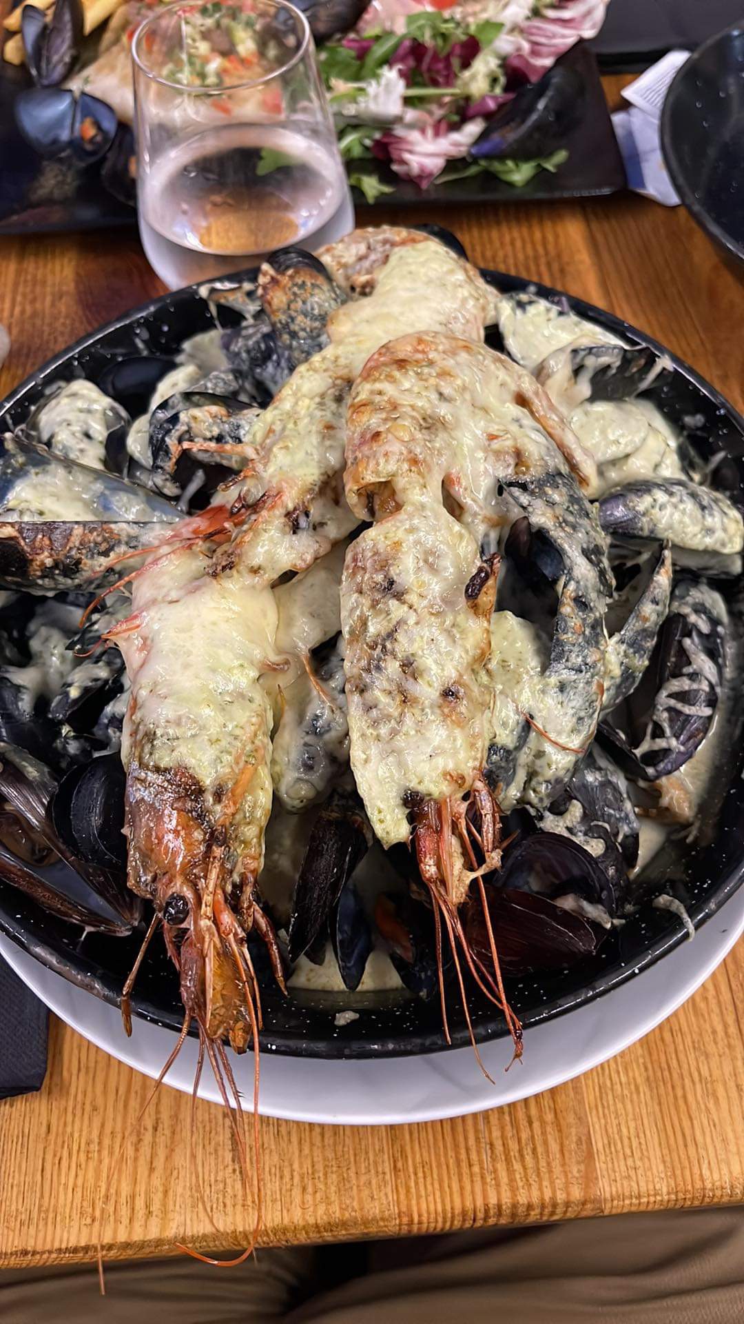 Moules à la crème bonne mais il manqué un peu de sel. Ensuite le service vraiment pas bon du tout on a commencer l'apéro et on a eu le repas chaud. On a tout renvoyé en cuisine. On a pas le temps de boire qu'on a déjà le plat. Ensuite pas assez de place manger des moules sur une table ronde c'est bof.