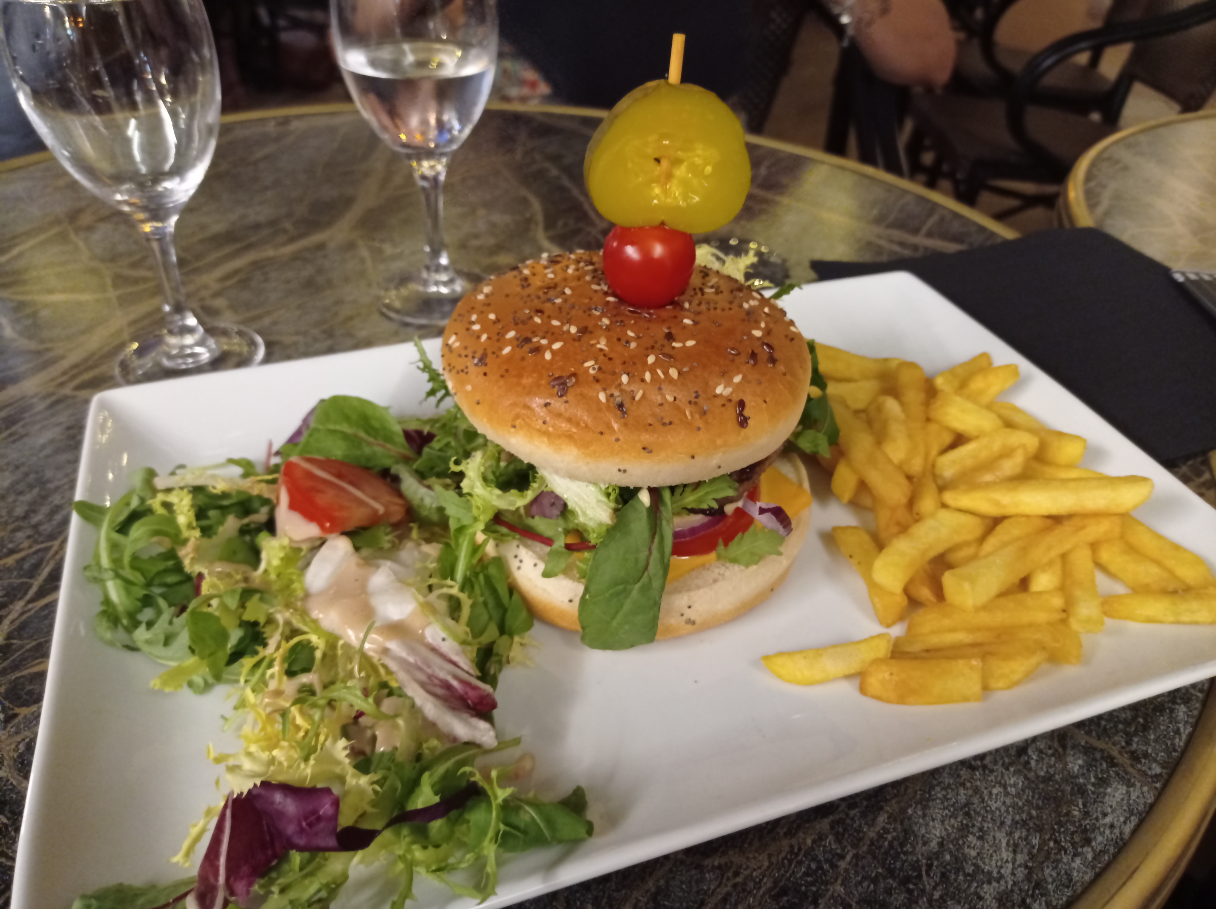 Sans plus, service un peu bancal (serveuse qui oubli tout ce qu'on lui demande, qui explique mal les formules) et très lent (plus de 20 minutes entre le moment où on a eu l'addition et le moment où nous vons pu payer). Personnellement j'ai pris une salade chèvre chaud, c'était plutôt bon mais pas très copieux avec peu d'ingrédients. La vue de la terrasse est très sympa. La distanciation entre les tables n'est pas respecté.