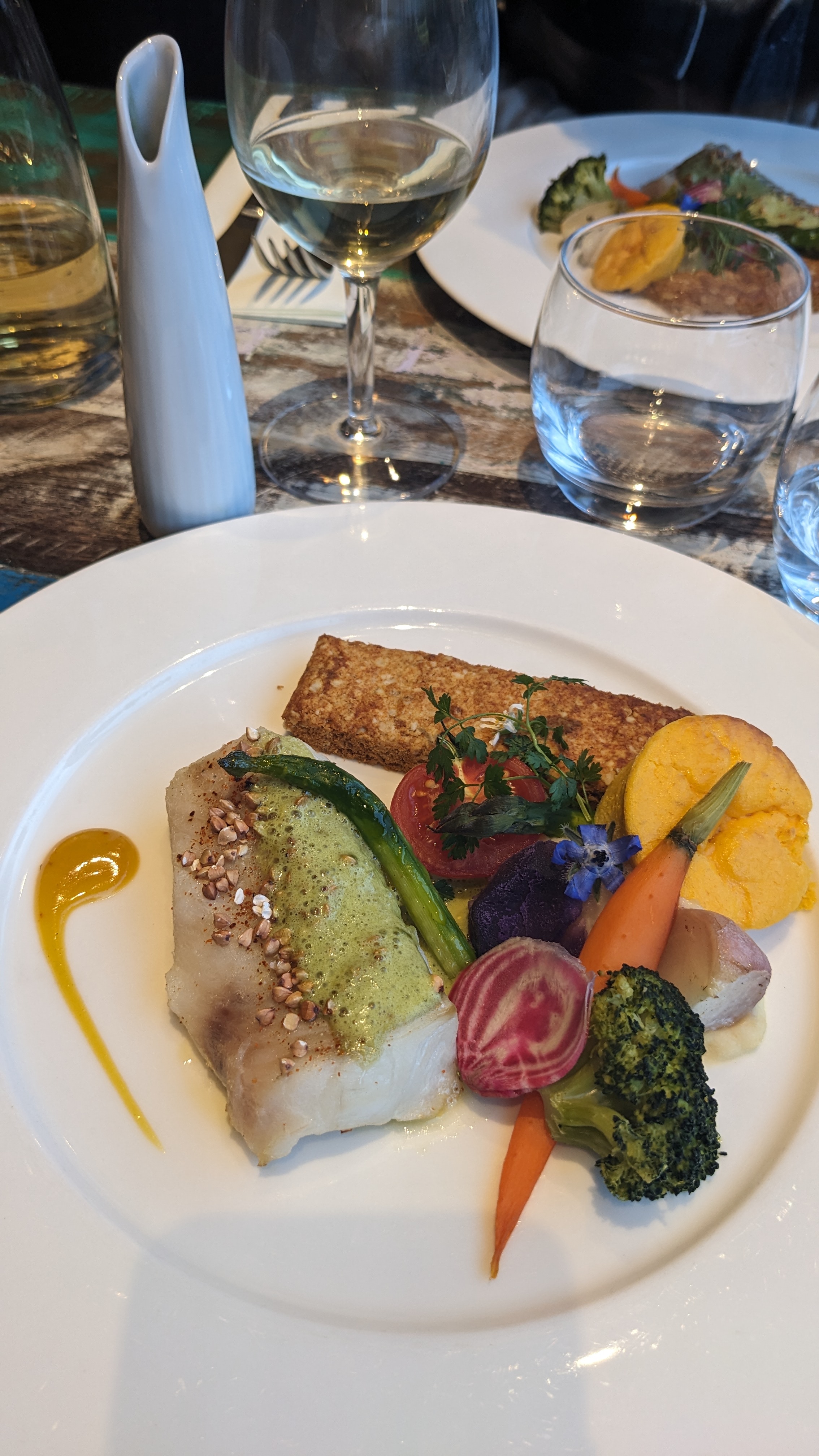 Nous avons choisi ce restaurant pour son menu pouvant convenir aussi bien au carnivores et aux végétariens. Très belles présentations, très beaux mariages entres poisson, légumes cuits, crudités ; bon équilibre des saveurs. Enfin un restaurant qui fait autant la part belle au végétal et au marin. Je recommande, c’est délicieux, de la vrai cuisine. Bravo