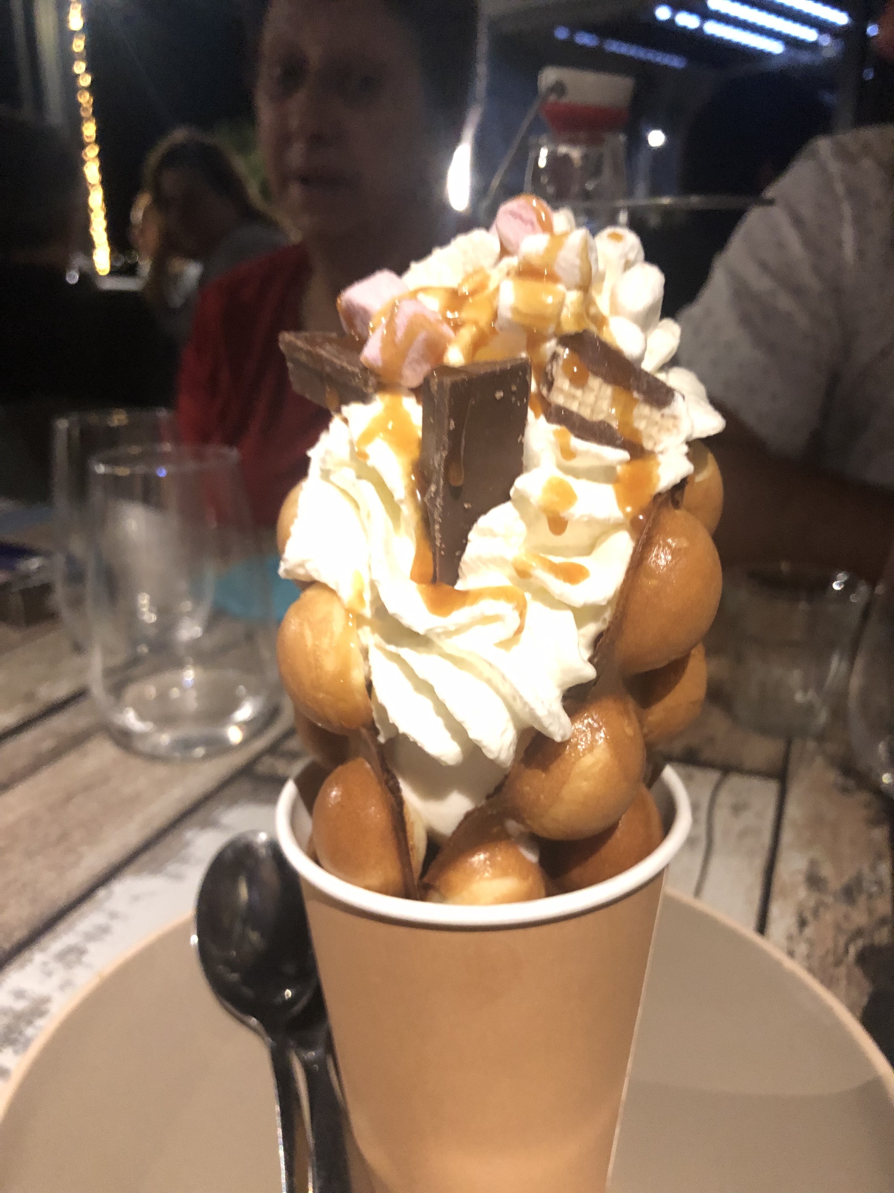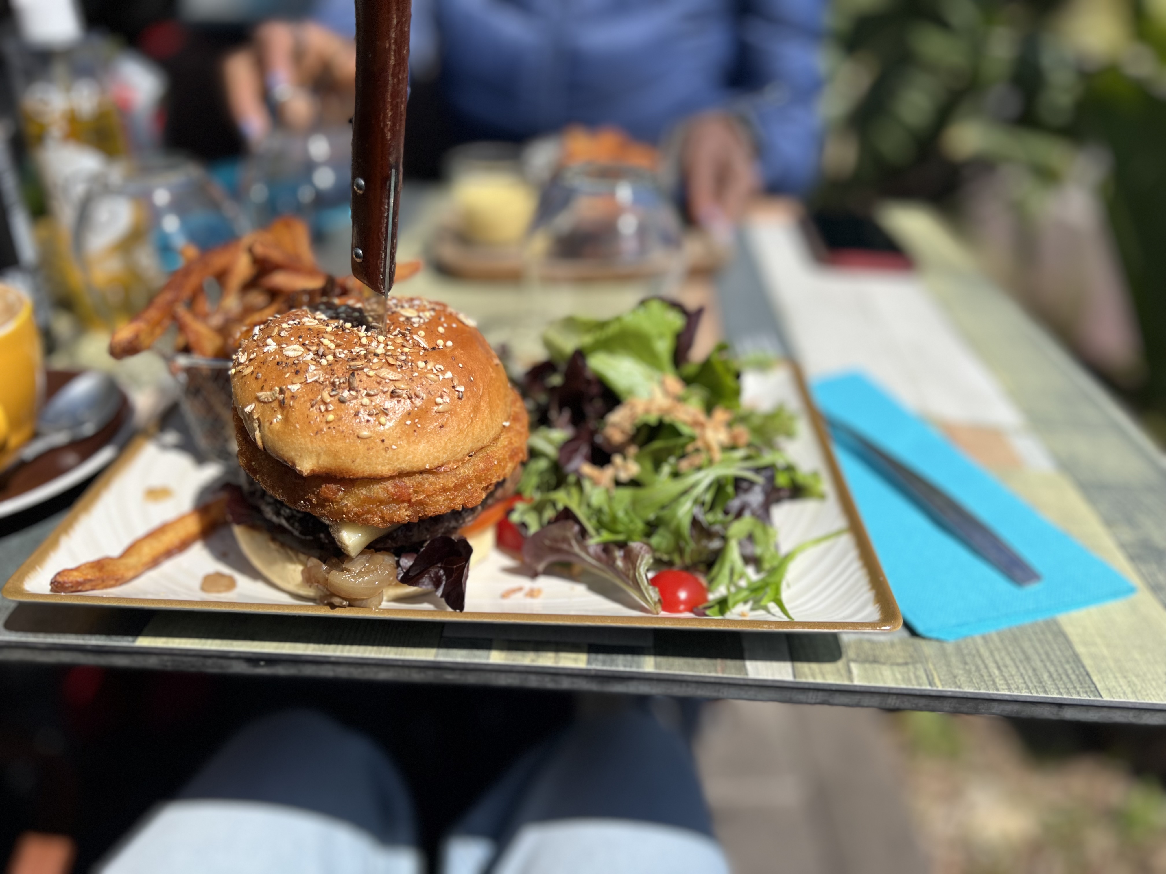 Superbe endroit une vue mer extraordinaire, un accueil parfait. Le burger top, la viande excellente. Découverte du bubble waffle, je kiffe. Très bon emplacement