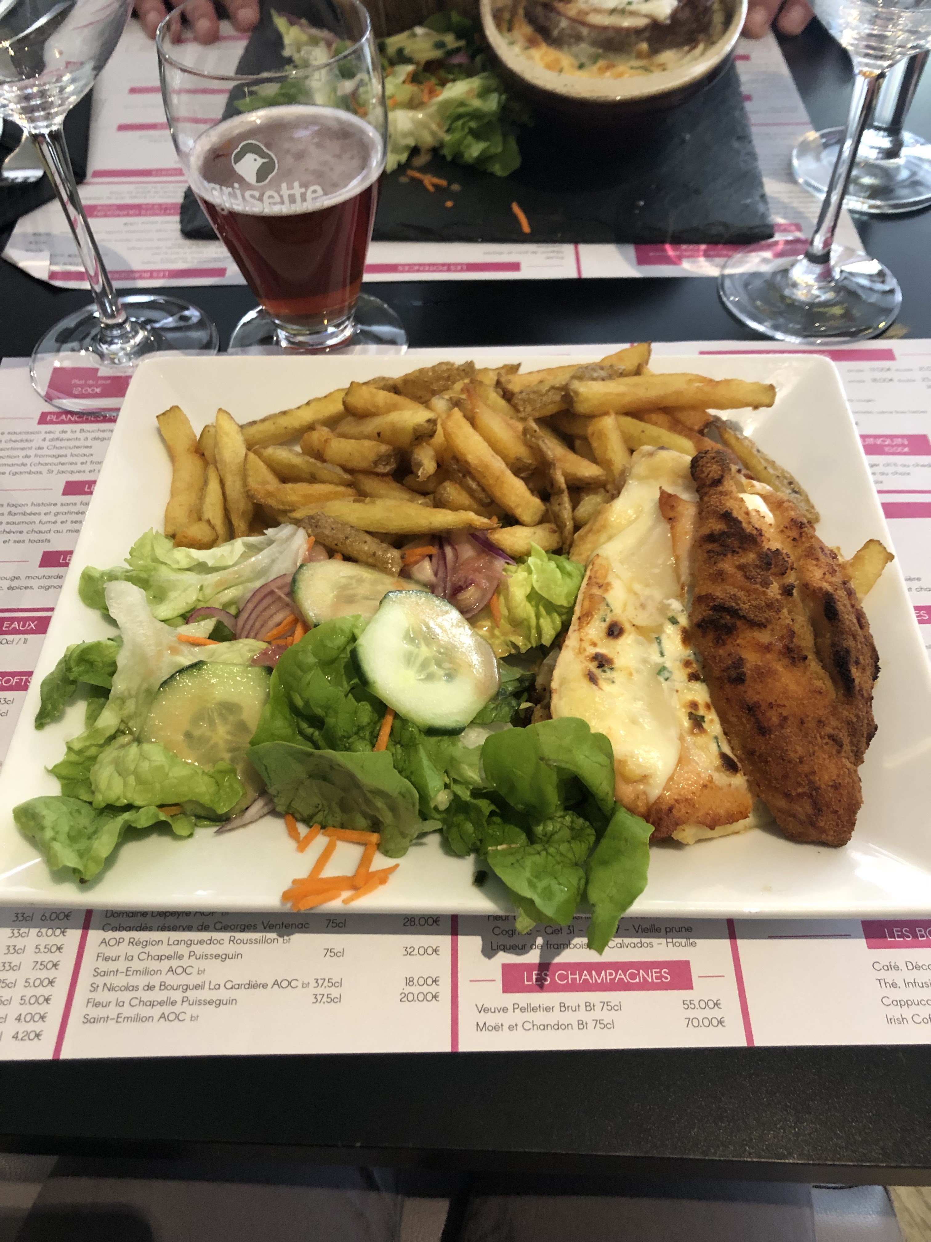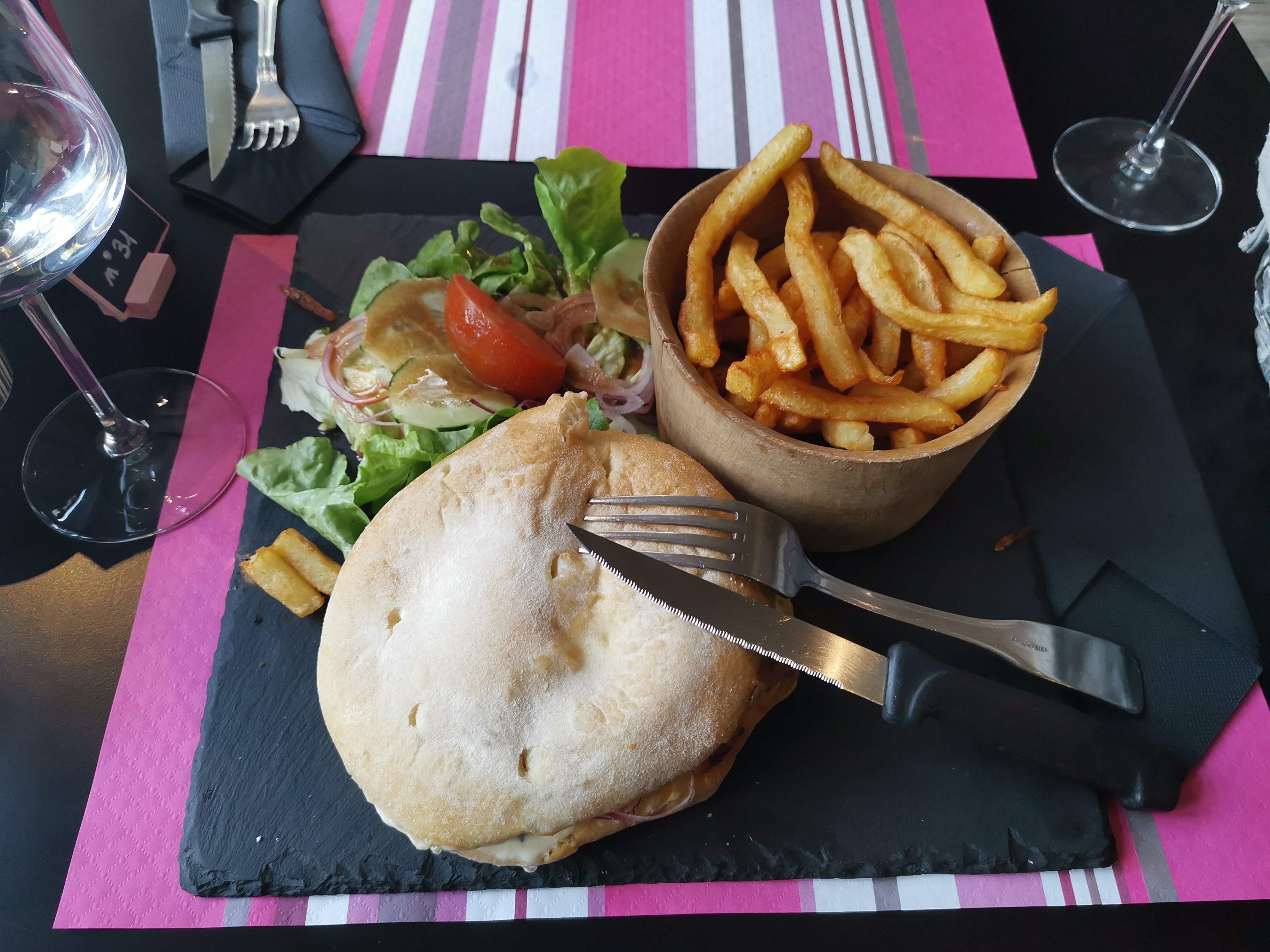 Une pépite je ne m'en lasse pas. Frites maison, mayo maison, bref un régal du début à la fin... l'escalope de saumon au maroille, les potences, la sauce chorizo mama mia...