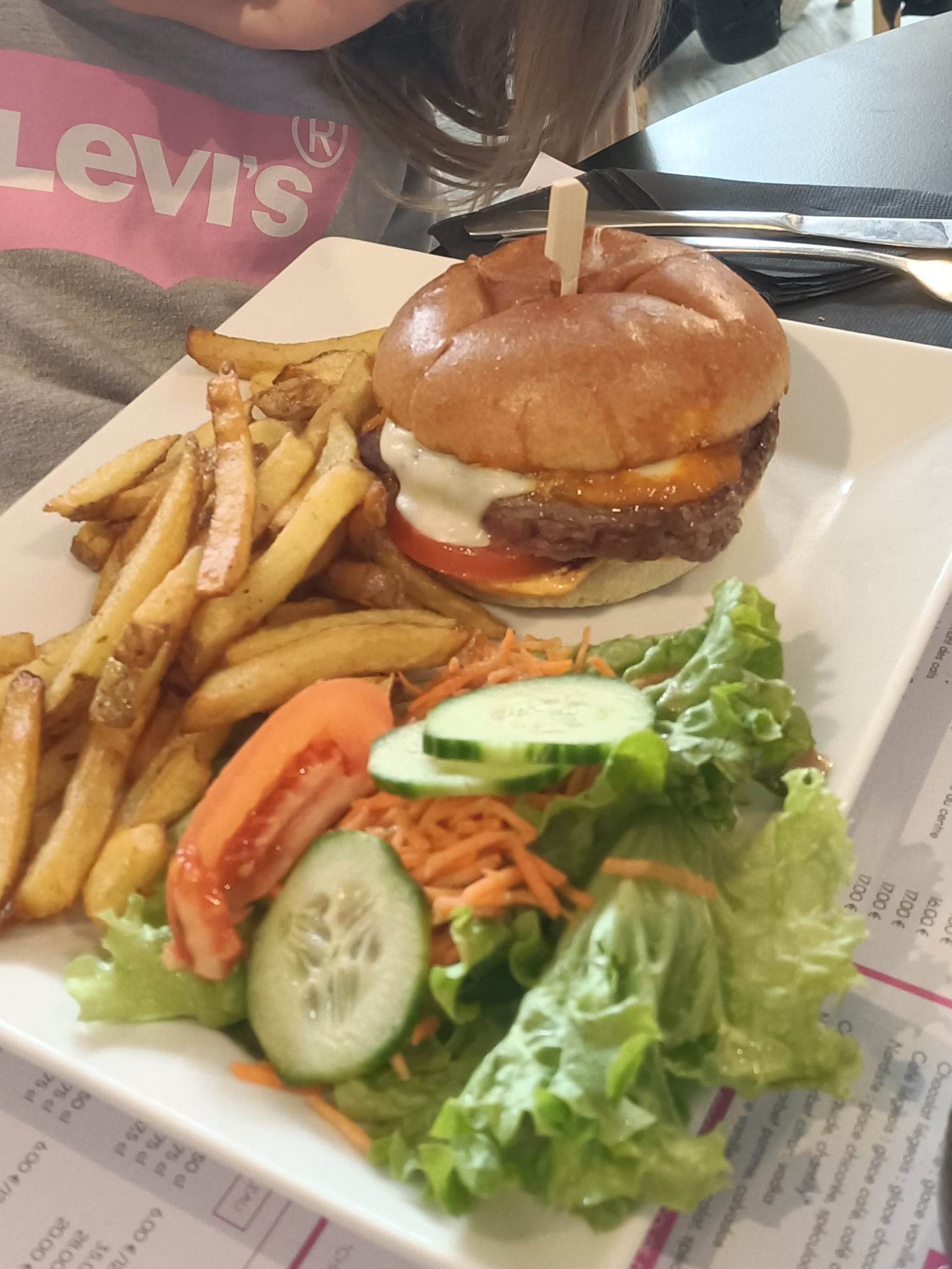 Je suis satisfait du repas. J'ai pris le burger fermier ( il me semble ), il etait très bon, le pain était doux, moelleux et sablé, similaire au pain du bacon et eggs de mcdonalds, la quantité de poulet est suffisant et les légumes ( onion, cocombre, tomates etc..) sont frais en bouche. Le seul reproche que j'ai pu faire a ce burger c'est le fait qu'il était très voir trop crémeux, en soi ce n'est pas mauvais, mais cela rend difficile la prise en main et tâche beaucoup avec les couverts. Selon la serveuse qui nous a pris en charge, cela avais pour but d'accentuer le gout et de rendre encore plus doux le pain. Pour la brochette, je ne l'ai pas goutté, cependant, elle est constitué de trois viande, accompagné d'une sauce au choix, d'un petite salade vinaigrette et de frites. Je finis de manger, me lève, paye mon repas et pars en me disant :j'ai bien mangé