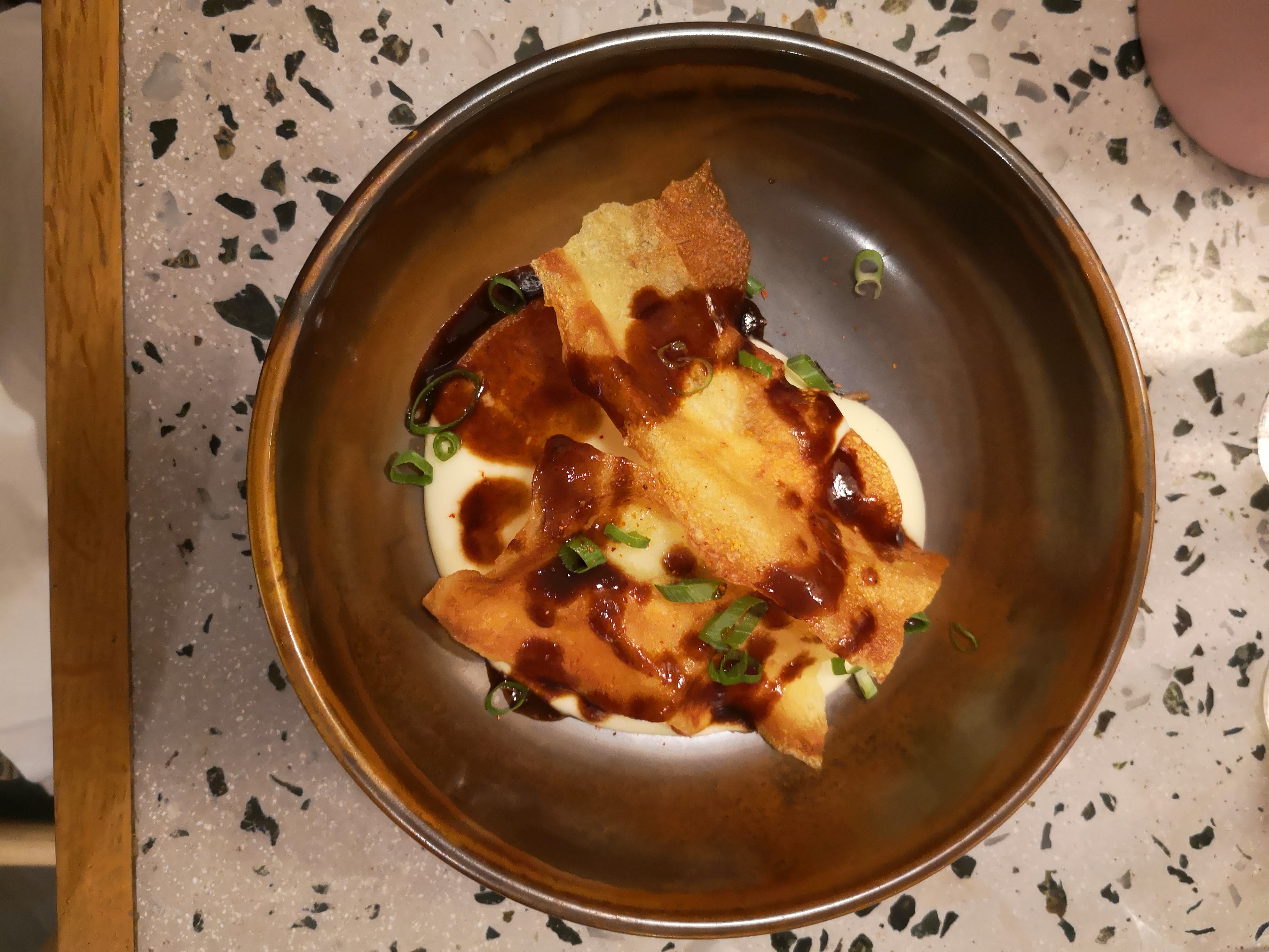 Agréable découverte Cuisine gastronomique et créative, avec des associations étonnantes. La salle est est joliement décorée et plutôt épurée. Le menu dégustation à 57€ en 6 services. Bon rapport qualité/prix. Le chef adapte son menu en fonction de vos goûts et restrictions alimentaires. Le service est soigné, rapide et toujours avec un grand sourire. Tout était bon mais je trouve que certains plats (le Dahl/oeuf parfait et le tourteau/ guacamole) manquaient d'un petit quelque chose qui les rehausse, un petit peps de plus. Le dessert glace sésame noir/ insert citron/ mousse citronnelle était excellent. Avec sa cuisine créative, un peu fusion, le restaurant sort du lot, à côté des restaurants asiatiques du quartier. Félicitations au chef et à sa brigade. Continuez dans cette voie. 👍