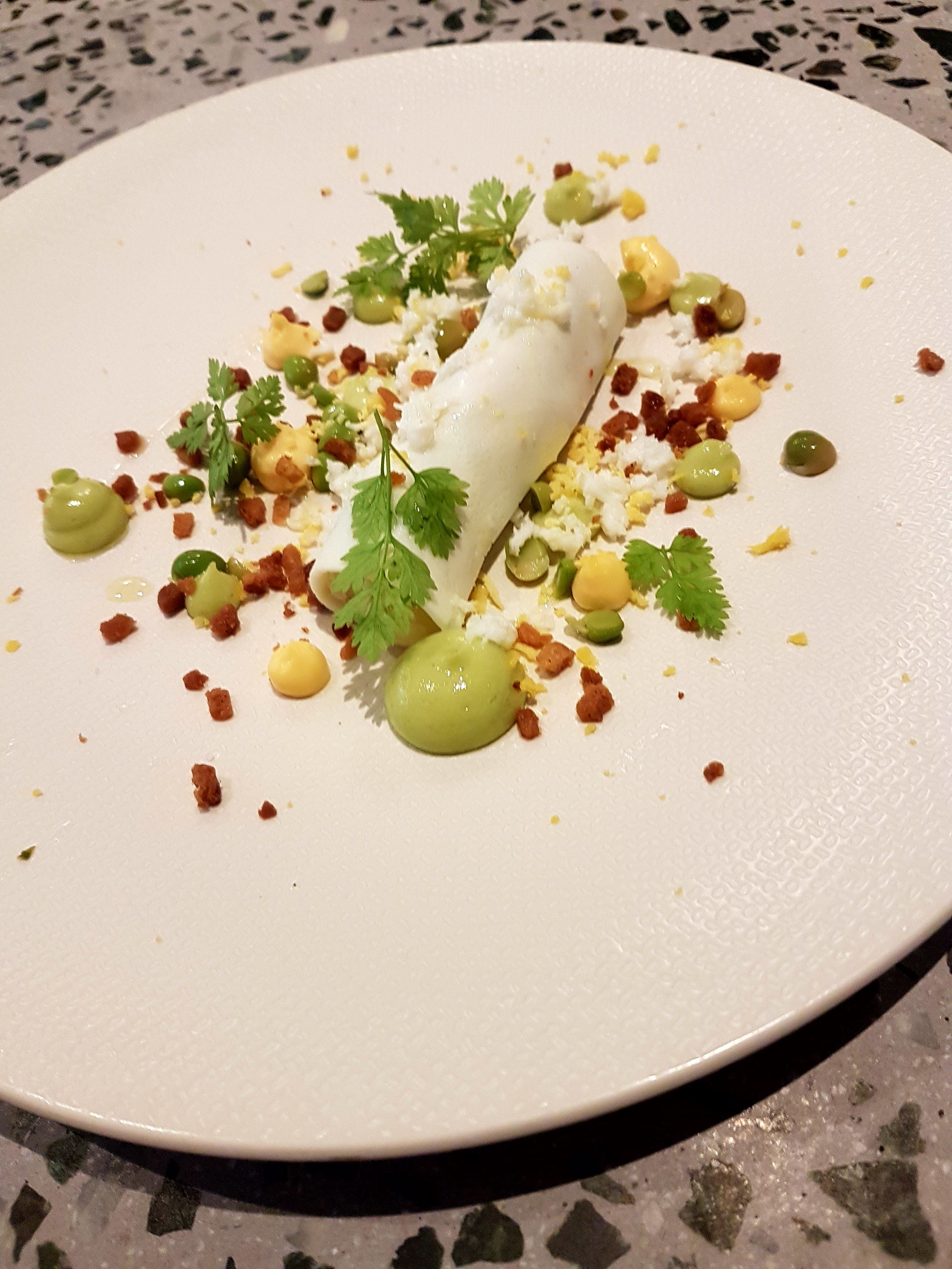 Plats bien présentés mais très décevants en termes de goût après avoir eu de bons retours sur le restaurant. Pomme de terre: belle entrée en matière, avec une association entre champignons et pomme de terre. Cabillaud: extrêmement salé. Volaille: belle pièce de volaille mais cette fois-ci sans goût. Sauce curry et lait de coco médiocre. L’accompagnement aubergine, maïs, céleri, haricots verts donnait un air bâclé au plat, sans conviction. Dessert chocolat coco noisette: seul point positif du repas avec une belle assiette associant de bons goûts sucrés complémentaires. Service impeccable et cadre plaisant mais nous ne reviendrons malheureusement pas vu les prix pratiqués pour la qualité des plats. Peut-être n’avons nous eu pas de chance avec le menu?