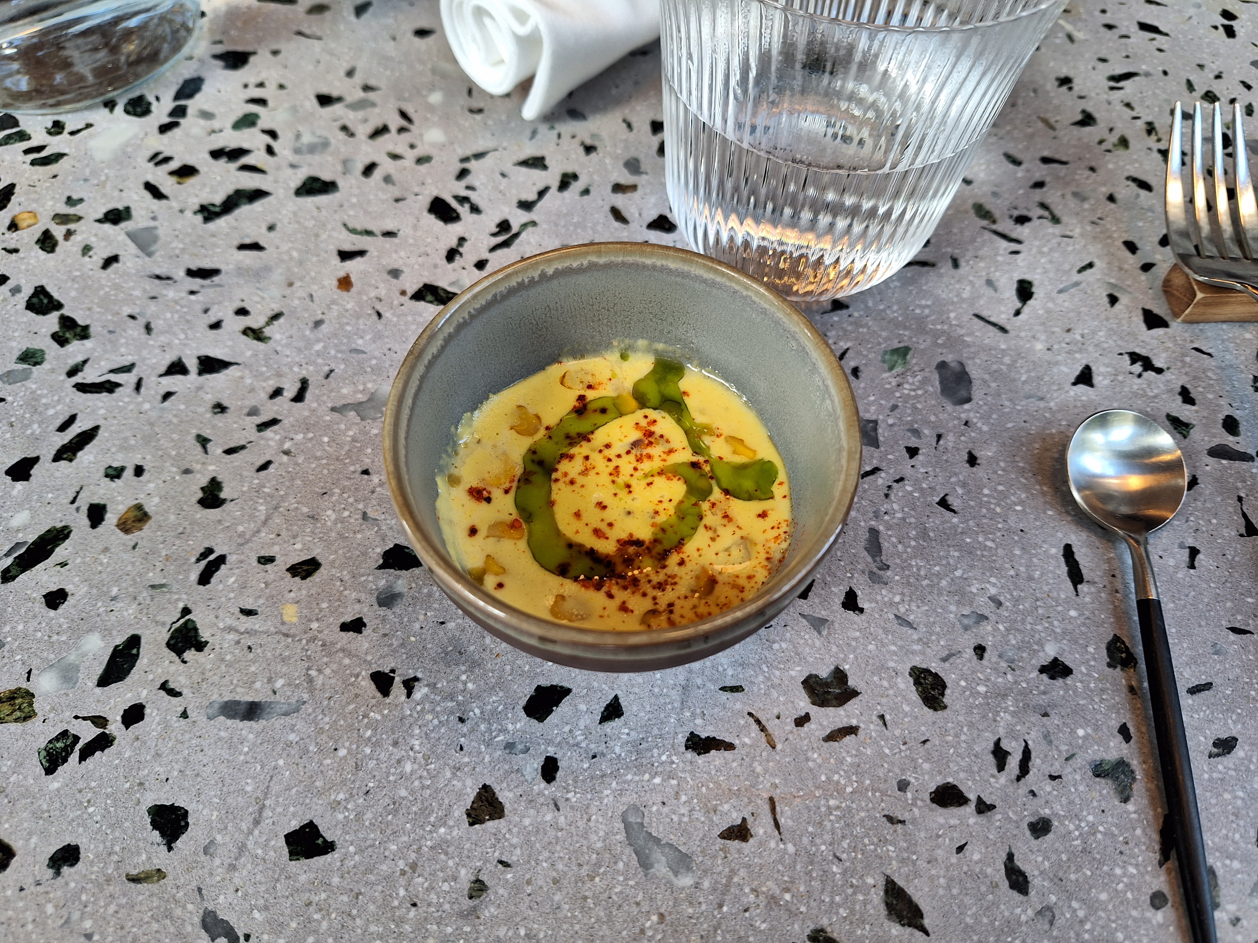 Nous avons passé un excellent moment durant notre repas. Dégustation en 6 temps pour un prix très raisonnable. Pas une fausse note, chaque plat était délicieux et réconfortant. Les tables de 2 sont assez éloignées les unes des autres donc on se sent à l’aise. Les serveurs et serveuses étaient tous très souriants et agréables. Franchement 10/10, une adresse que je recommande vivement et où je retournerai !