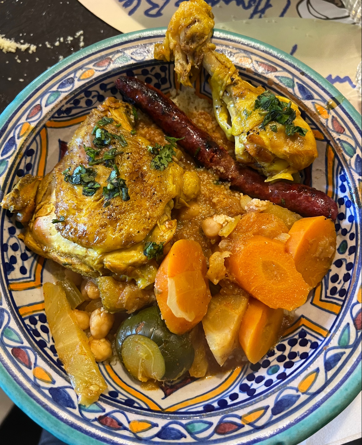 Première fois que je mangeais un tagine et c’était délicieux. Le couscous pareil :)