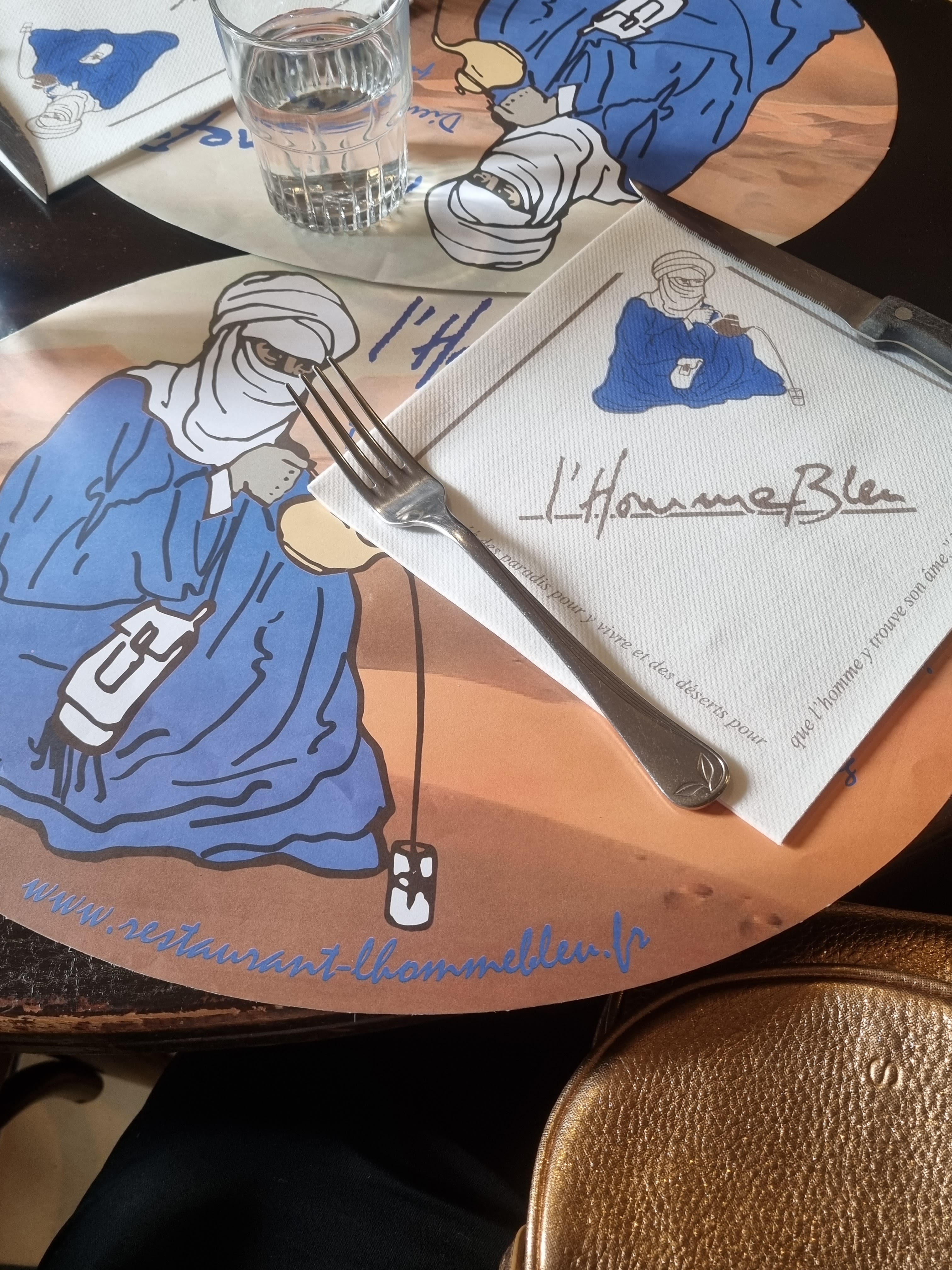 L'occasion d'un diner thématique nous a amenés dans ce restaurant. Un accueil sobre et attentionné, beaucoup de gentillesse et d'attention. Une cuisine simple et très goûtue. Une semoule d'une légèreté rare., pas de ventre lourd en fin de repas... Rapidité de service et attentions malgré notre grand groupe (14). Le thé à la menthe gourmand qui clôture un diner parfait. Ravie de cette découverte, j'y retournerai avec plaisir pour un bon diner, un bon dépaysement et pour profiter de l'accueil chaleureux de toute l'équipe. Merci à l'équipe de l'homme bleu. (Ps pour le monsieur du restaurant : j'ai tenue parole, j'ai partagé mon avis ;) )