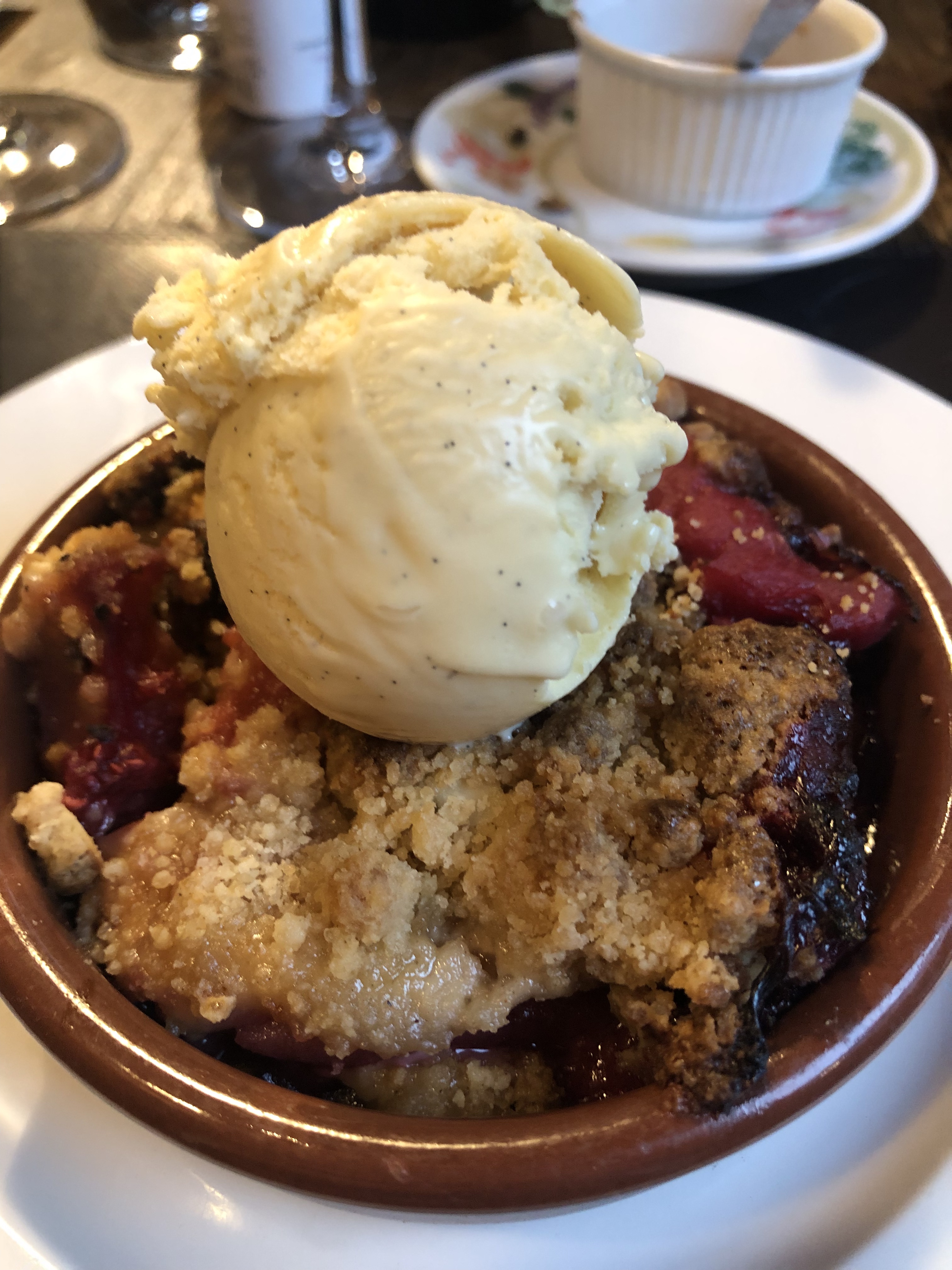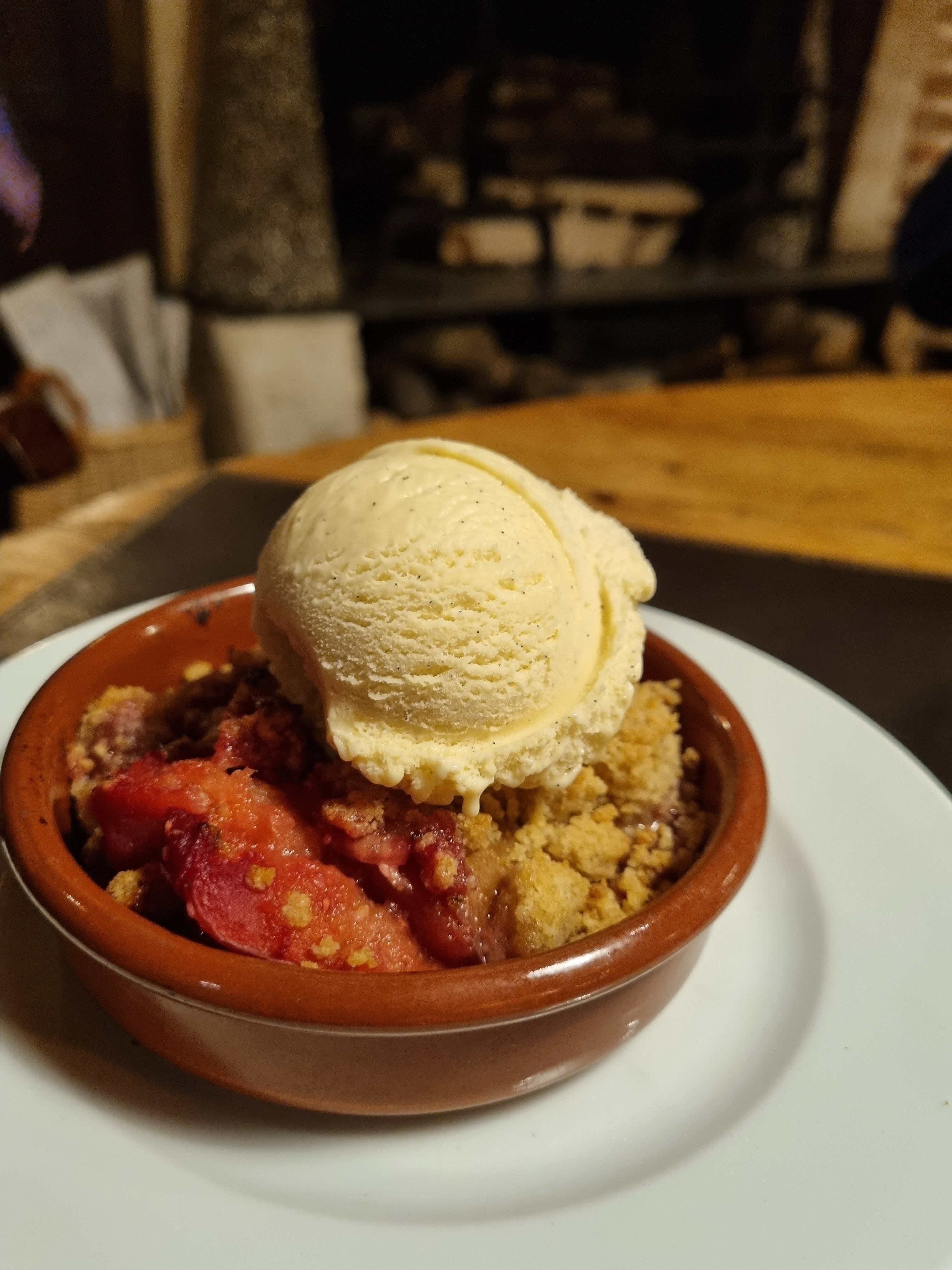 Repas un soir de semaine, en couple, menu à 32 euros. Cadre, accueil et service excellents, repas copieux et très bon avec un crumble en dessert hors norme. Texture des pommes incroyable, véritable tuerie pour mes papilles