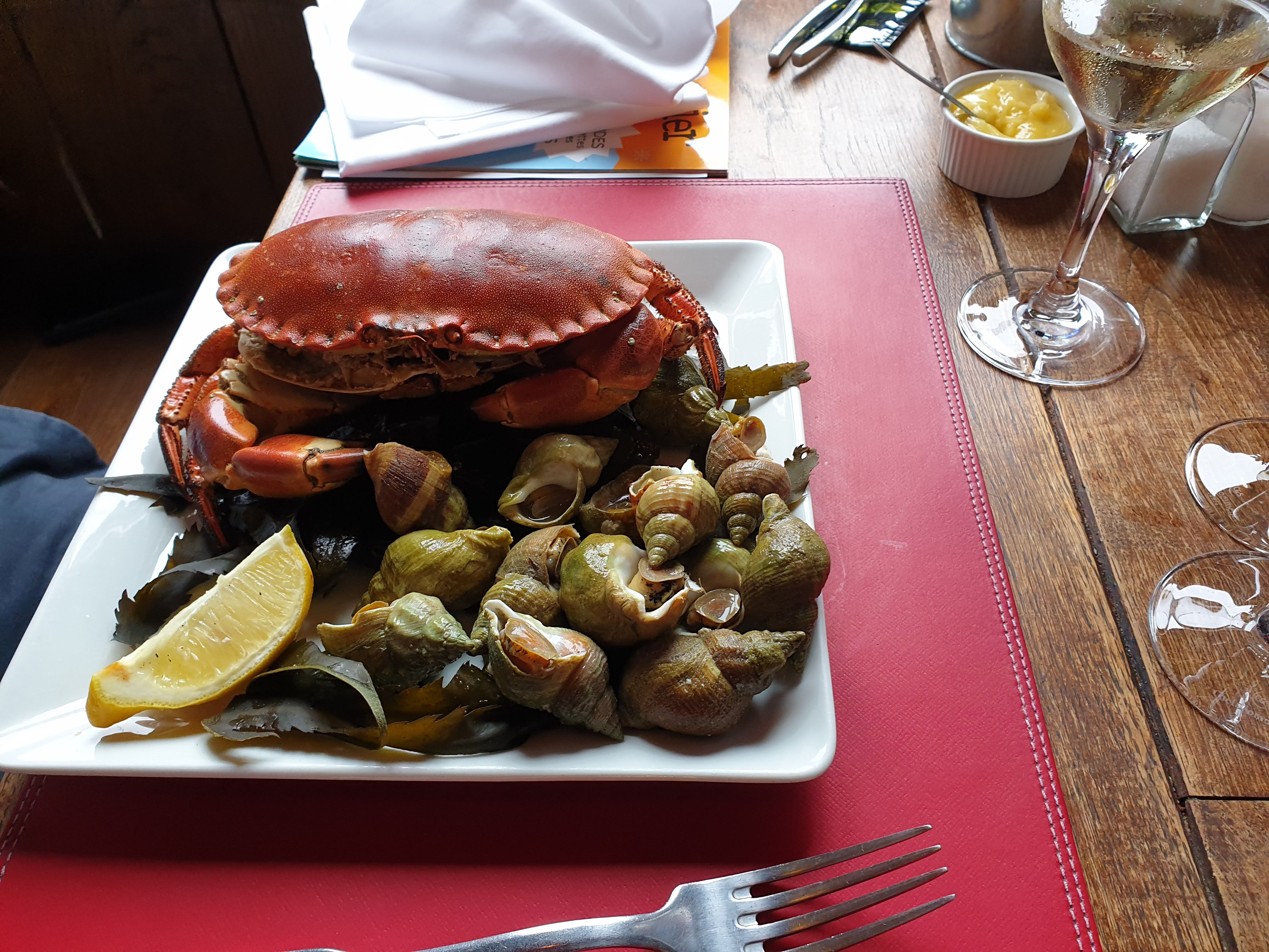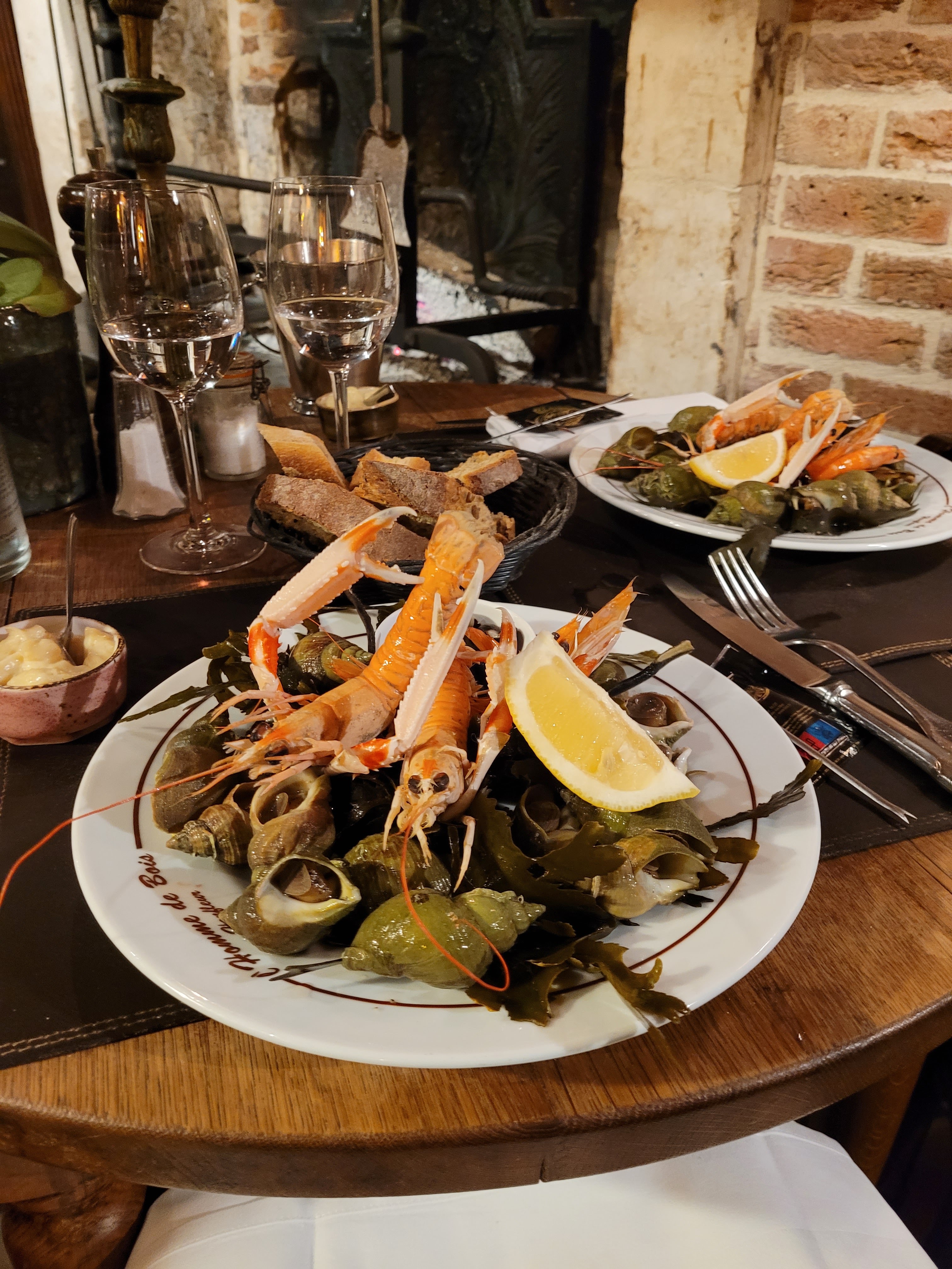 Bonne cuisine traditionnelle, jolie décoration et cheminée au feu de bois. Nous souhaitions manger un plateau royal avec homard, mais malheureusement pas de homard. Nous étions placé à côté de la porte d entrée, beaucoup de courant d'air.