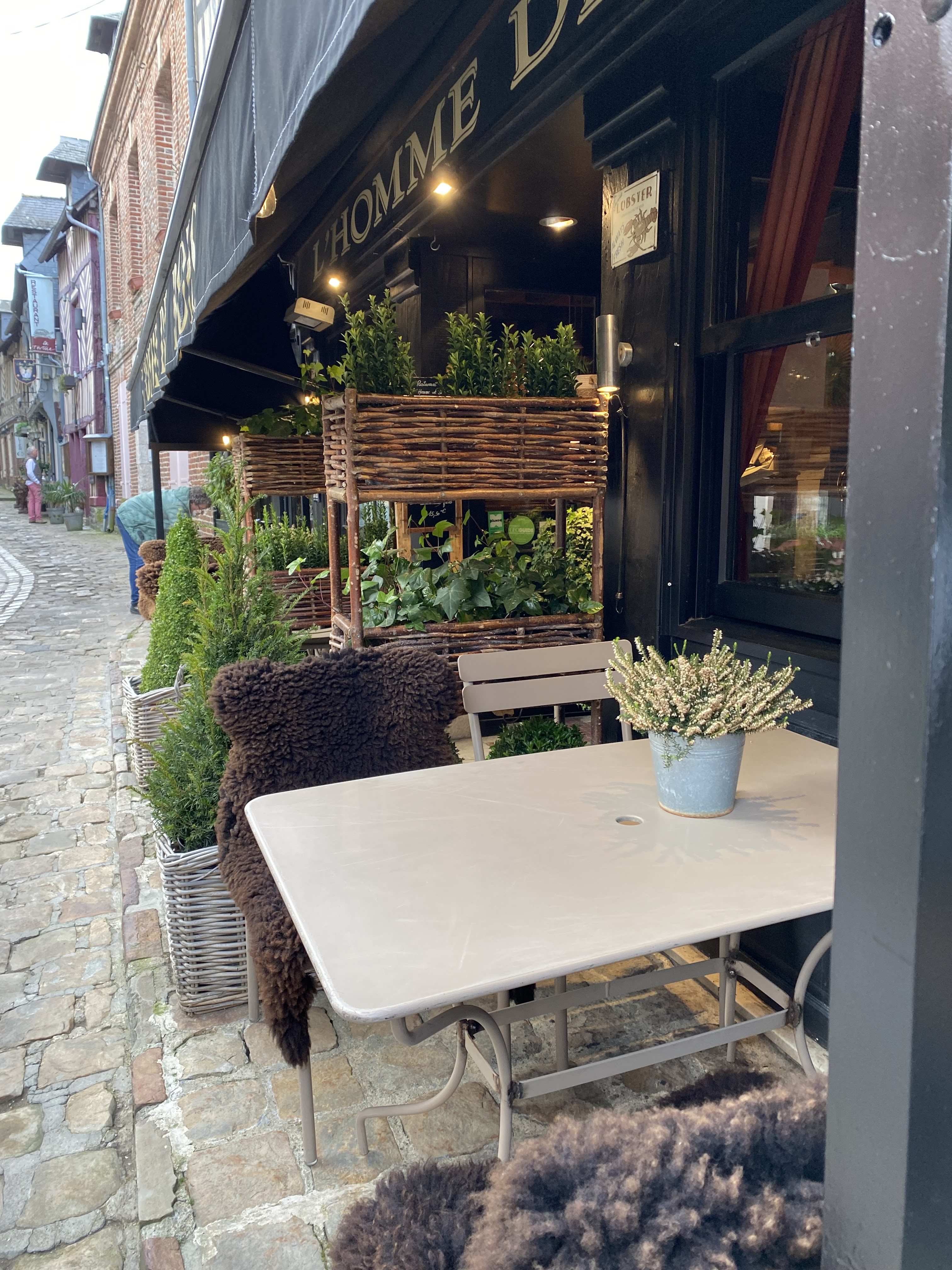 A 2min du centre ville, nous avons diné à l'extérieur. L'ambiance était chaleureuse ! En ce qui concerne la cuisine, je recommande absolument de venir au moins une fois, si vous venez à Honfleur. La souris d'agneau est un véritable coup de coeur, ainsi que le mi-cuit chocolat ! Les condiments ne sont pas là pour décorer l'assiette mais ils ont clairement leur place et accompagne très bien la viande.. BRAVO aux cuisiniers !! Mention spéciale aux serveurs Romain qui a su bien nous accueillir et nous conseiller sur notre périple en Normandie.