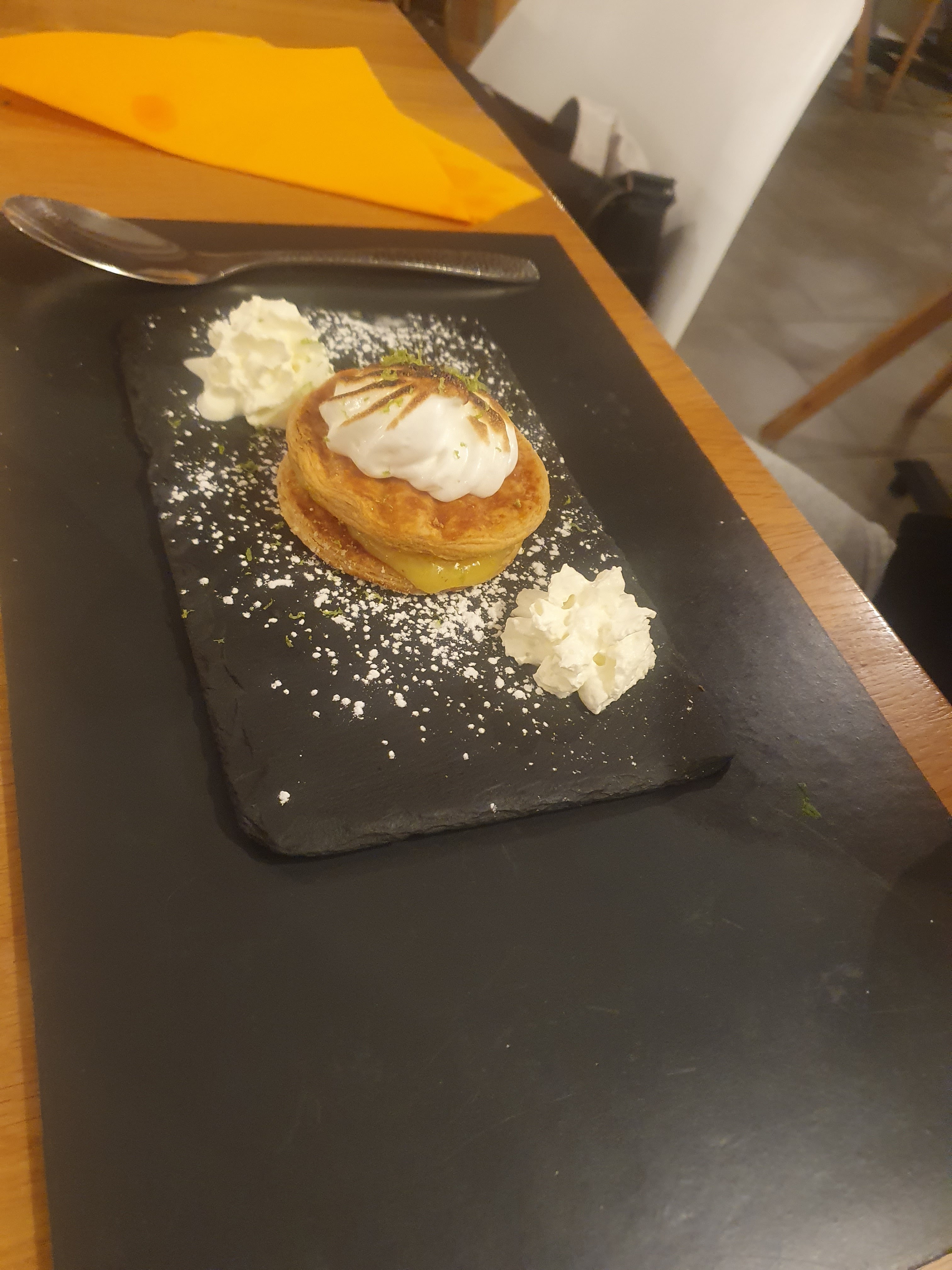Les photos de la personne précédente nous ont donné envie... alors étant sur l'aire de camping car en face , nous sommes allés prendre juste un dessert en terrasse. Malgré un restaurant plein , nous avons été super bien accueilli , de très bons desserts ! Nous penserons à réserver pour notre prochain arrêt dans votre région