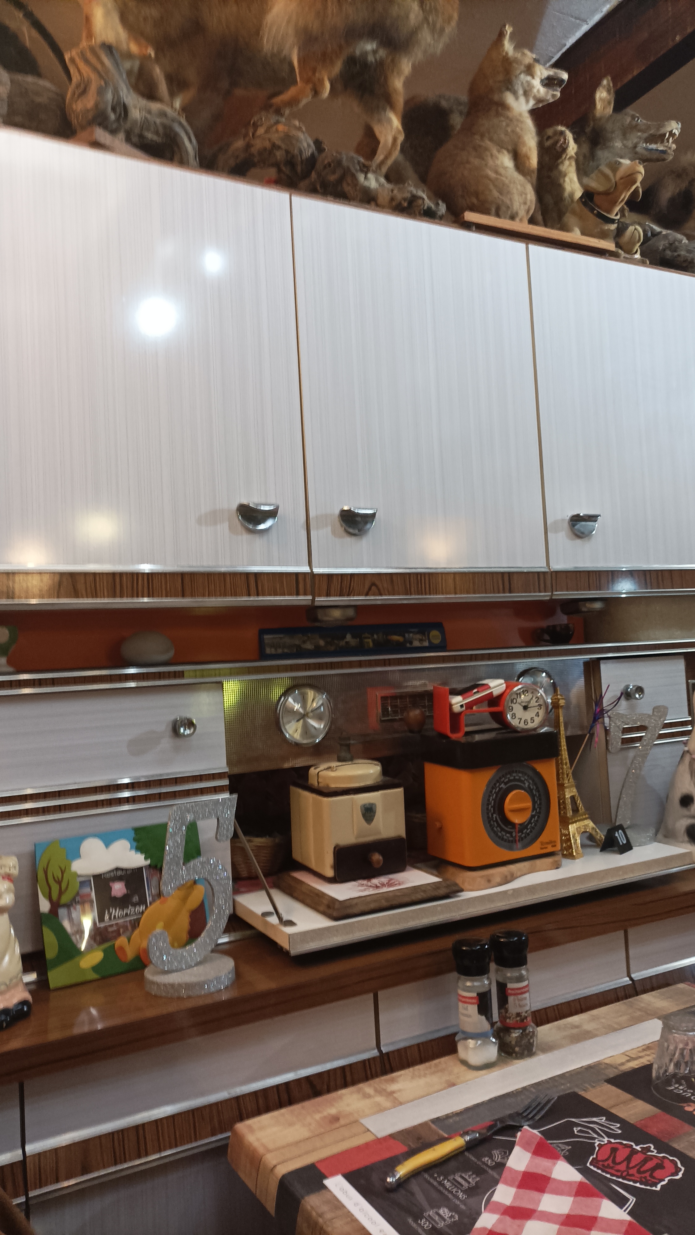 Restaurant atypique avec un décor pour toutes les générations, l'accueil est super sympa 🤪, la musique 🎶 d'un autre temps qui nous fait replonger dans nos souvenirs, la restauration très copieuse et de qualité (produits du terroir frais) et très bien cuisiné. Et casimir est de la partie pour la photo souvenir. Très bon rapport qualité prix à refaire. Le GPS et la maintenance 😂😉.