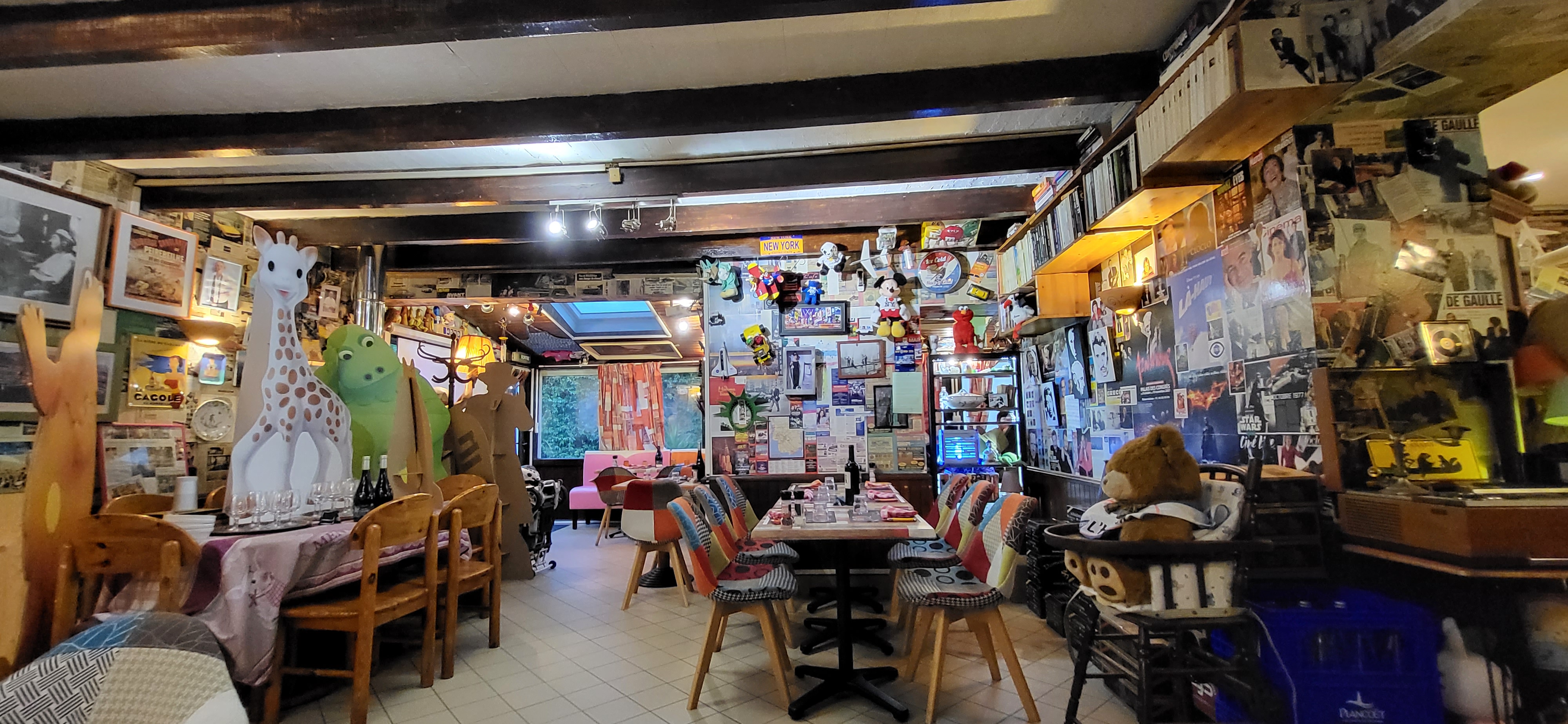 Restaurant atypique où les produits sont tous frais, locaux et de bonne qualité. Charcuterie du coin ou fait maison, fromage des producteurs locaux (à l’andouille par exemple). Personnellement j’ai adoré mon camembert rôti et mon confit de canard +++ Un moment inoubliable avec une déco incomparable, des affiches, jouets, objets des années 70 à 2000, plein de couleurs et de souvenirs revenants… Je recommande vivement cet endroit qui mérite d’être vu.