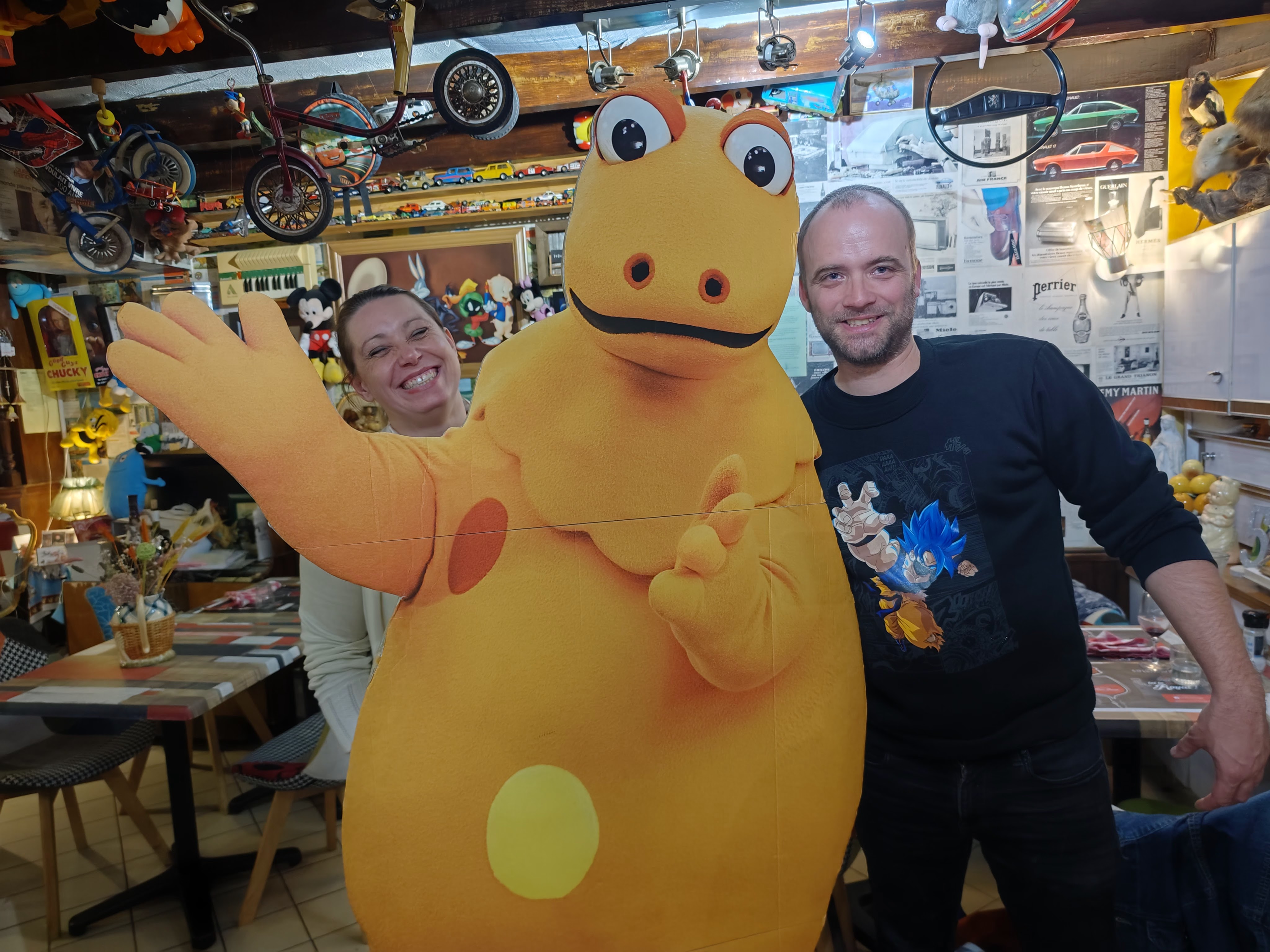 Hier soir nous avons pu déguster des plats délicieux et découvrir ce lieu où l'on retrouve plein d'objets de notre jeunesse. Merci pour notre photo avec Casimir. On a adoré. Nous avons un très bon moment. En plus j'adore la playlist. Bravo. Merci a vous. A bientôt Véronique et Laurent