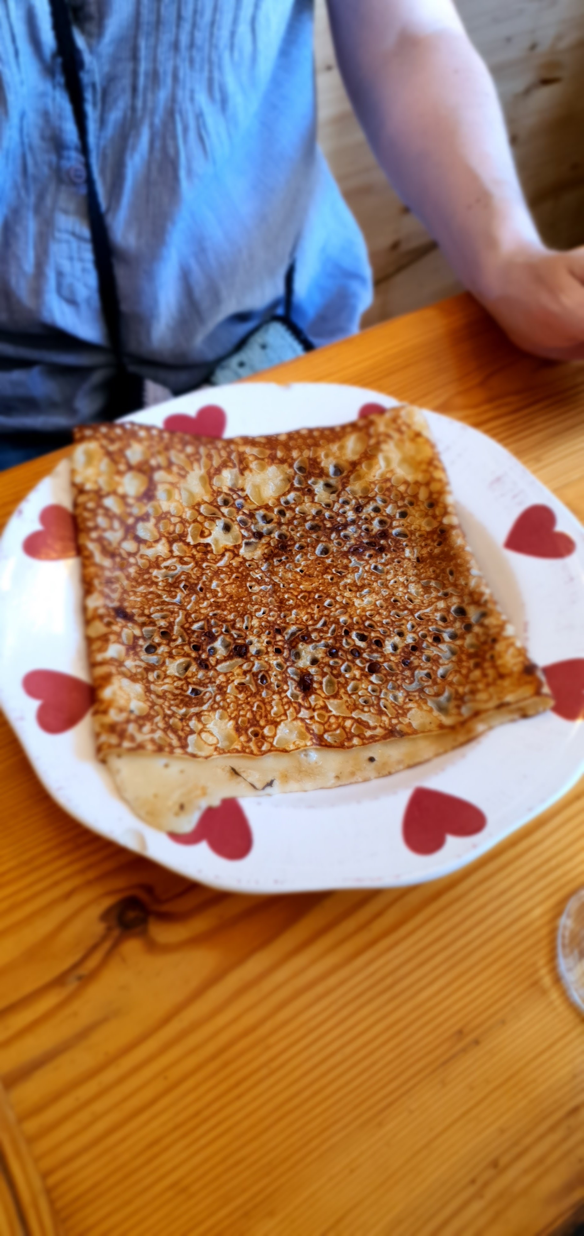 Bonne ambiance mais les crêpes sont bizarrement faites. C'est plus un bande de crêpes au lieu d'un rond