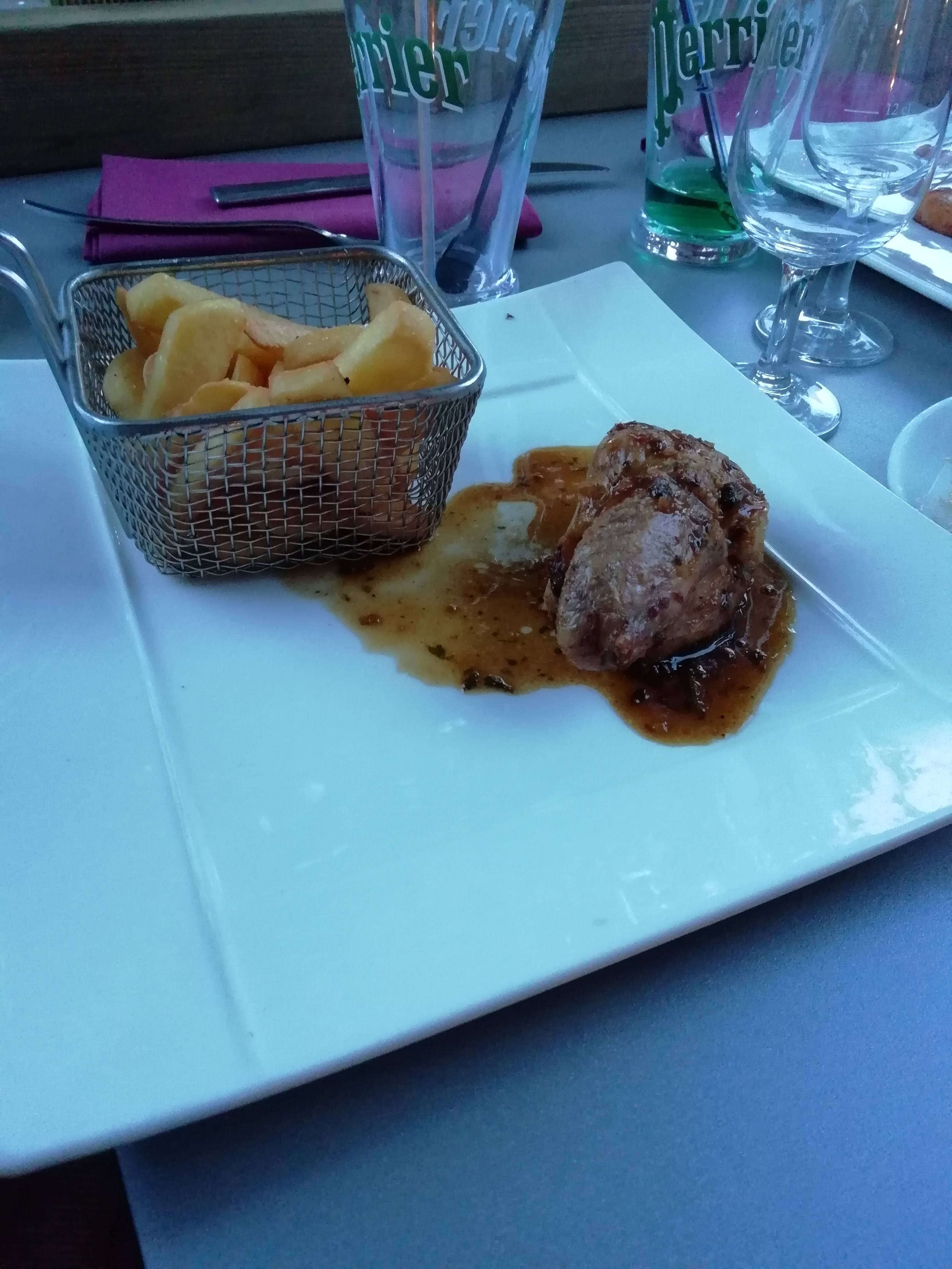 Repas parfait hier soir ….les frites sont maison et excellentes ….ça fait vraiment la différence… Le risotto persillé et les gambas flambées un délice également. Le fromage était délicieux aussi Le service parfait Je recommande grandement ce restaurant
