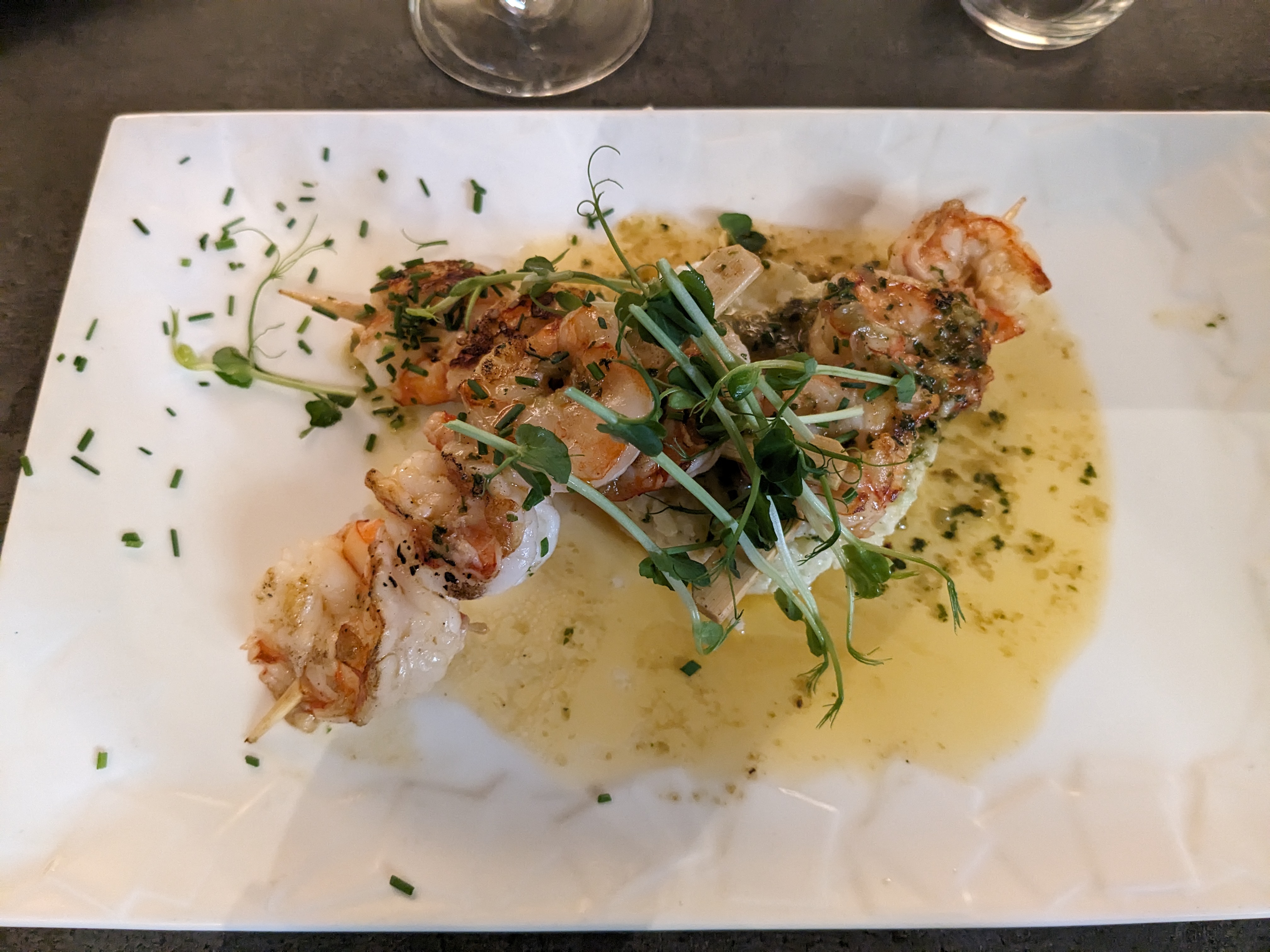 Nous avons réservé une table pour 4 personnes ce midi. Première fois pour nous. Nous étions assez confiants vu les avis mais nous avons été super déçus.. menu à 45€ entrée plat ( fromage 5€ de supplément abusé ) et dessert. Nous avons pris un croustillant de chèvre sauf que ce n'est pas précisé qu'il y a des raisins dans celui ci et c'est vraiment pas cool pour les personnes qui n'aiment pas les raisins. Brochettes de gambas en plat, je penche plus sur des crevettes que des gambas. Le dessert en soit rien à dire. Mais vraiment pas satisfaits du tout. J'ai fais une réclamation on m'a offert un ice tea pour une addition à 142€.. première et dernière fois pour nous.