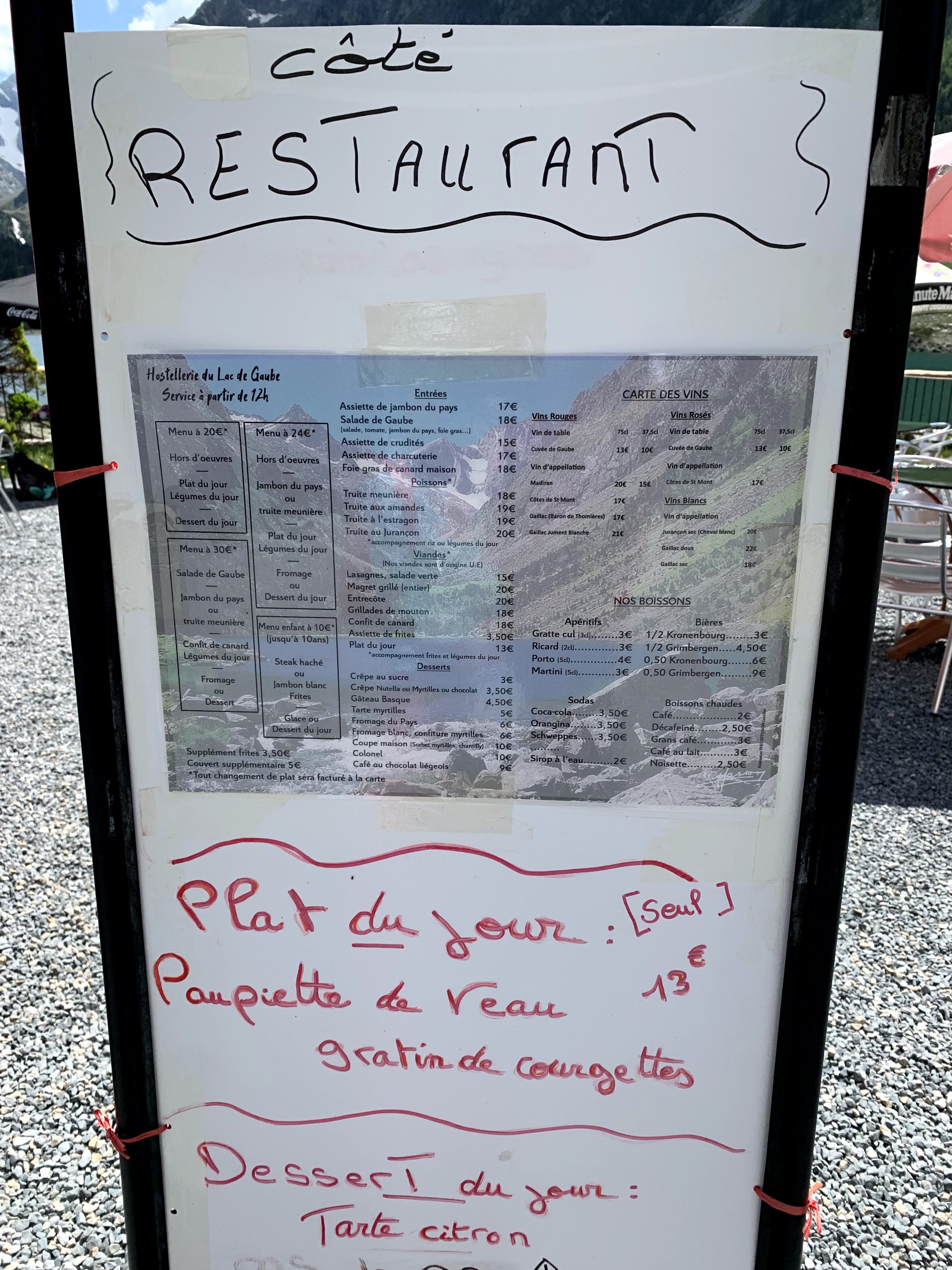 Nous avons juste fais la randonnée et le lac pas de restaurant car fermée à cette période.