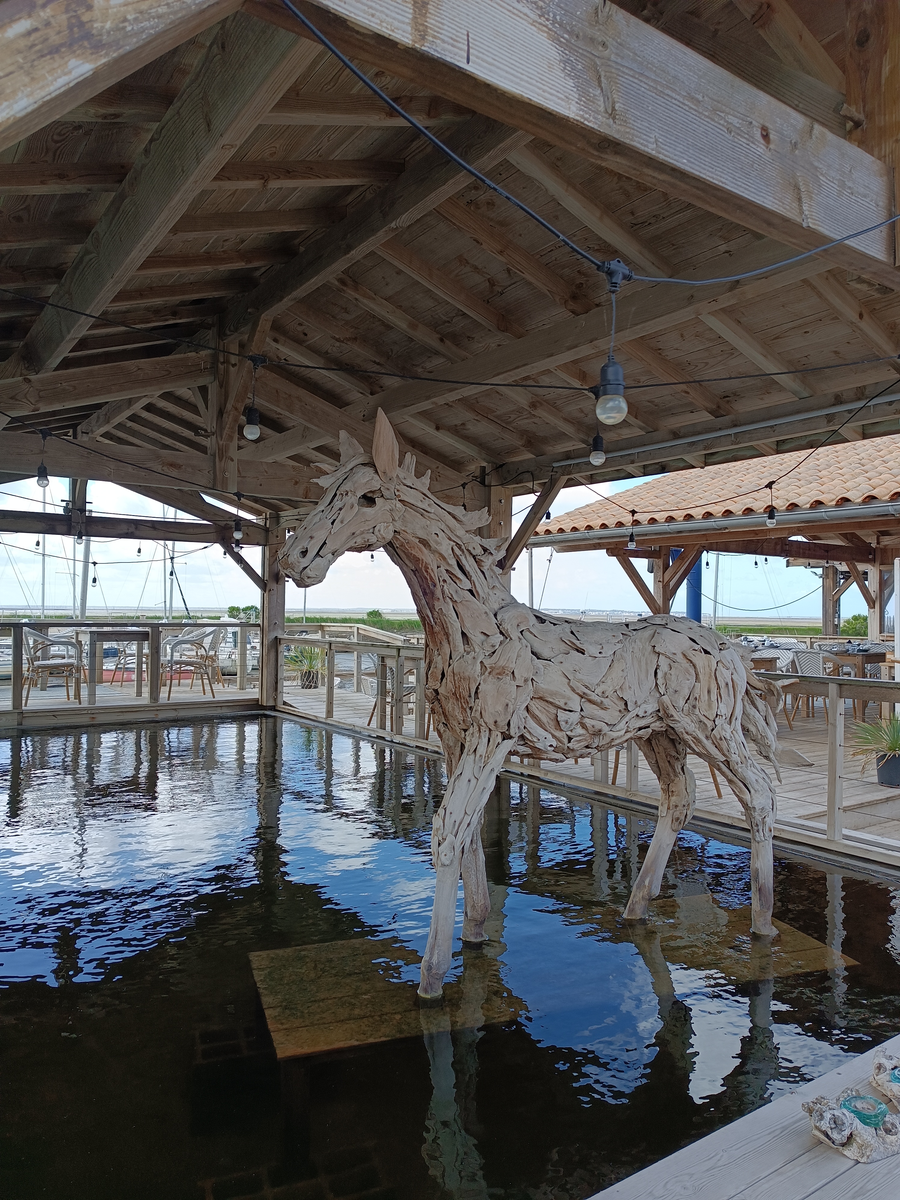 Très bon accueil. Que dire des huîtres à part délicieuses. Cerise sur le gâteau, j'ai eu la chance d'être l'une des premières à voir leur nouvelle et superbe sculpture en bois flotté : un cheval