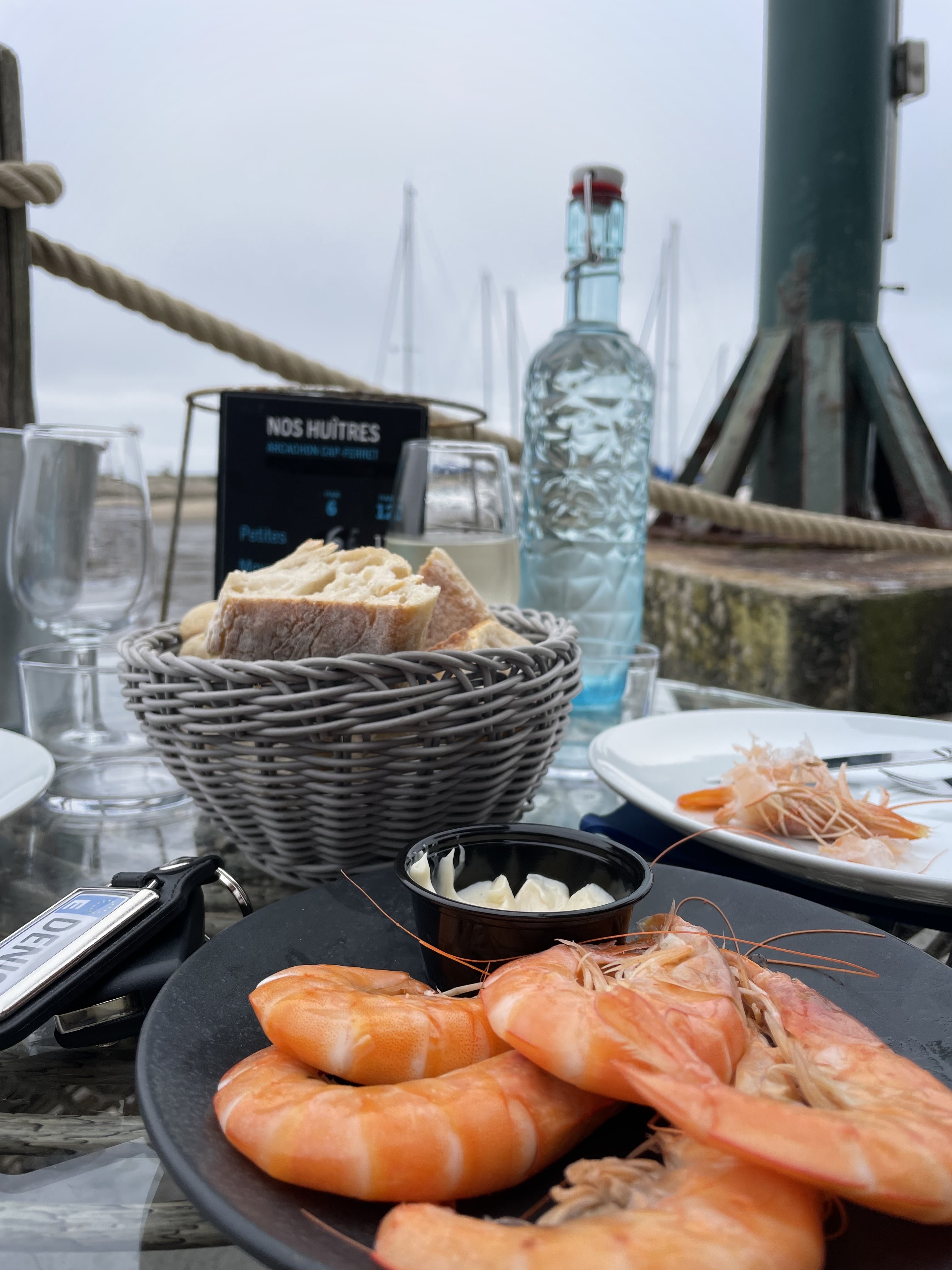 Quel cadre ! Une terrasse magnifique avec une vue imprenable sur le bassin, des huîtres et crevettes ultra fraîches, un délicieux vin blanc, un service aimable, rapide et efficace. Que demander de plus ? On y reviendra.