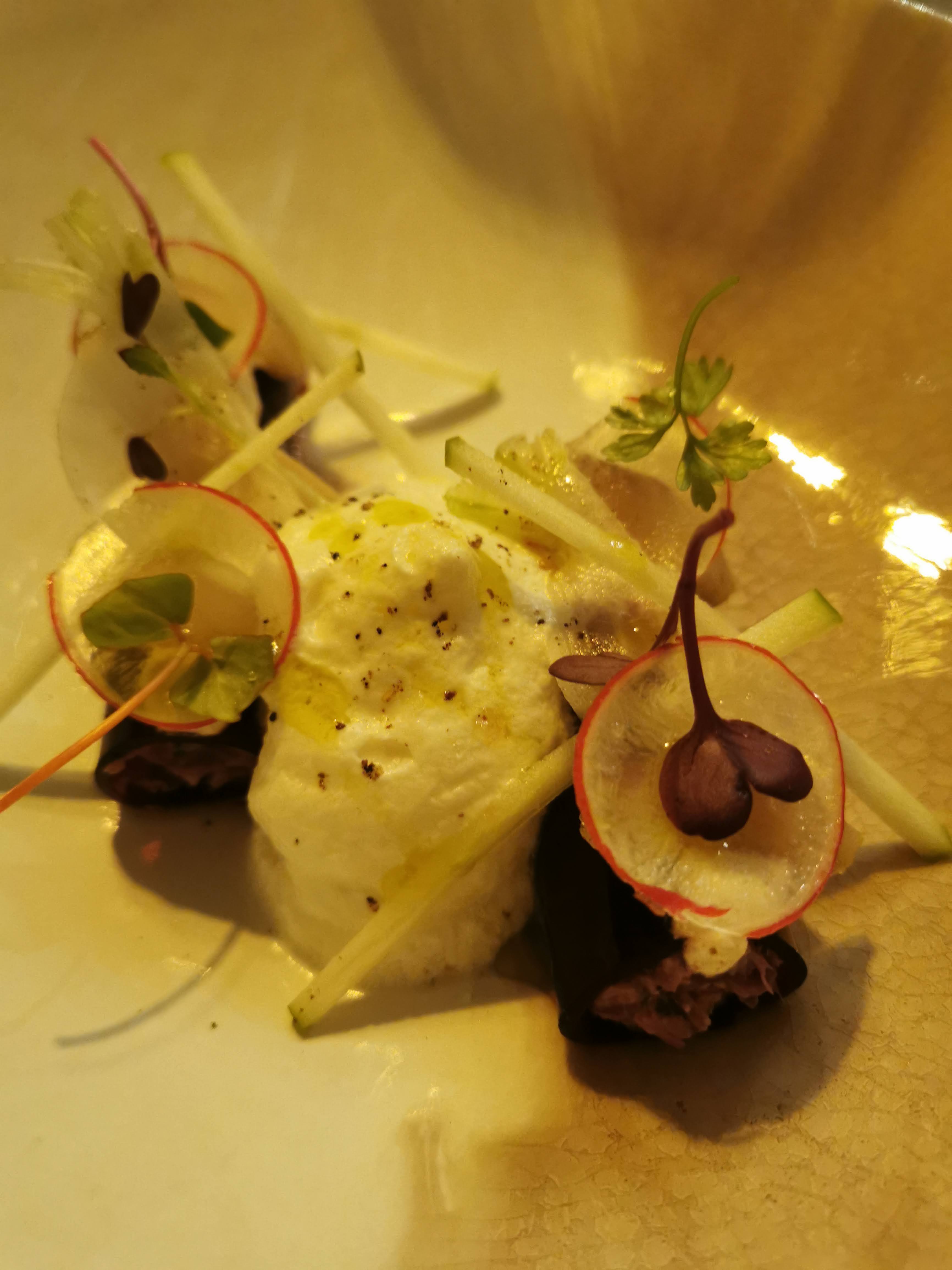 Nous avons eu un fantastique menu de 7 plats et une soirée très spéciale. Notre point fort personnel a été (de façon inattendue) l'aiglefin avec le facteur « wow » ! Le sommelier a parfaitement assorti les vins à notre goût et le service était sympathique et très bon. Le cadre extérieur est charmant. Nous ne pouvons que recommander ce joyau caché et assurez-vous de réserver à l'avance pour obtenir une place sur la terrasse.