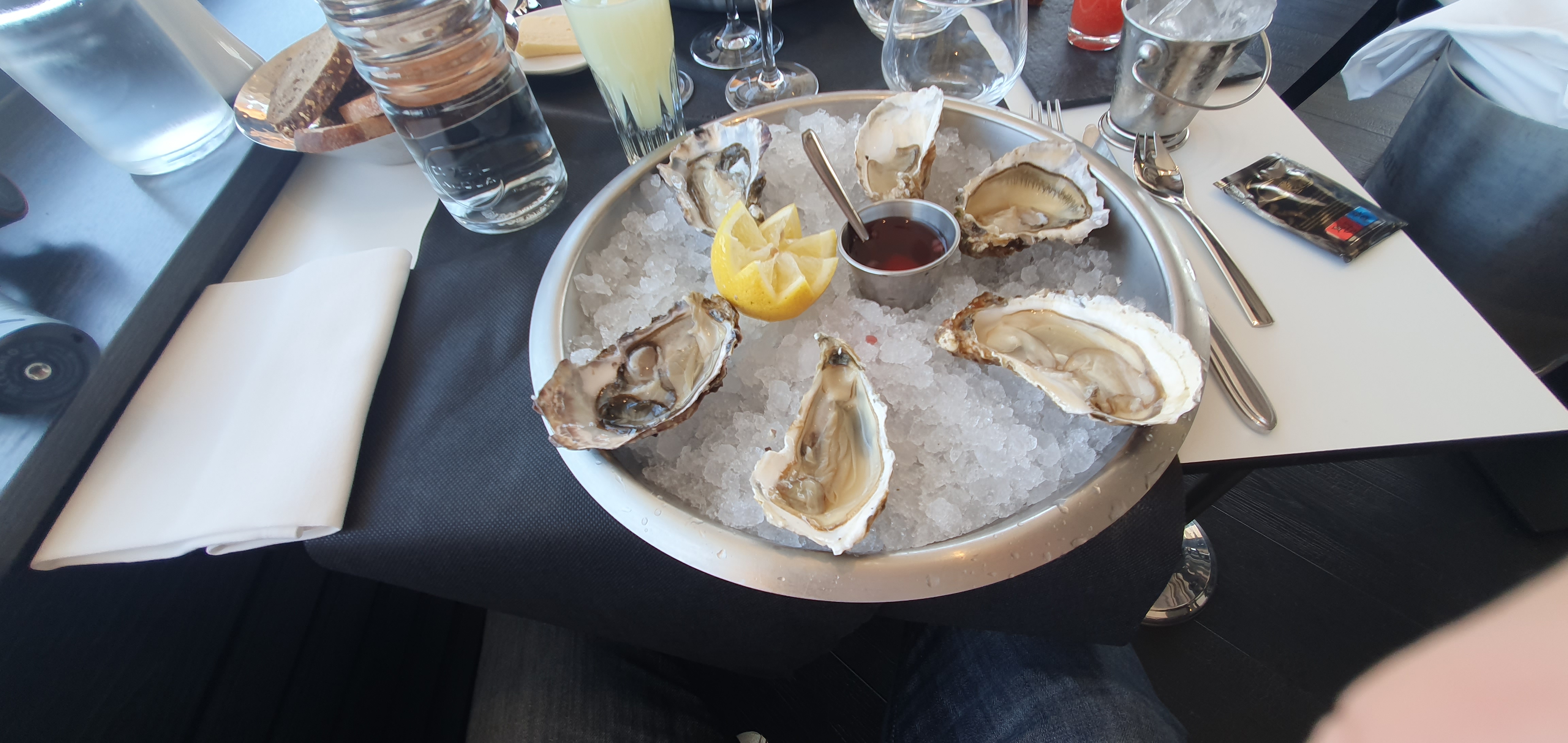 Huîtres extra fraîches, excellentes. Mon quasi de veau était tout nervuré, on me l'a changé sans aucun problème. Tout était bon.