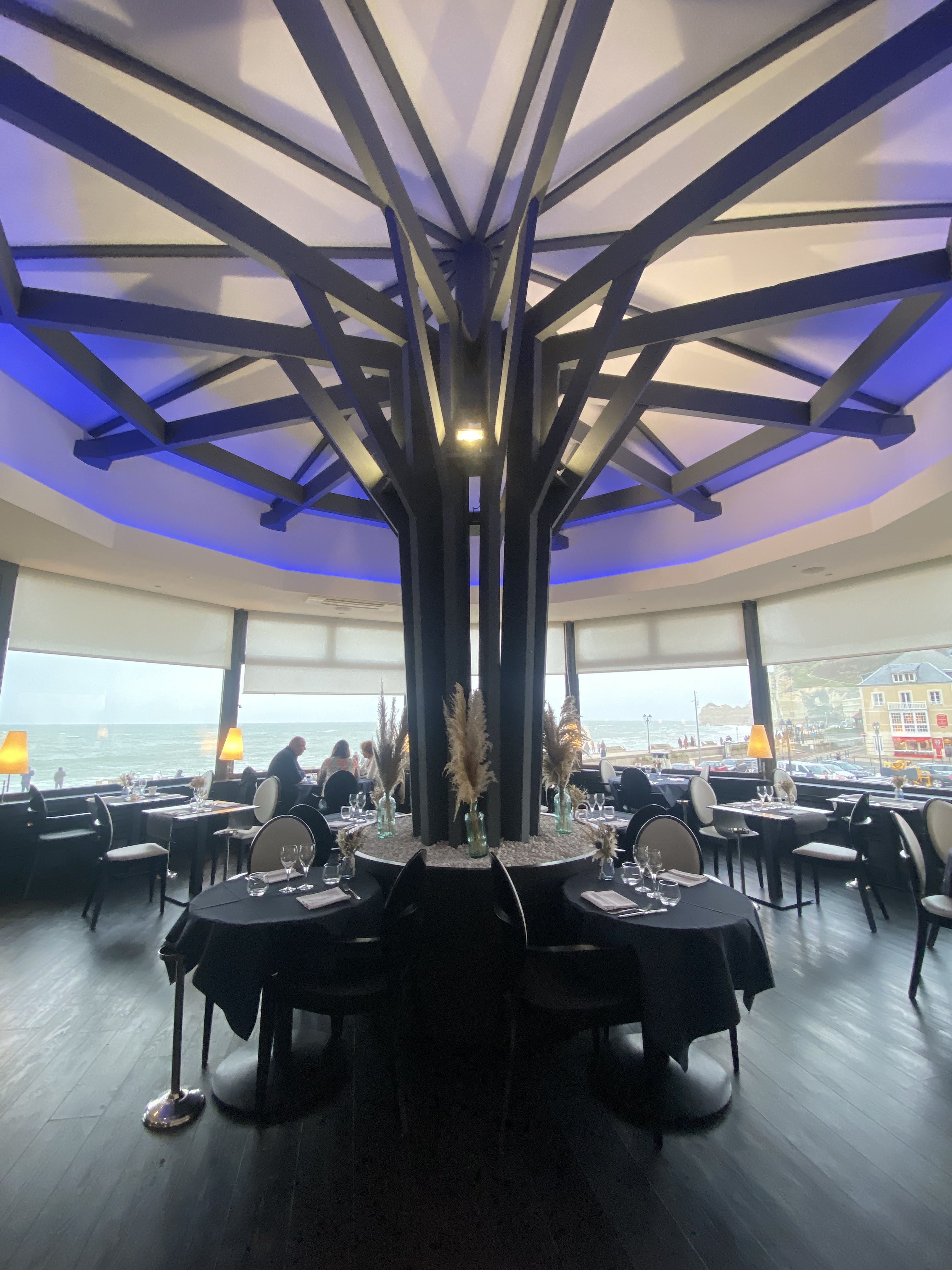 Vue superbe sur la mer et les falaises Salles rondes originales Service attentionné aimable et efficace Magnifique plateau de fruits de mer… Je recommande vivement !
