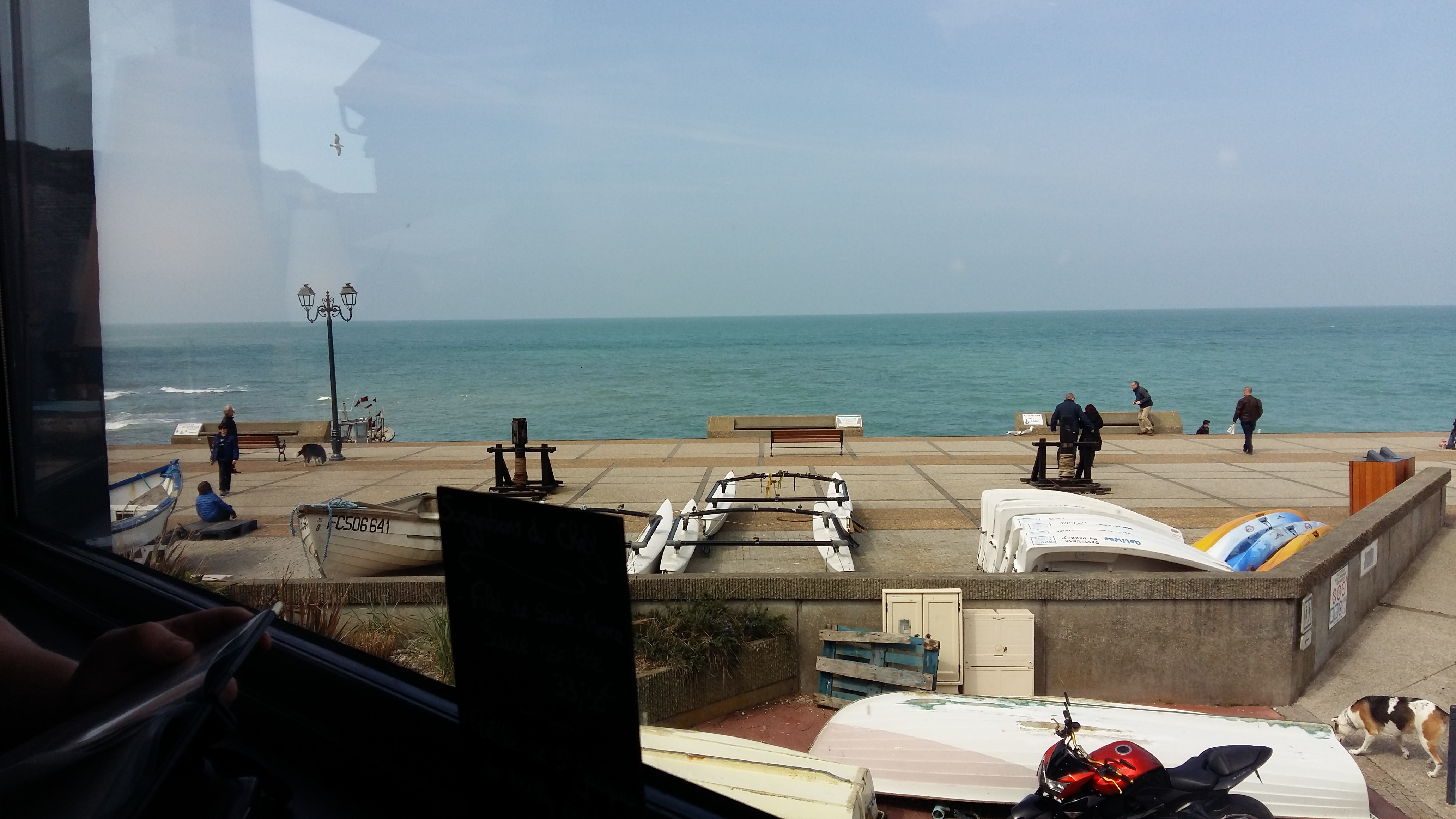 Déjeuner en famille à 4. Très bon accueil par une charmante demoiselle souriante et très aimable avec nous comme avec nos enfants. Nous avons bien déjeuné, rapidement, avec des plats très bien présentés et bons. Les prix sont raisonnables et le décor et l'ambiance juste parfaits avec la vue panoramique sur la plage et les falaises.