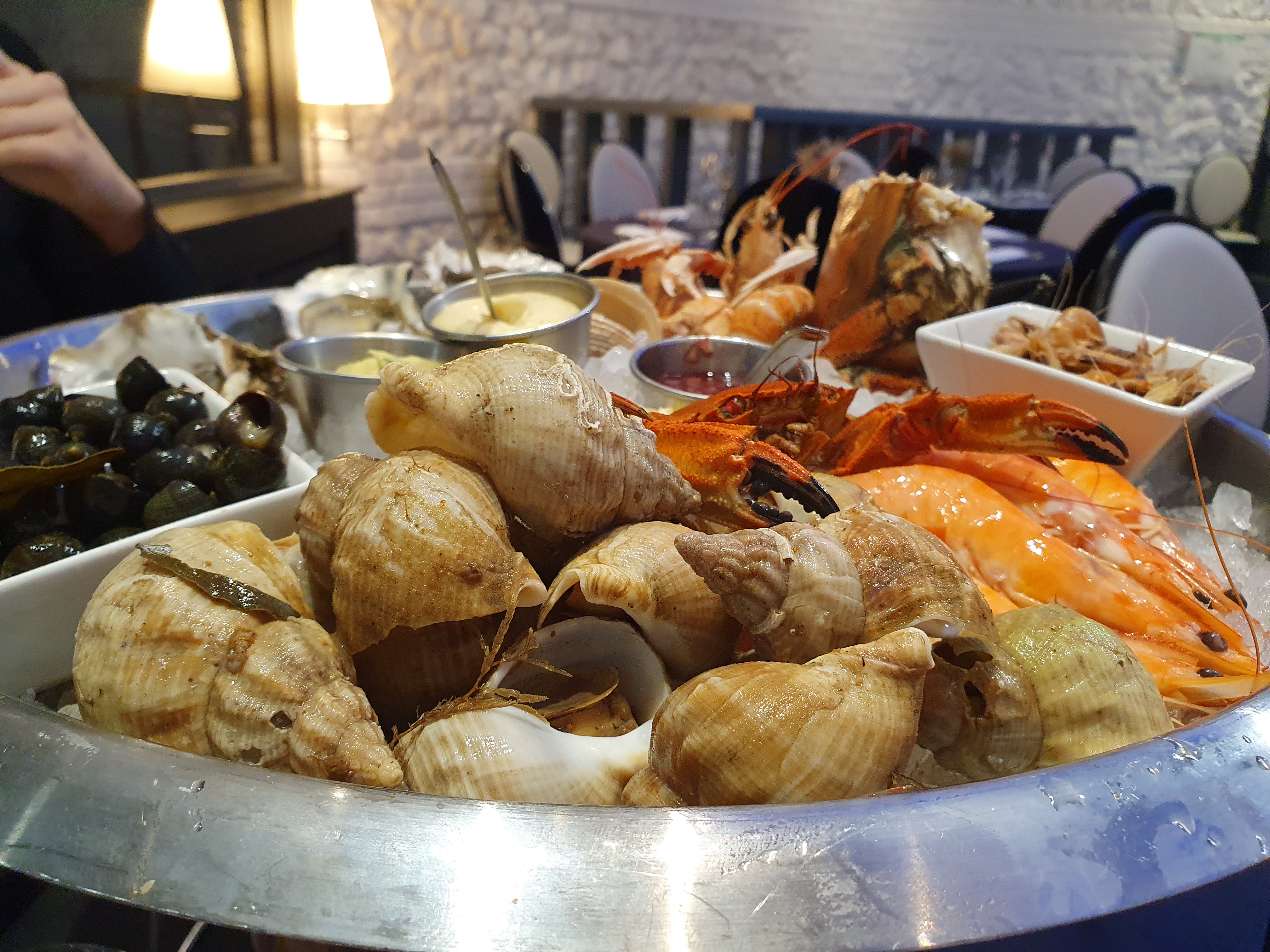 Très bons bulots et mayonnaise ok mais vu mieux surtout en restau de fruits de mer . On était venu prendre un verre à 17 h ce lundi , pas grand monde mais on ne peut comme on nous dit : prendre un verre seulement , non non non 😅. Donc bulots oblige - verre de chablis - bière = un peu plus de 45 euros mais bon on a payeé la vue et la terrasse . Au moins les bulots étaient bons et le service soigné et attentionné . Un peu moyen le fait de devoir mangé quand même pour rien , mais bon on est gentils alors on vous pardonne pour cette fois ci . Surtout qu’il n’y avait personne y compris quand on est partis 😉 Restaurants au prix élevés toutefois donc si vous avez quelque chose à fêter ou juste si vous êtes riches pour un repas complet .