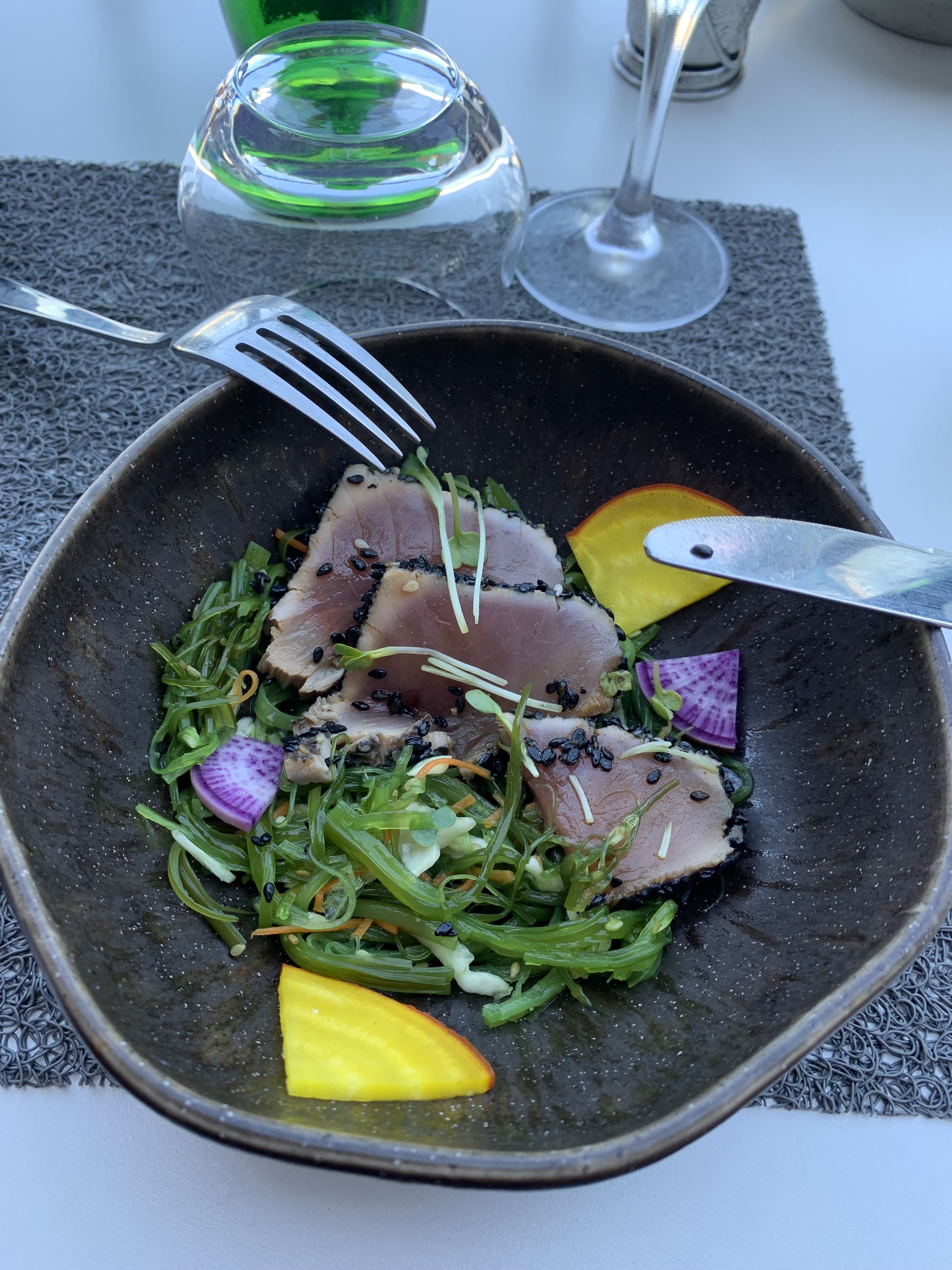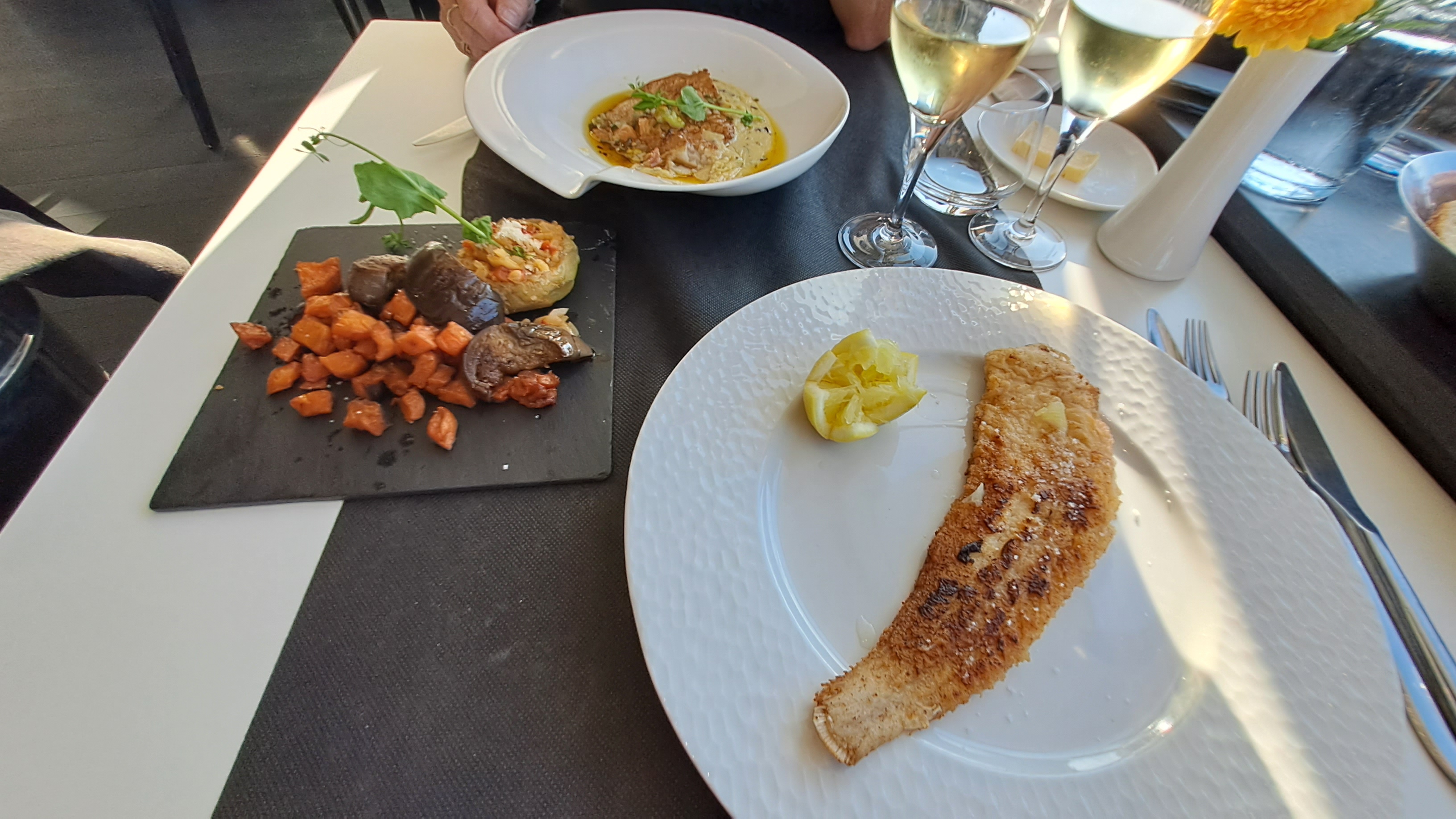 Tres bon restaurant pour un diner romantique vu sur la mer cuisine raffinée et belle presentation des assistes service de qualité. Seul bemol les moucherons