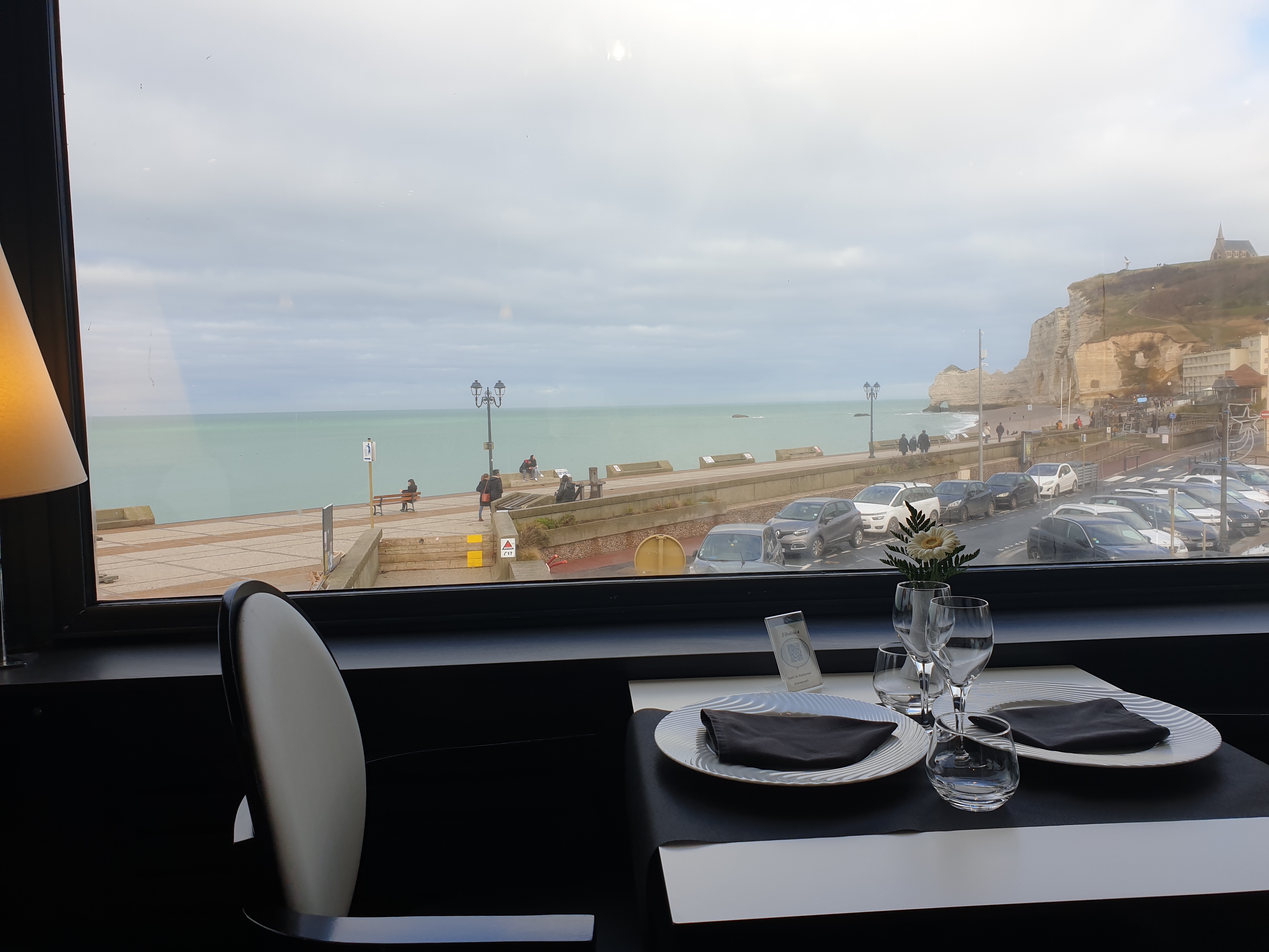 Un accueil très agréable, Un cadre juste exceptionnel avec u e vu panoramique du premier étage du restaurant. Des mets raffinés juste les huîtres un peu trop froide pour les amateurs de ce coquillage... Très bon rapport qualité prix. Je recommande pour ceux qui désir prendre un repas avec une vu d ensemble sur la baie Etretat.