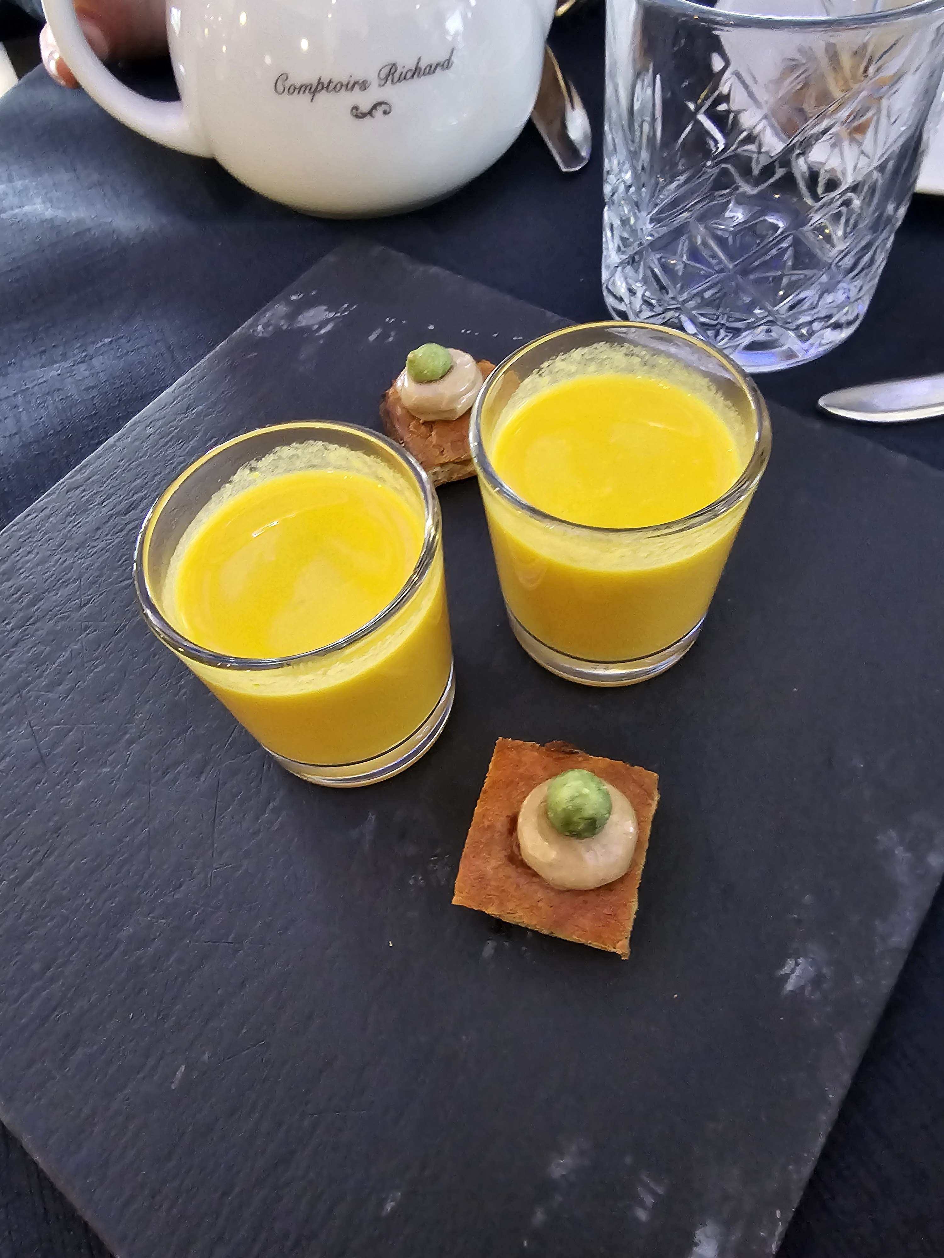 Restaurant digne d'un bistronimique. Sur 2 canard, un deux bon, l autre plein de nerf (dur). Dessert très bien. Prix assez élevé, erreur sur carte au lieu d'avoir une purée de patate douce , on a eu une purée de carrote (peu être mélanger avec de la patate douce). Au niveau de la vue, on a rien vu (on a vu que les clients)