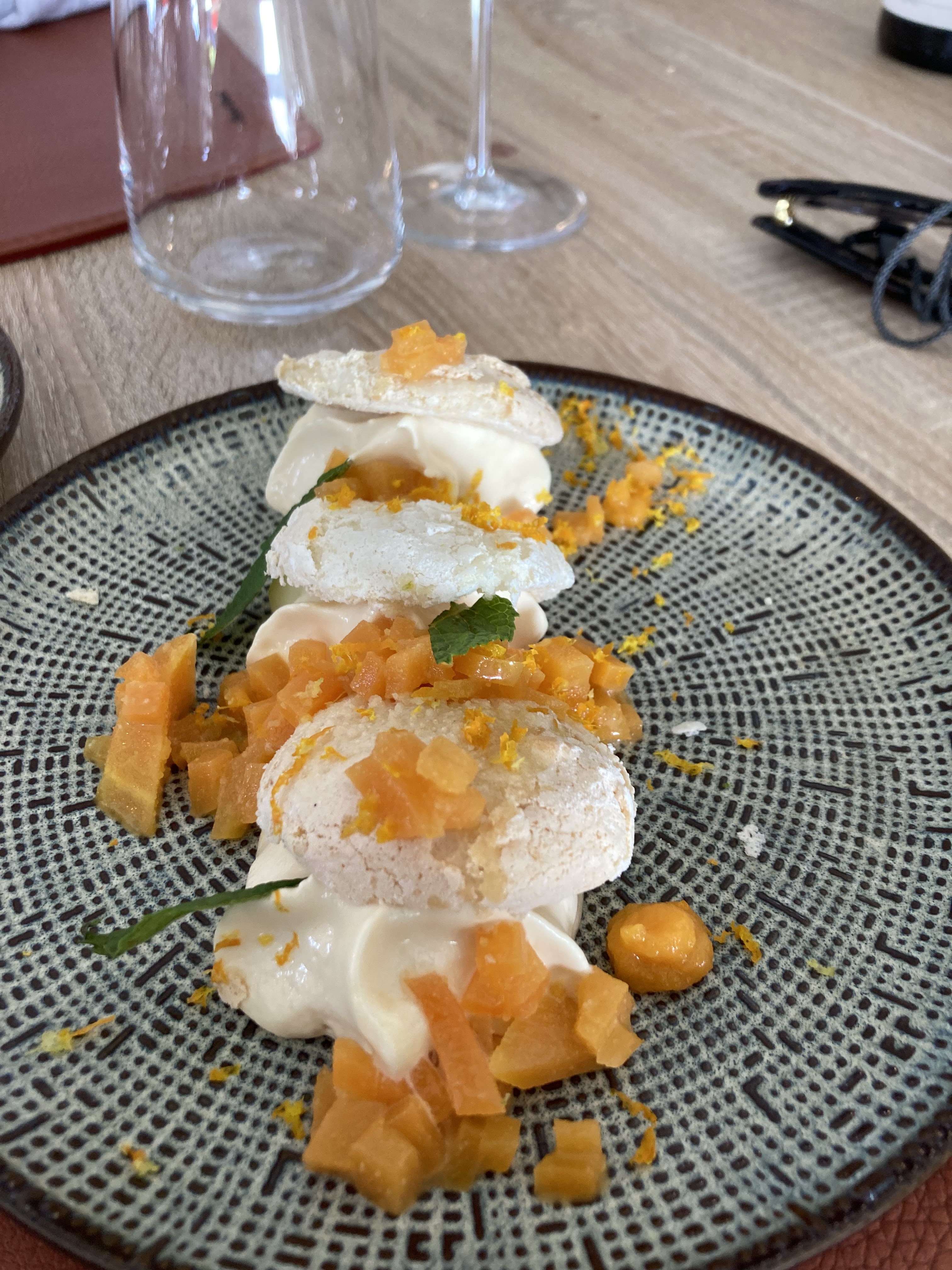 Dos de cabillaud au camembert, excellent. Petits macarons au caramel beurre salé, excellent. Je vous conseille cette étape !!