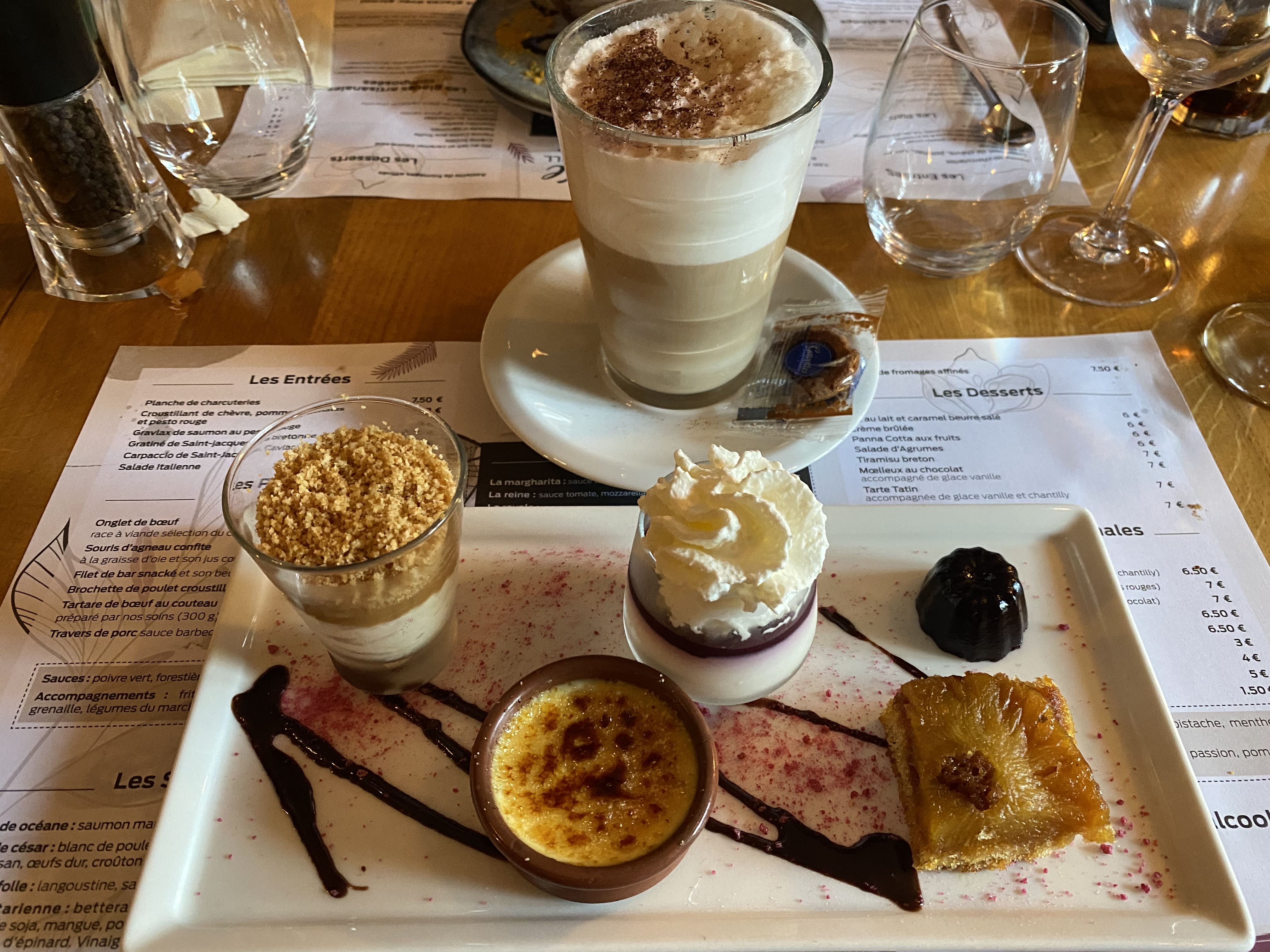 LE repas le plus délicieux que j’ai eu depuis longtemps. Un si beau restaurant confortable et beau et très accueillant. J'ai eu le canard à la sauce au miel. C’était tellement bon que je n’ai réalisé qu’après l’avoir terminé que je n’avais pas pris de photo. J'ai fait du dessert au café. La crème brûlée et le pudding au caramel buerre sel étaient excellents.