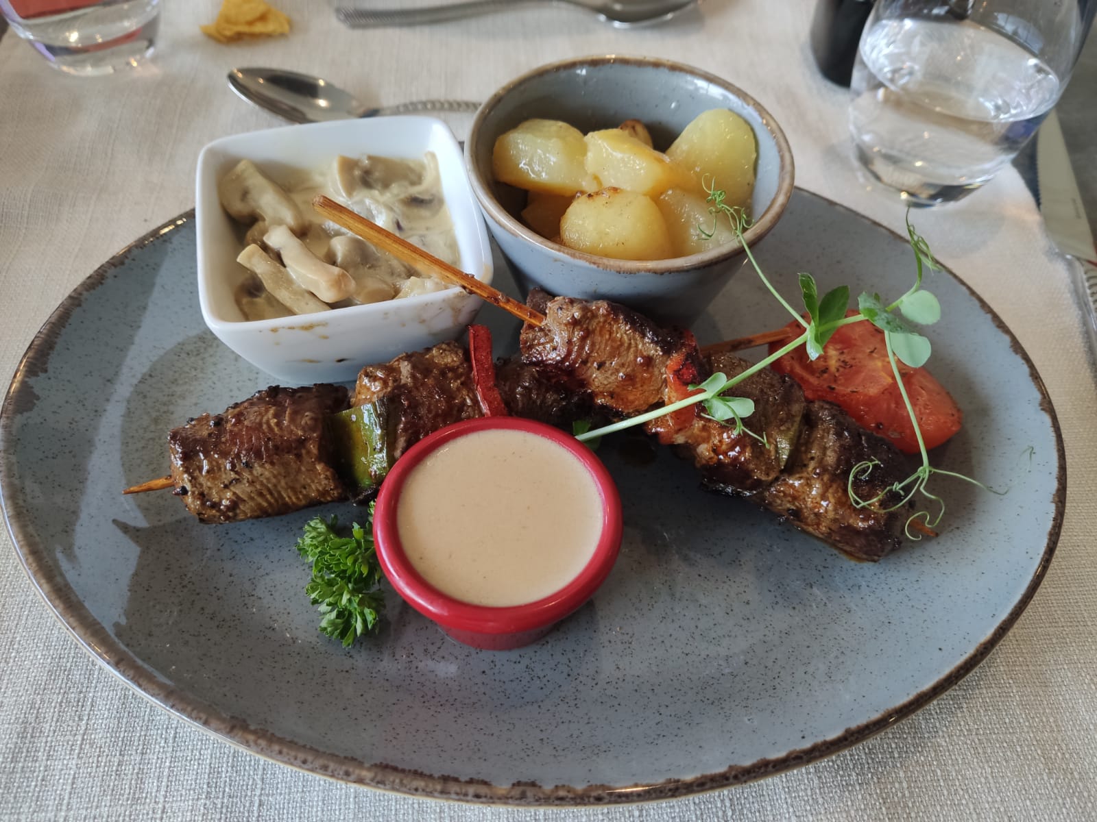 C était parfait la brochette de boeuf à la plancha avec une purée maison onctueuse est un régal. Merci car c est rare de bonnes adresses comme la vôtre et à un prix correct.