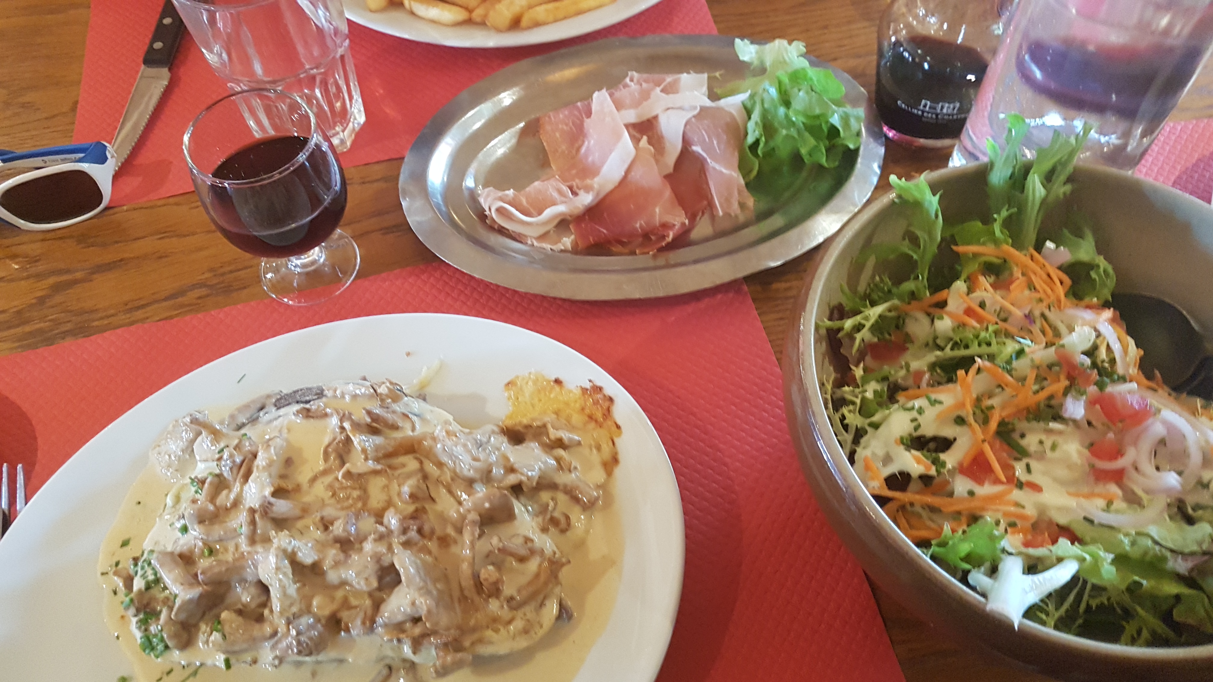 Panneau affiché à des kilomètres de distance, ce qui est d'une grande aide. Je me suis assis dehors et j'ai attendu que mon fils et mes deux amis fassent plus de courses et le personnel était adorable même avec la barrière de la langue. Ils ont assis un autre charmant couple anglais sur la table avec moi, puis mon équipe est arrivée (j'étais là depuis 2 heures sur une table pouvant accueillir 4 personnes et il y avait une file d'attente constante à partir de midi) Le monsieur en charge vient de recevoir plus de chaises et nous nous sommes assis ensemble, nous mangeons le délicieux poulet frit et les frites - avec une vue aussi magnifique que la nourriture ! Did the Marvel back, qui est une belle piste pour les débutants ou les vieux qui n'ont pas skié depuis 16 ans ♥