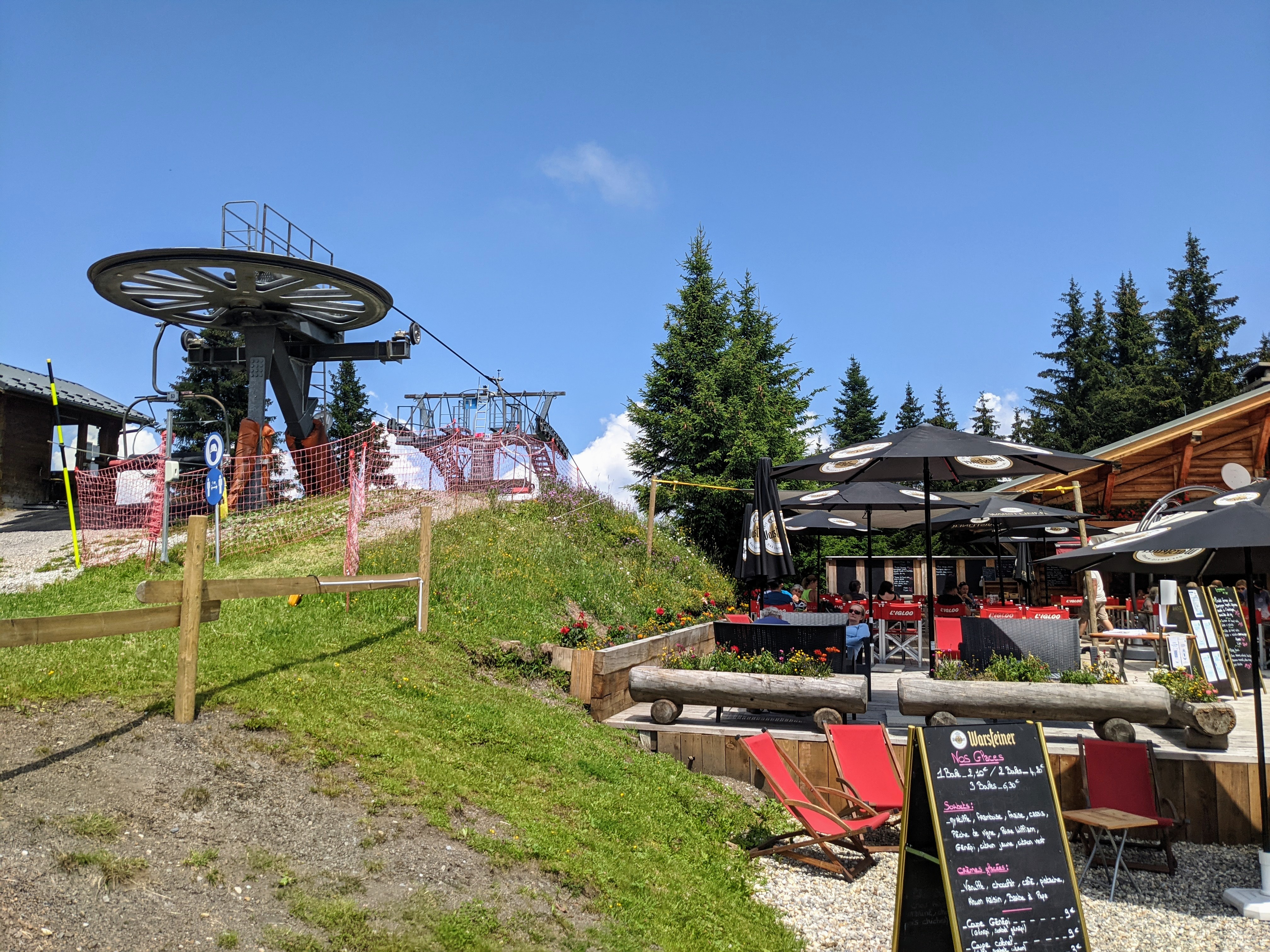 Accueil très sympathique été comme hiver. Pause indispensable pour un chocolat chaud une gaufre ou un déjeuner sur la très agréable terrasse ensoleillée. Bonne cuisine service rapide. J adore cet endroit qui offre une belle vue sur les pistes.