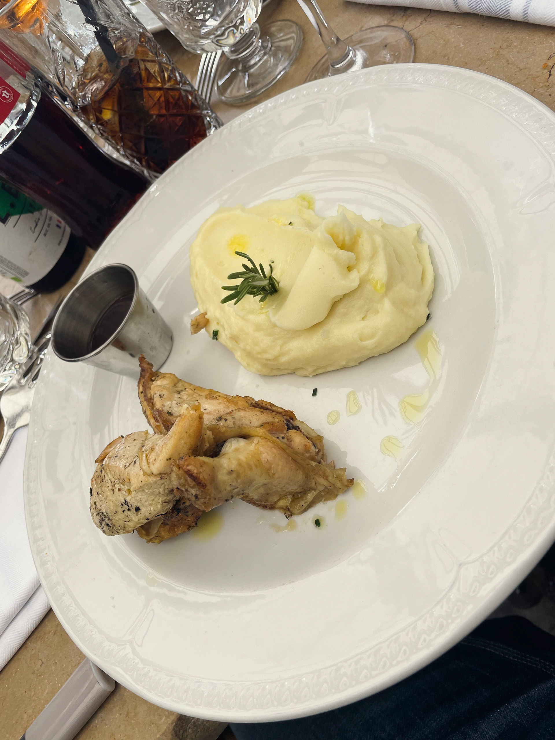 Nous avons déjeuné dans un très joli cadre avec une nourriture très bonne. Je conseille tous les plats qu’on a commandé sauf l’escalope milanaise qui est très médiocre. Les légumes braisés et les petits farcis étaient succulents. Peut-être un peu plus d’effort de la part des serveurs qui ne sont pas très souriants ils avaient l’air débordés.