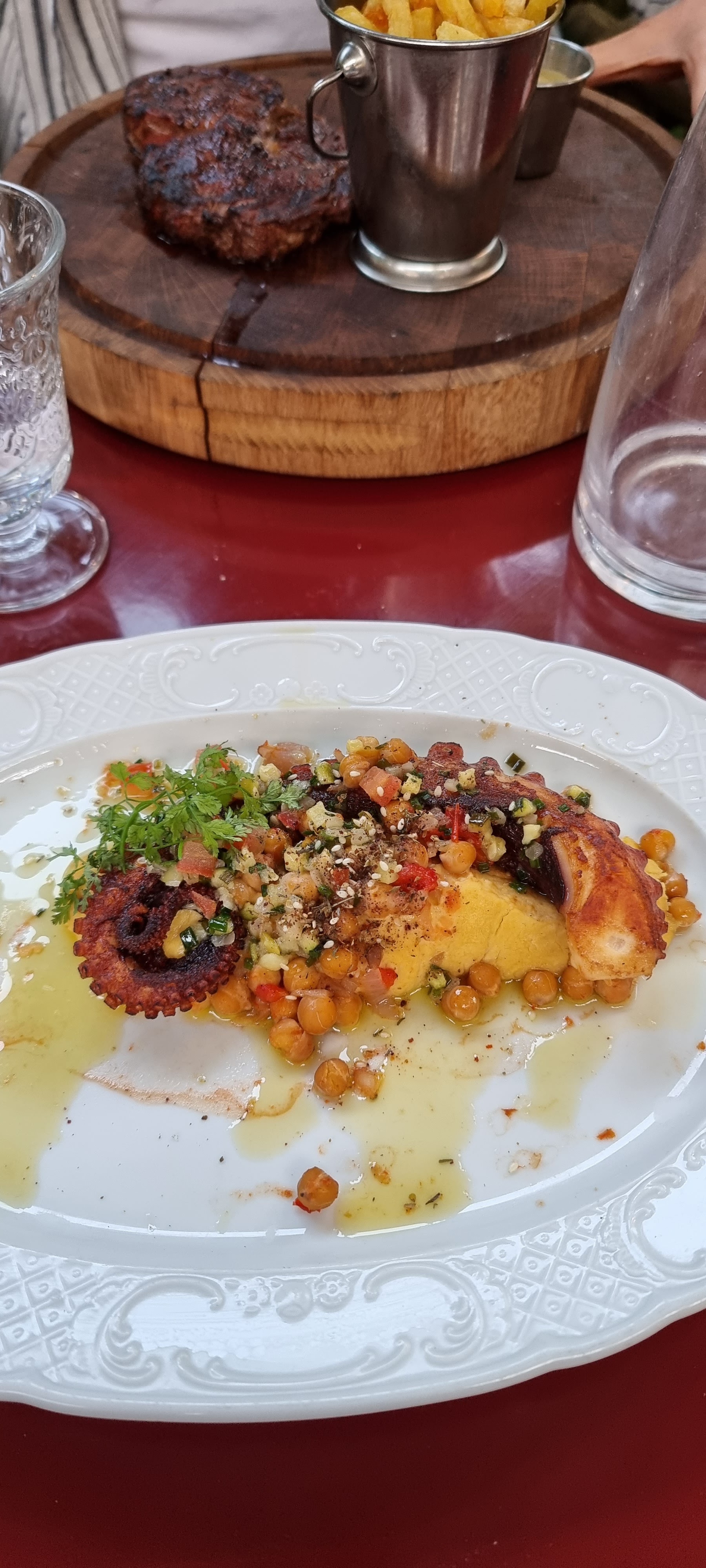 Grande déception (à part pour le cadre). Contrairement aux très grandes attentes que nous avions, nous étions tous (groupe de 4) très déçus du service ainsi que de la qualité des plats. Les serveurs étaient agressifs, pas du tout souriants, couraient dans tous les sens... Les plats que nous avions testés étaient décevants. La quantité de poulpe servie est très limitée, la sauce manque de goût. Les frites maison sont pas mal par contre. Mention spéciale pour le cadre, calme et bien décoré. Malheureusement, nous ne reviendrons très probablement pas.