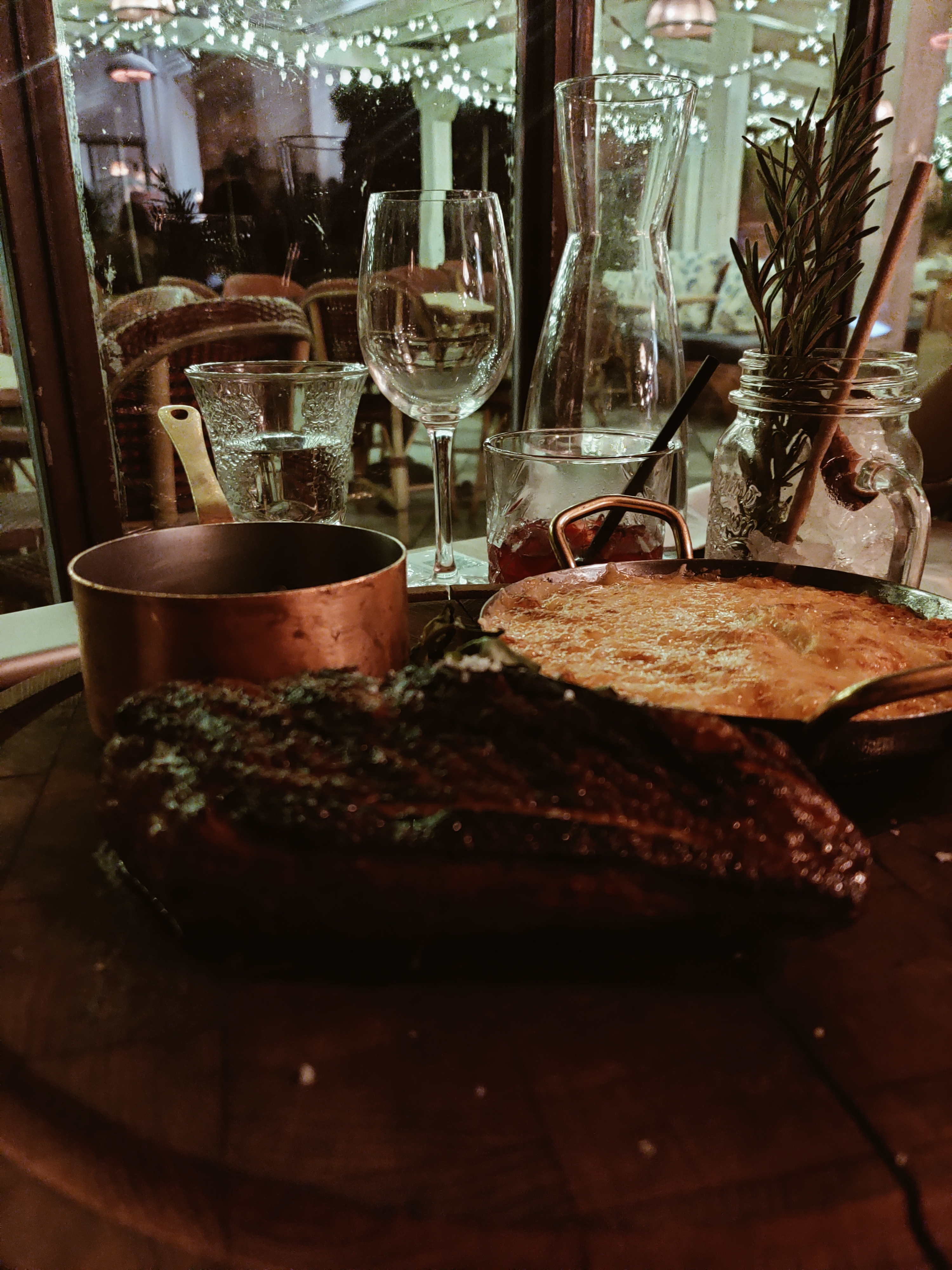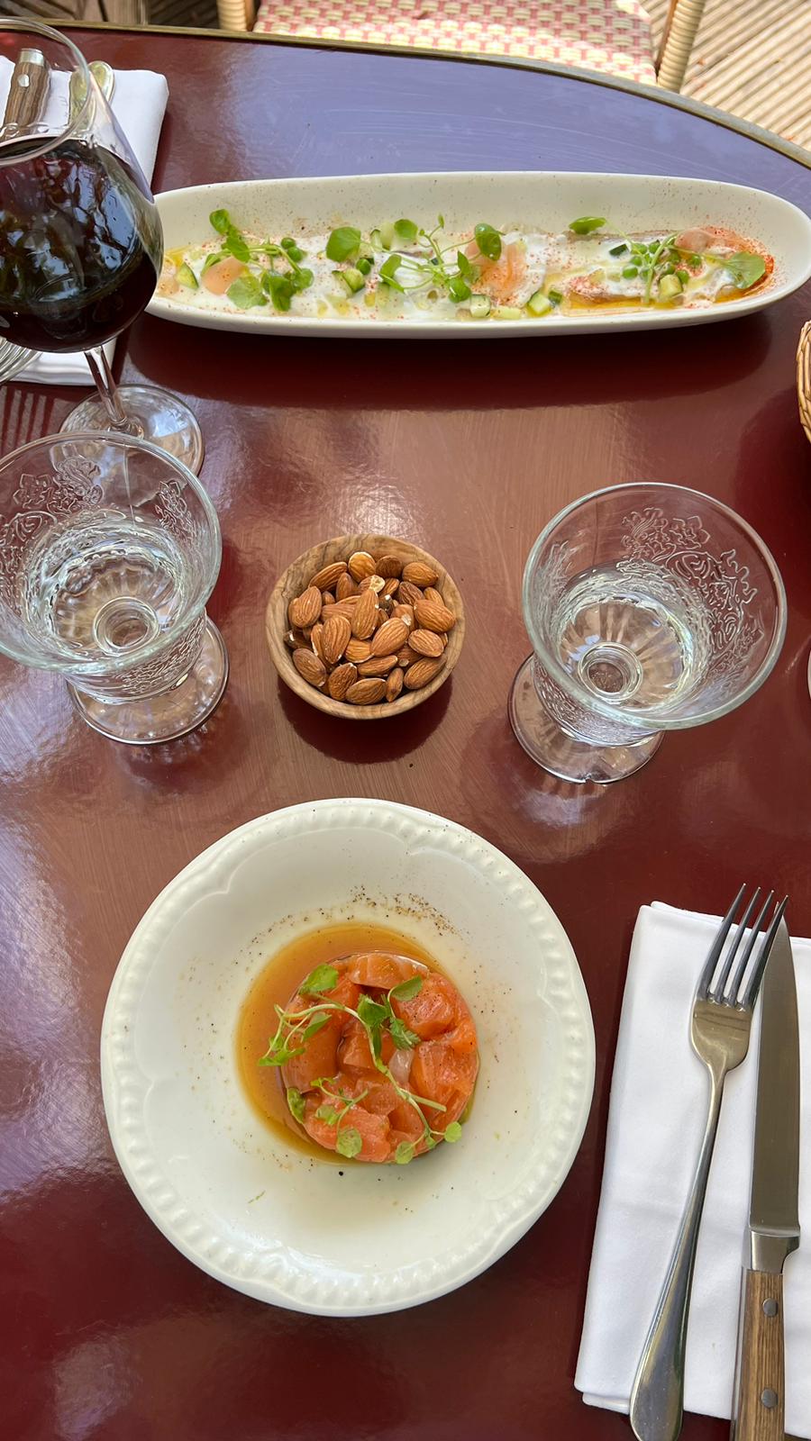 Cadre vraiment charmant. Terrasse extérieure agréable pour le dîner. Cependant nous avons été un peu déçu par certains plats ; • La grande assiette de légumes grillées était une vraie déception ; 13 tranches de légumes et un mini pot de stracciatella pour 18€ • Le Picanha de bœuf angus également ; malgré une cuisson saignante maîtrisée, le goût d’allume-feu a tout gâché, une cuisson au brasero n’est pas censée apporter un goût chimique à la viande. Néanmoins une note positive pour les desserts qui ont su rehausser notre avis, je vous conseille vivement L’île Flottante à la praline qui est succulente et la Pavlova aux framboises qui est délicieuse.