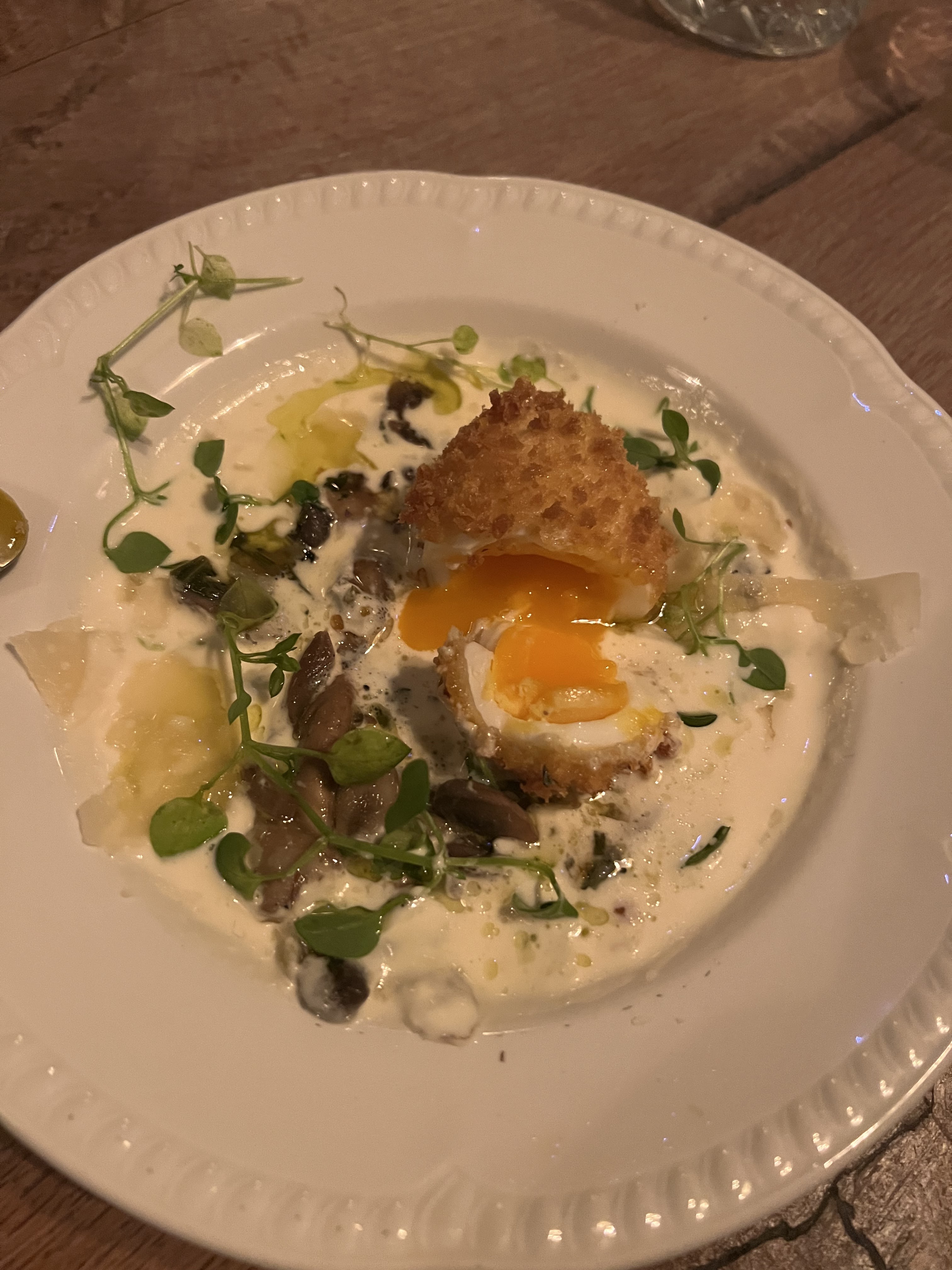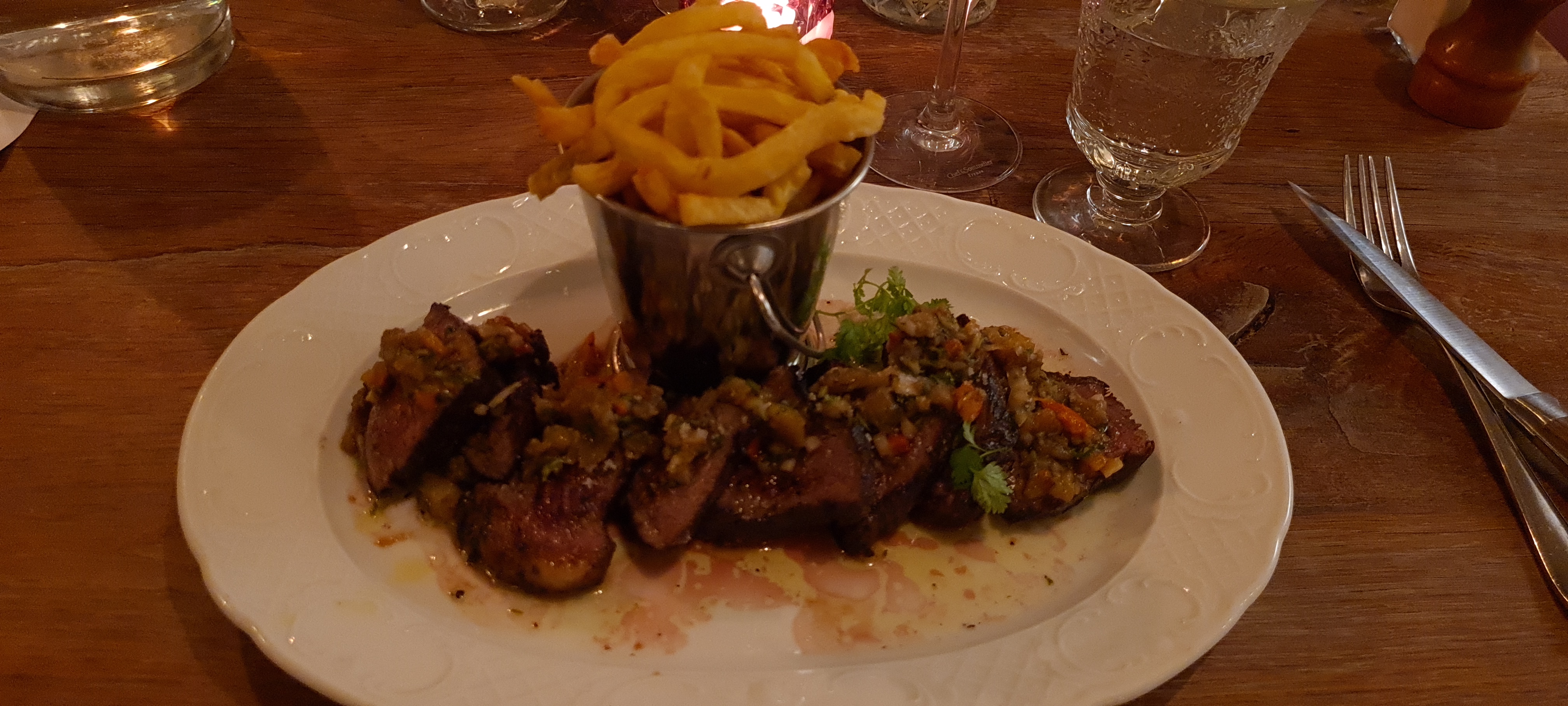 Un bien bon moment passé dans ce charmant décor. Le restaurant est absolument somptueux, un subtil mélange d’industriel, de maison de vacances et de tissus chaleureux vous donne une impression d’être sortis de la région parisienne. Dans l’assiette, mise à part le temps de service un peu long (on était servi par un runner correct mais un brin débordé, il devait y avoir un problème de staff), nous nous sommes régalés. Des généreuses croquettes de merlan accompagné d’un Petit Chablis très bien sélectionné, aux viandes savamment grillées avec onglet et rognons de veaux à la cuisson parfaitement maîtrisées, tout était très bien. L’addition est bien sûr plus élevée que la moyenne mais c’est normal, il faut s’y attendre.
