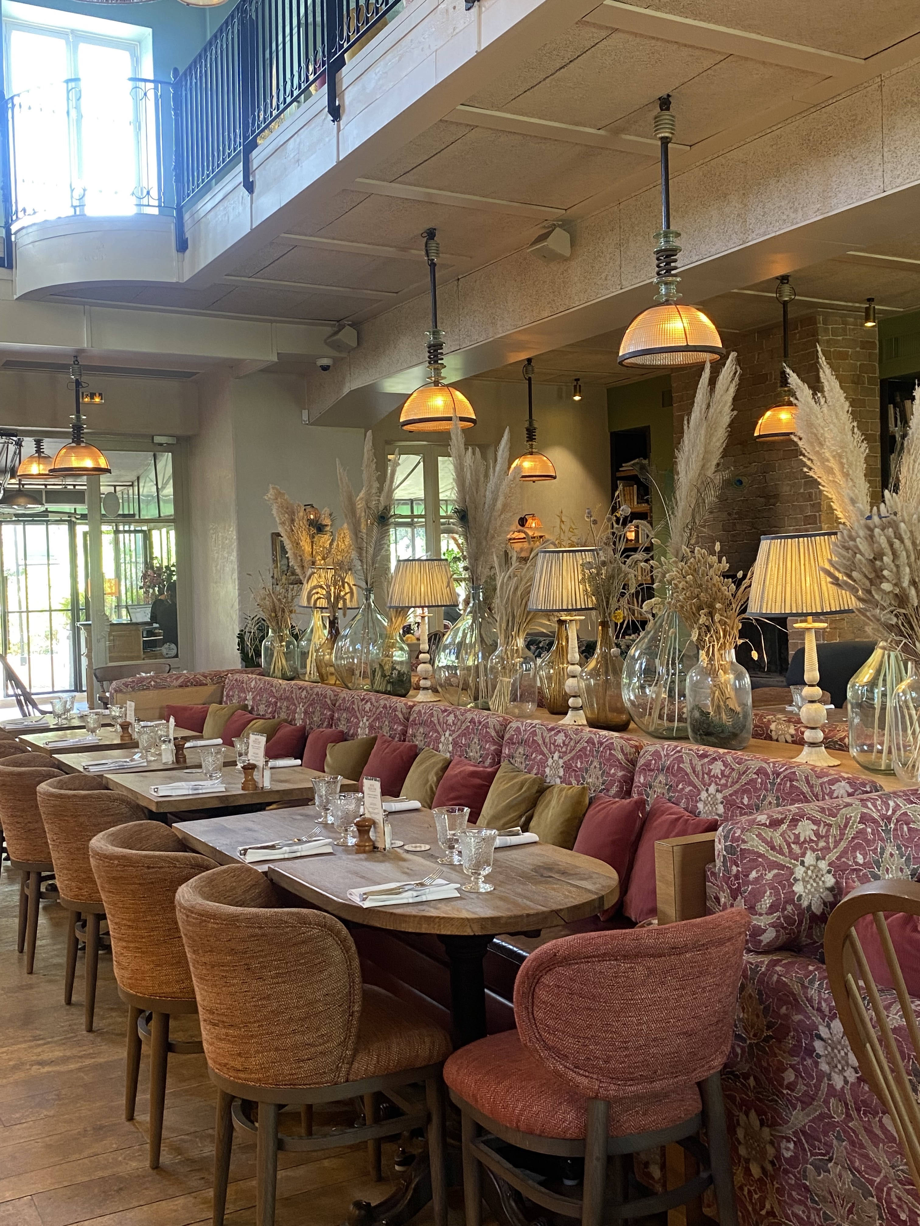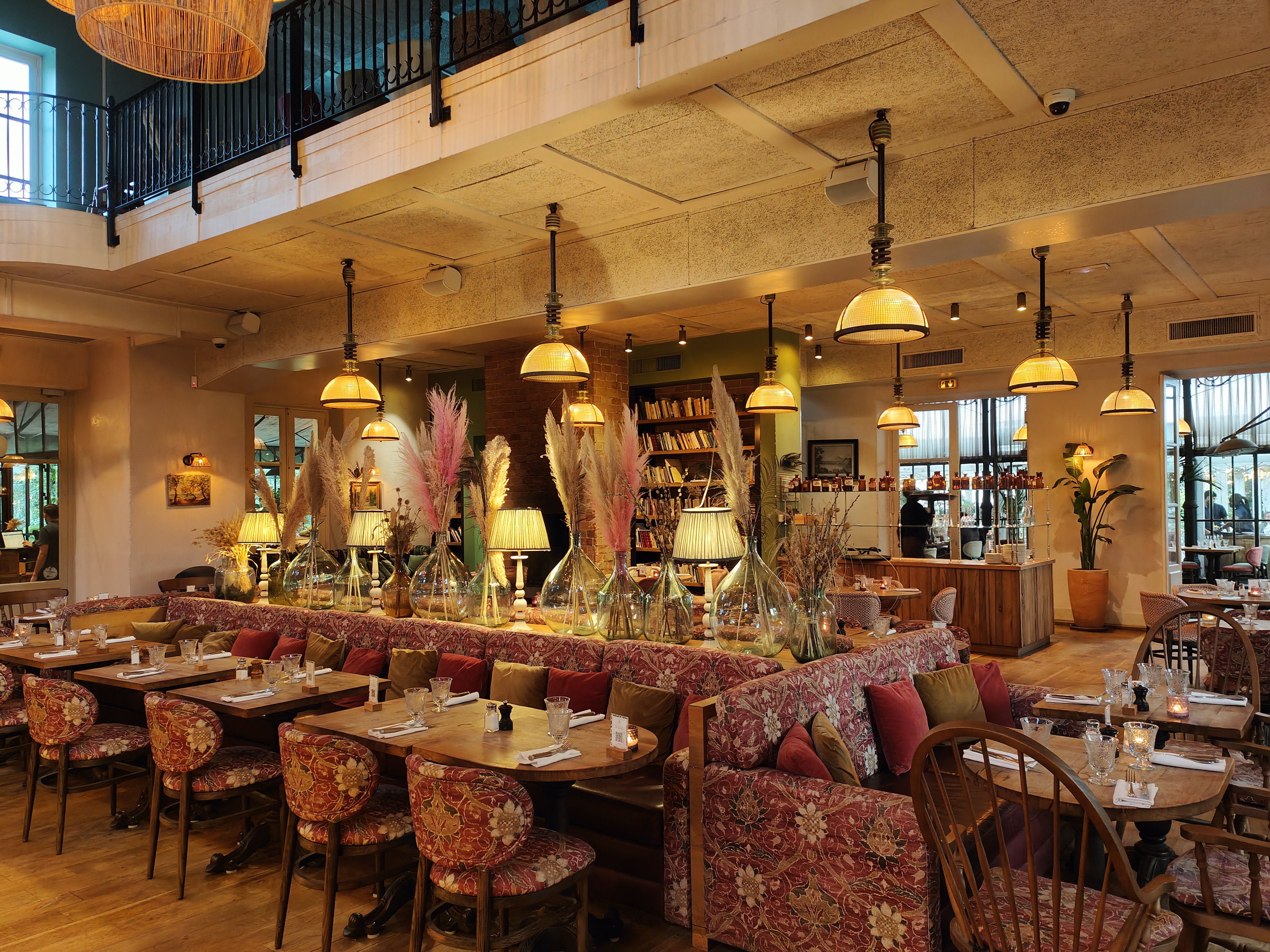Notre première impression ? Ça en jette, le lieu est immense ! Mais surtout le cadre est incroyable, avec une verrière, une terrasse, un intérieur style cosy bohème avec une cheminée, de quoi passer de bons moments en été comme en hiver. Avec de la chance, on peut aussi avoir vue sur le Parc de l’Ile Saint-Germain. Le service est sobre et efficace, rien à redire. Il y a eu un peu d’attente parfois, mais rien d’anormal étant donné l’affluence ce jour-là. Côté restauration, la carte propose une cuisine française avec des plats de brasserie un peu chic. Dans l’ensemble c’est bon (petite déception gustative concernant la Pavlova) et les portions sont suffisantes. Les cocktails sont joliment présentés, originaux et se boivent bien. Les prix sont corrects au regard de la qualité des plats proposés et dégustés, sauf pour les thés et cafés où ça pique… C’est un bon restaurant pour un repas d’anniversaire ou de famille.