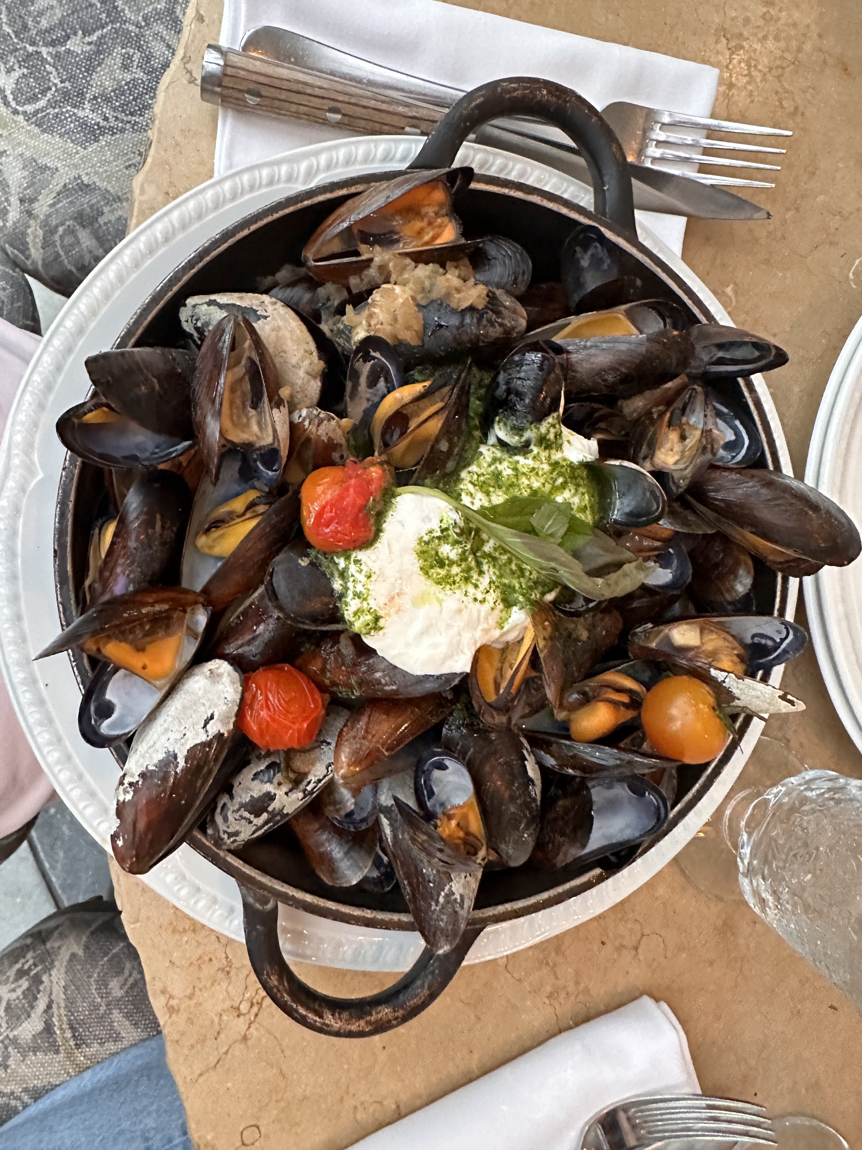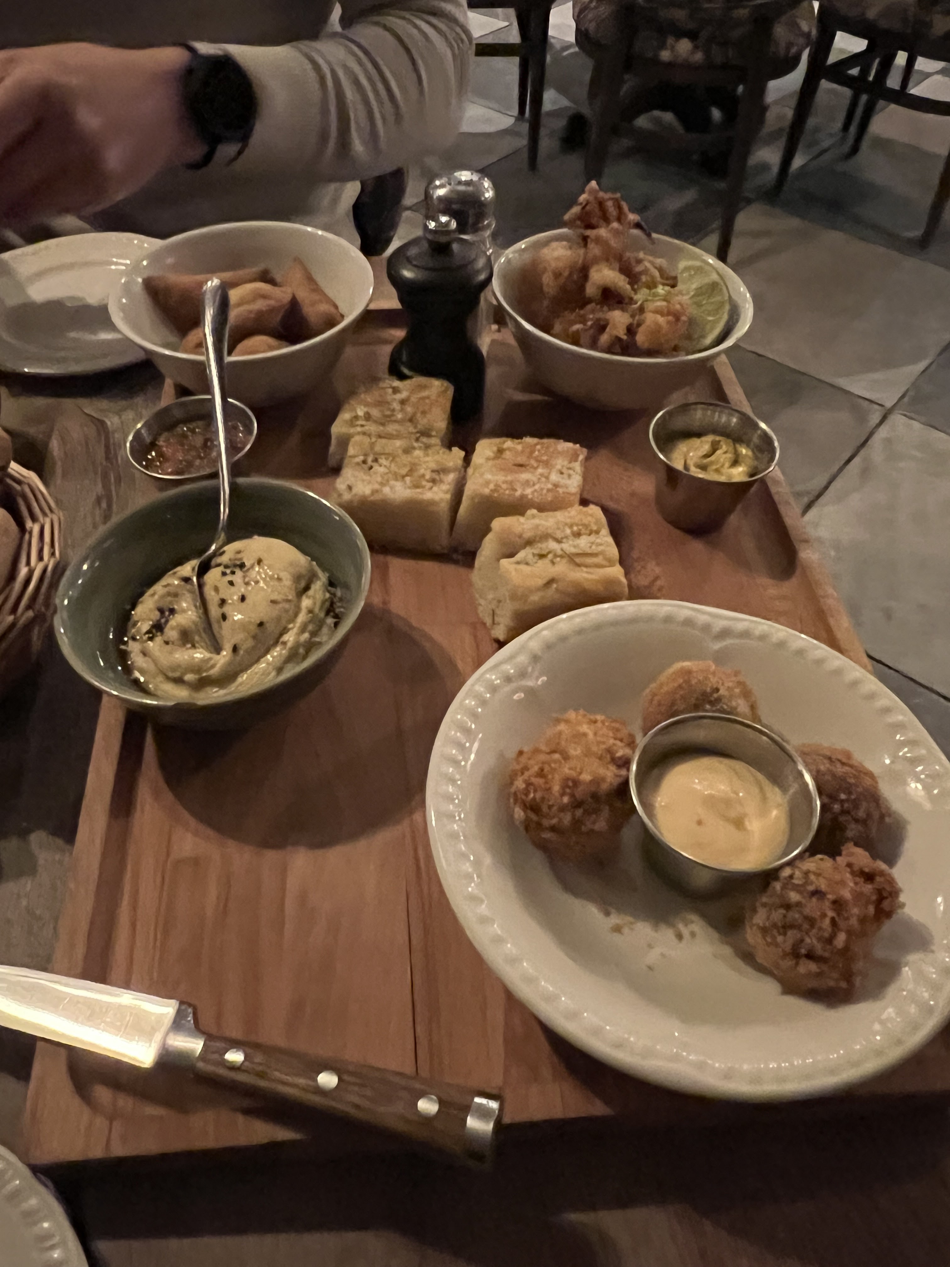 Très beau cadre, idéal pour un déjeuner/dîner de groupe. Merci à Antoine, un serveur bienveillant qui nous a bien conseillé concernant nos choix de plats. Les produits étaient de qualité mais certains plats étaient assez fade. On ne ressentait pas le fromage frais dans les croquettes de l’ile et le caviar d’aubergines trop salées. Légumes de saison étaient goûteux avec un bon goût de braise. En plat, le tagliata d’onglet de boeuf et les moules étaient bonnes. Dessert très bon mais la portion de profiteroles était plus petite que sur la photo 😅