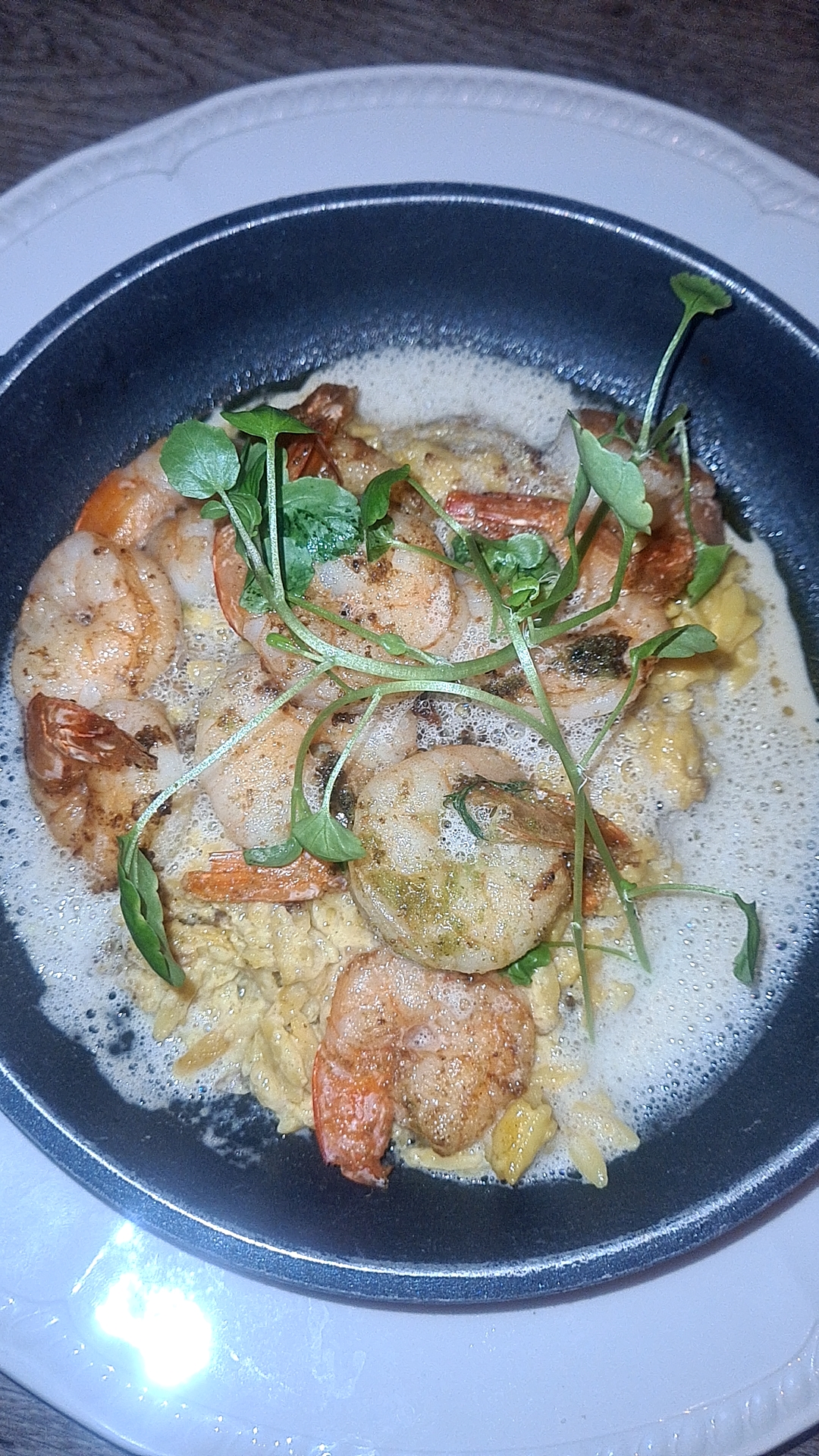 Environnement très agréable, excellent accueil. L'entrée : le plateau de l'île excellent, plein de saveurs et dans de bonnes portions pour 2. Le plat: les gambas et risotto pour moi : vraiment parfait c'était excellent. pour monsieur : le saumon, qui était superbe aussi. en dessert : le millefeuille pour moi, pour le coup j'ai été déçue, la pâte feuilletée est très bonne mais la chantilly à l'intérieur était fade malheureusement ça manque de pep's et de goût (aux vues des autres plats si bien réalisés et savoureux) Pour monsieur les profiteroles qui étaient un peu secs. Sinon ce fut un excellent moment à partager merci beaucoup.