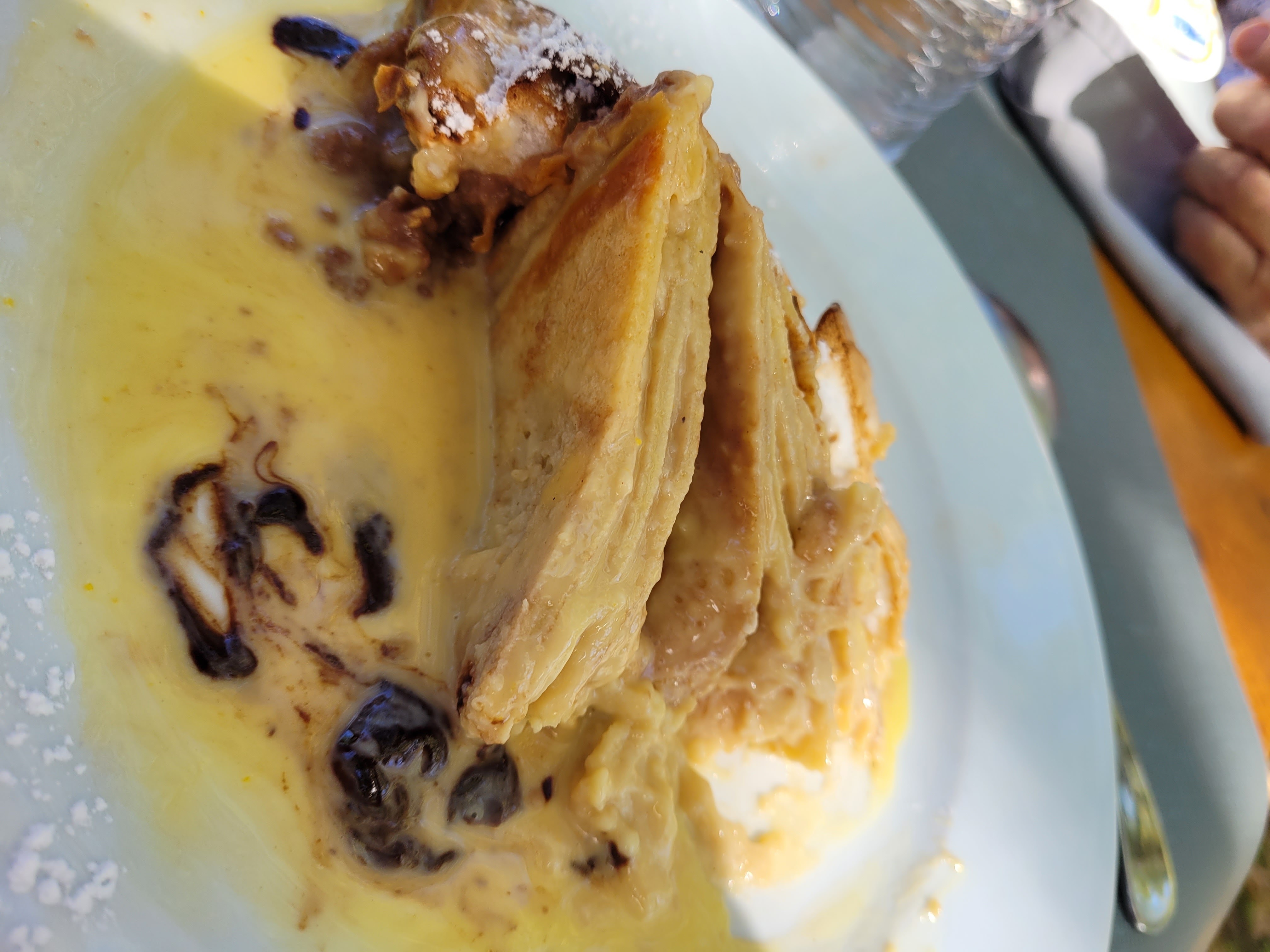 On s'est juste arrêter pour un café en groupe de quelques coureurs. Café accompagné d'une meringue et de p'tits morceaux de pudding. Endroit où l'on doit bien manger et la terrasse est top.