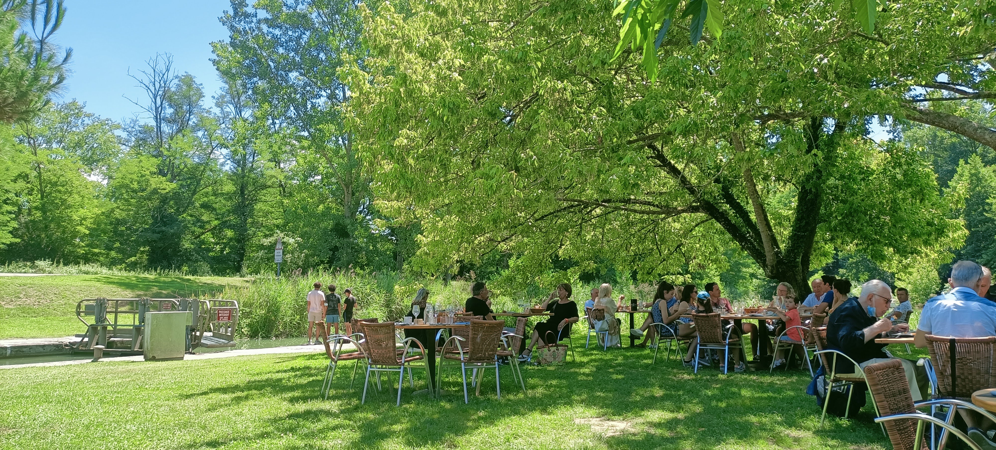Un emplacement de choix. Très agréable. On peut déjeuner en regardant passer les bateaux à l'écluse. Les plats sont bons c'est un plus.
