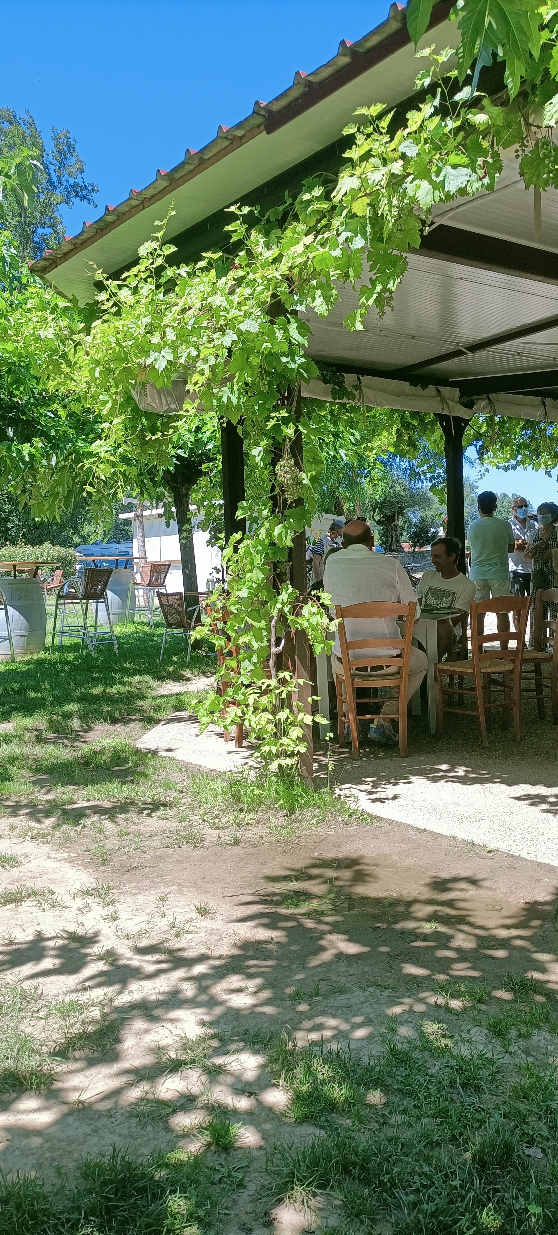 Ombragé de oufff. Service exceptionnel. Que du bonheur. Sans réservation ils nous ont installé et servi avec efficacité. Le midi doit être mieux que le soir cause moustiques en bordure de cours d eau à proximité. Je reviendrai.