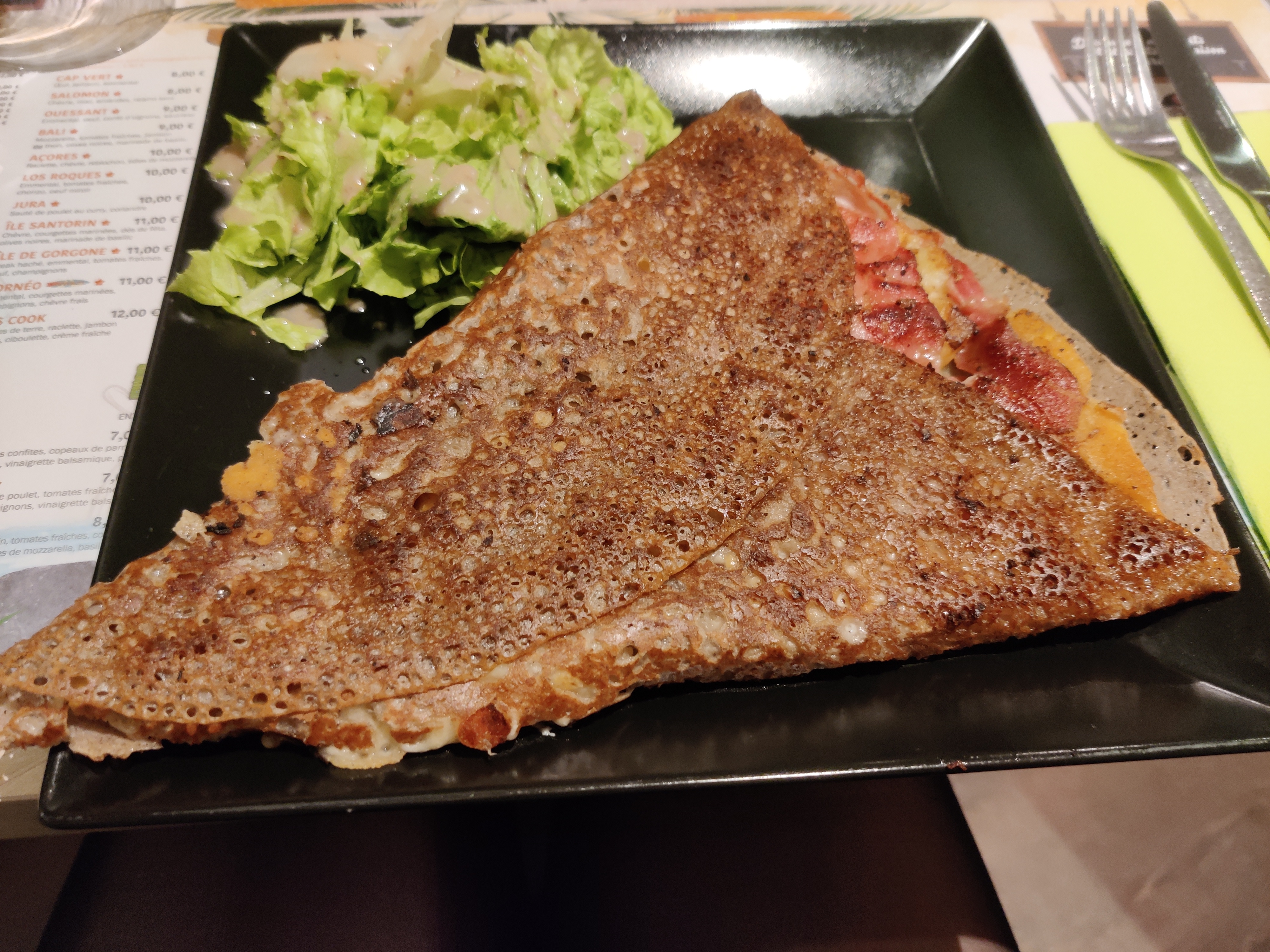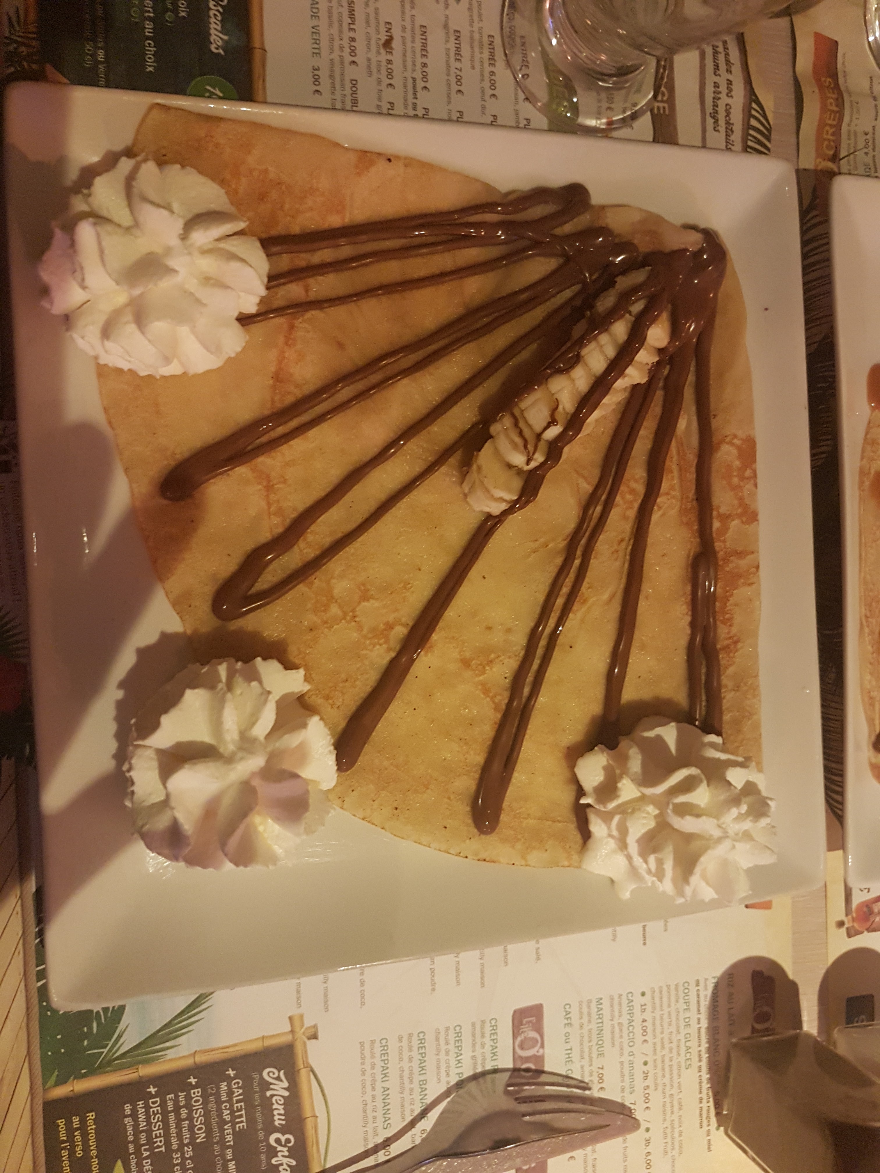 Très bonne galette avec du choix. Ambiance exotique. Bémol le cidre brut n etait pas vraiment petillant mais a tester entre amis/ couple