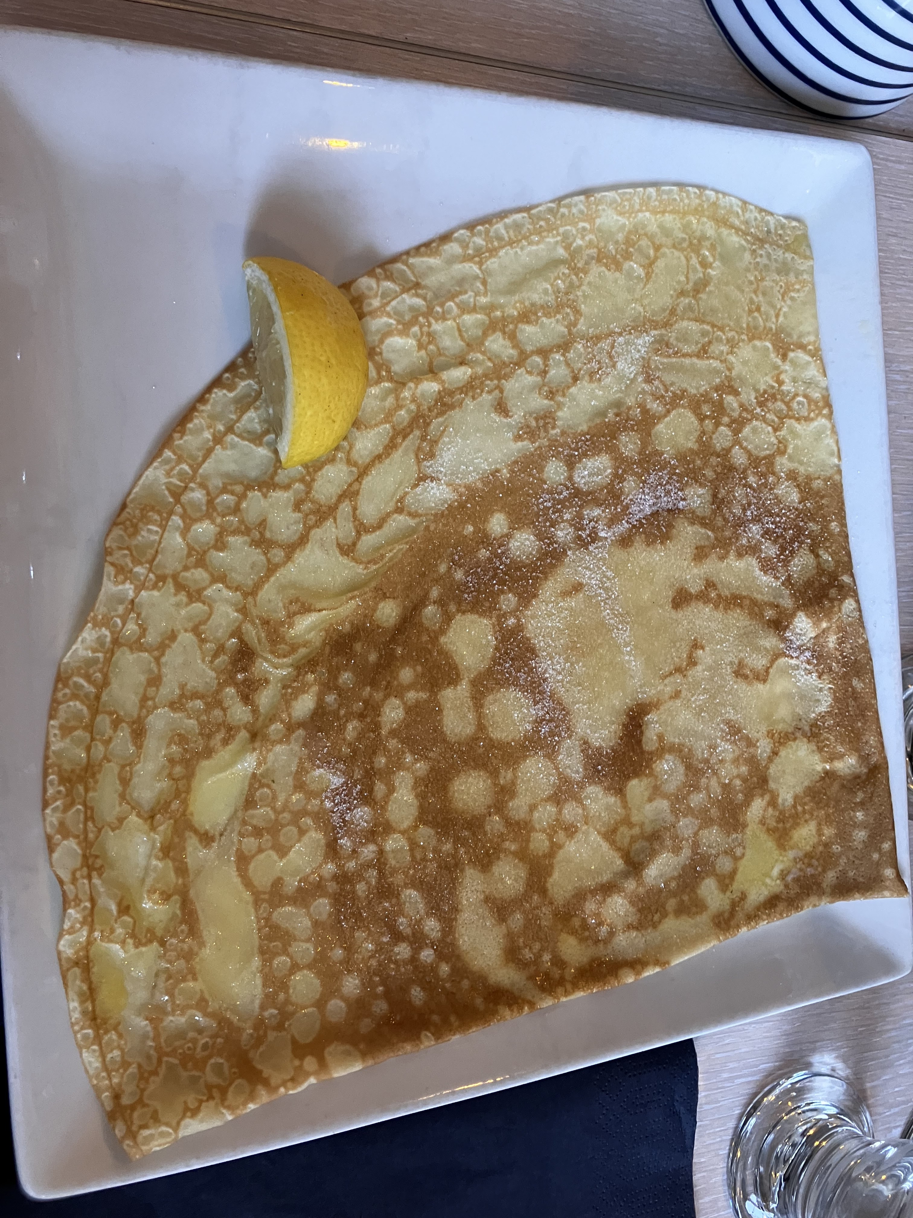 Nous avons déjeuné en famille et avons apprécié à la fois le service et les crêpes (en visuel et bien sûr en goût)! Mon fils qui avait toujours refusé de manger une crêpe salée a eu une crêpe avec des ingrédients qu’il a choisi (pomme de terre/lardons) et il s’est régalé. La sucrée, croquante, était particulièrement une agréable et bonne surprise. Le menu enfant est donc très bien! En étant critique, je verrais bien un rafraîchissement de la peinture côté déco (j’espère que le propriétaire ne m’en voudra pas de la remarque) mais le décorum est important avec du public qui mange sur place. Cela n’enlève rien aux qualités décrites dessus.