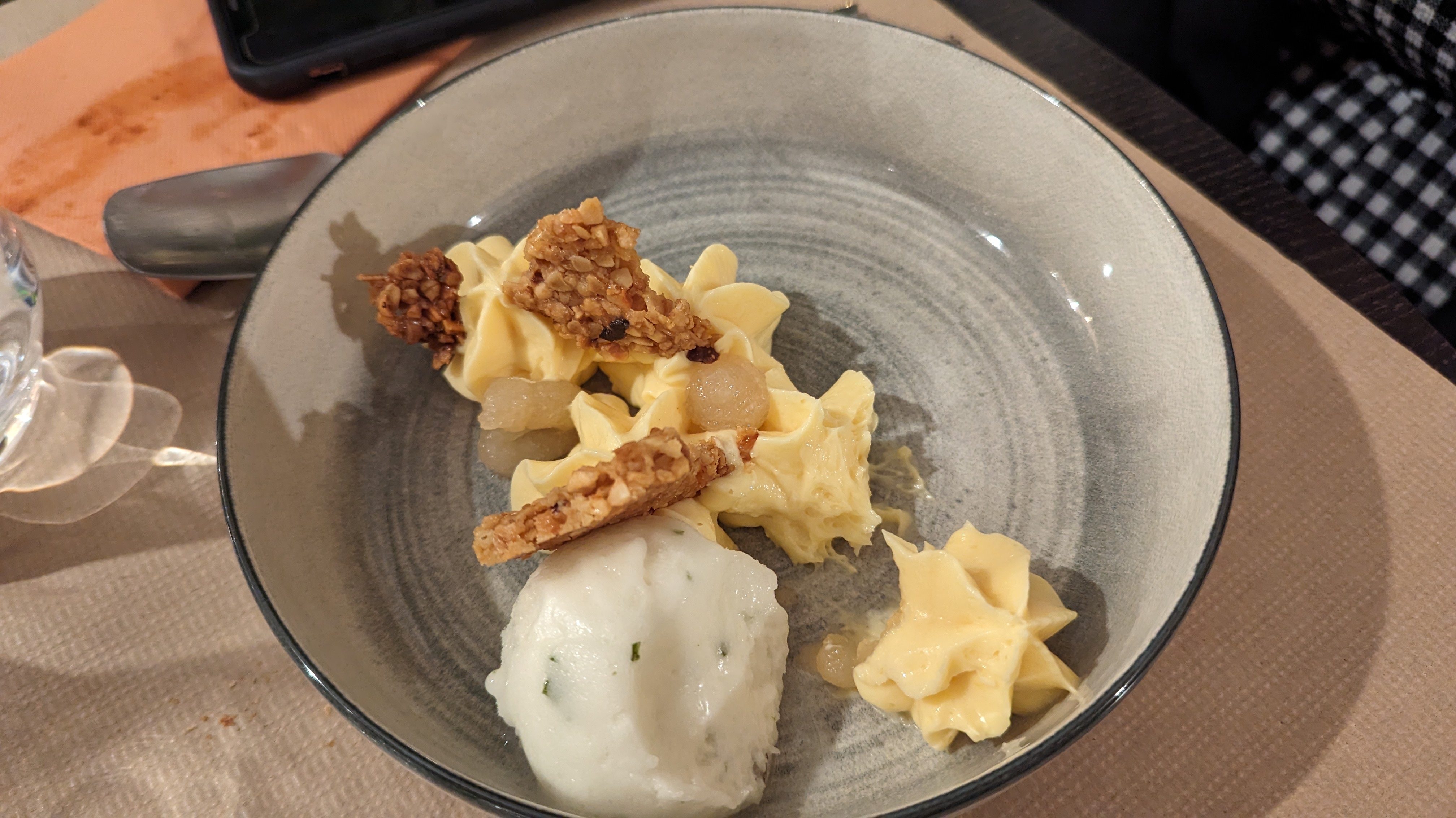 Avis mitigé. Nous n'avons pas été malade et certains plats étaient bons mais globalement les quantités sont insuffisantes ( 1 petite rondelles de pain par personne, pas assez de légumes, café gourmand avec de trop petite mignardises) Lorsque l'on apporte des apéritifs, il est préférable de ne pas les prendre par le dessus ou l'on pose nos lèvres : question d'hygiène. Visite début mai